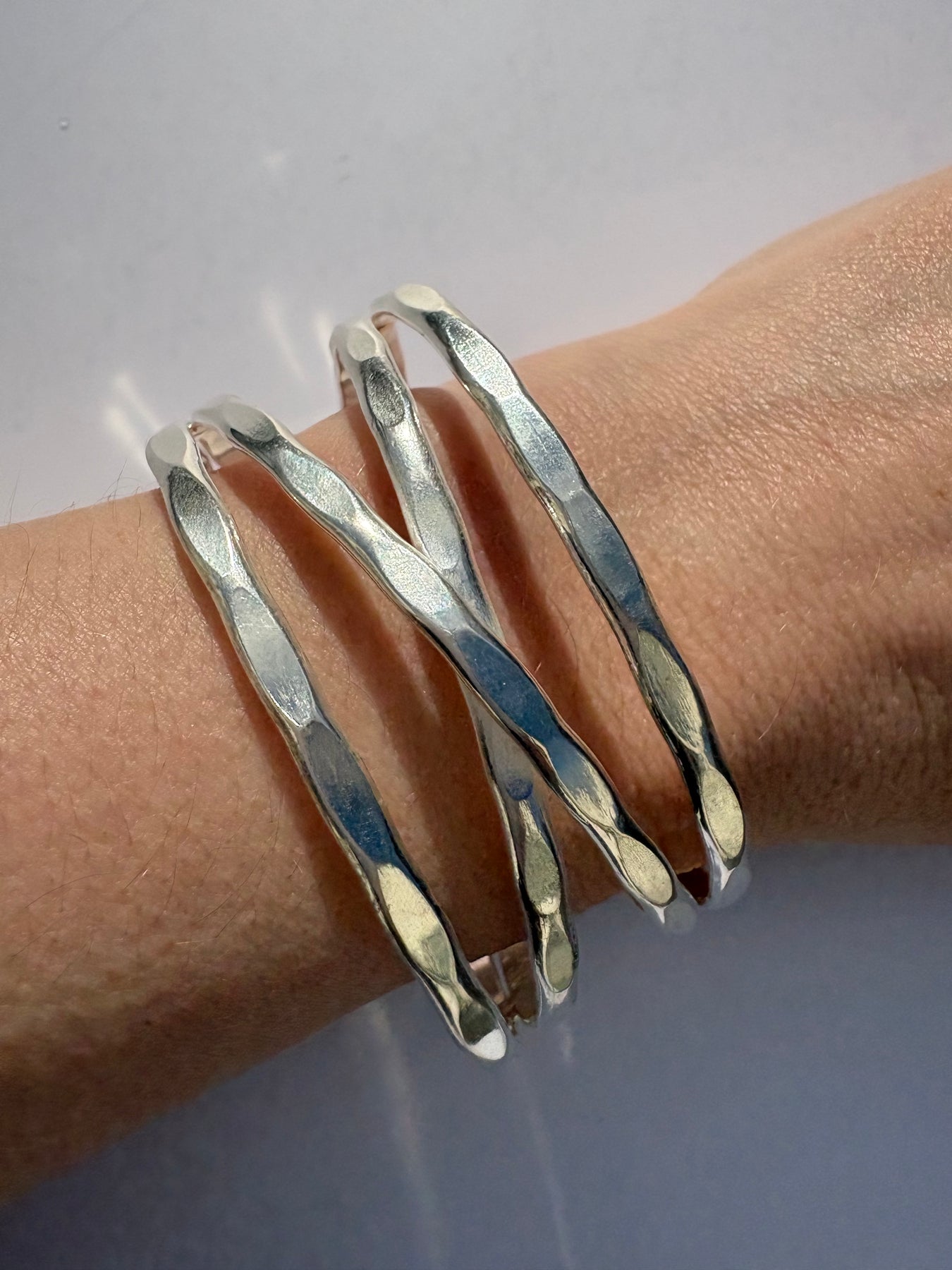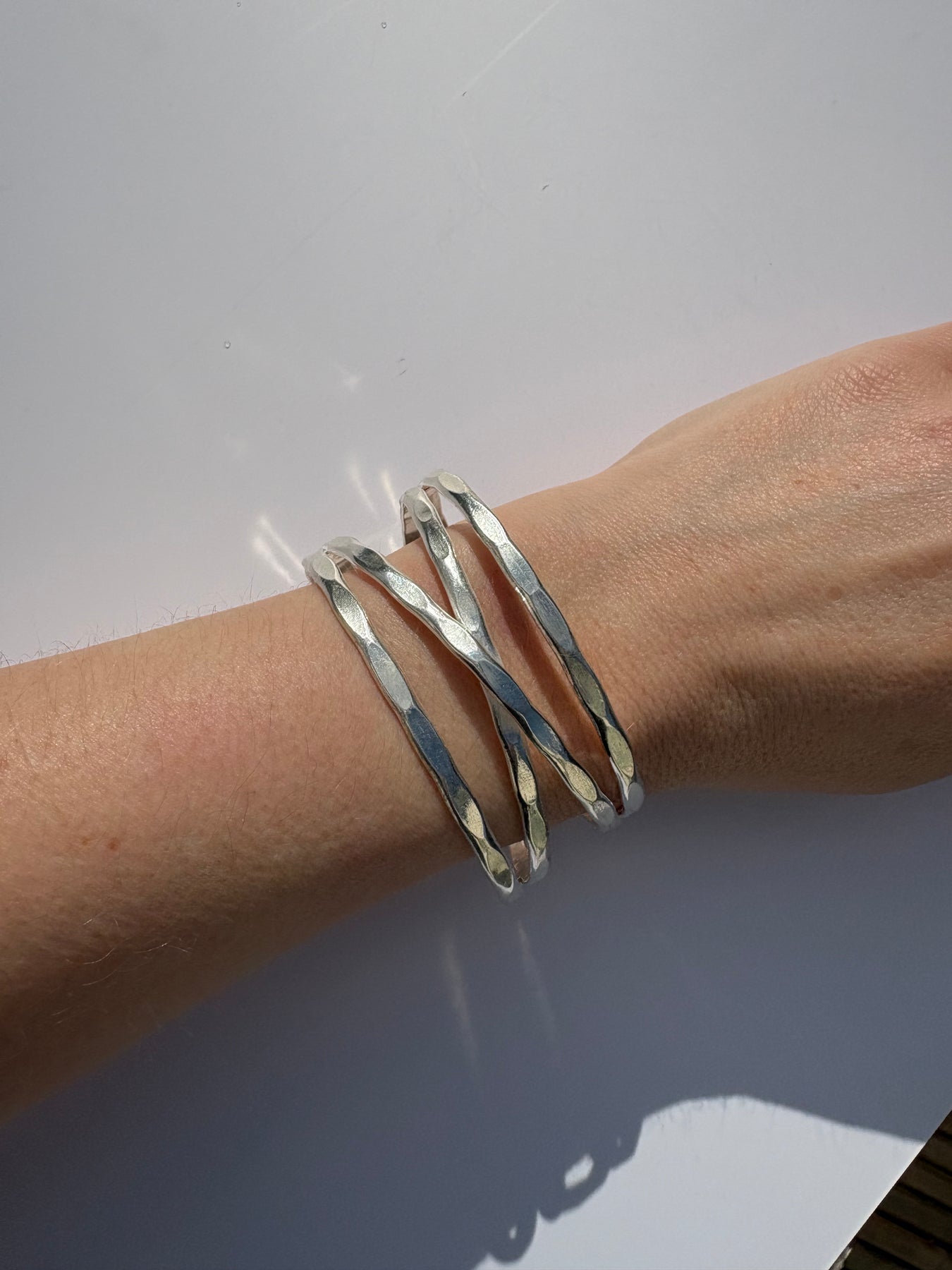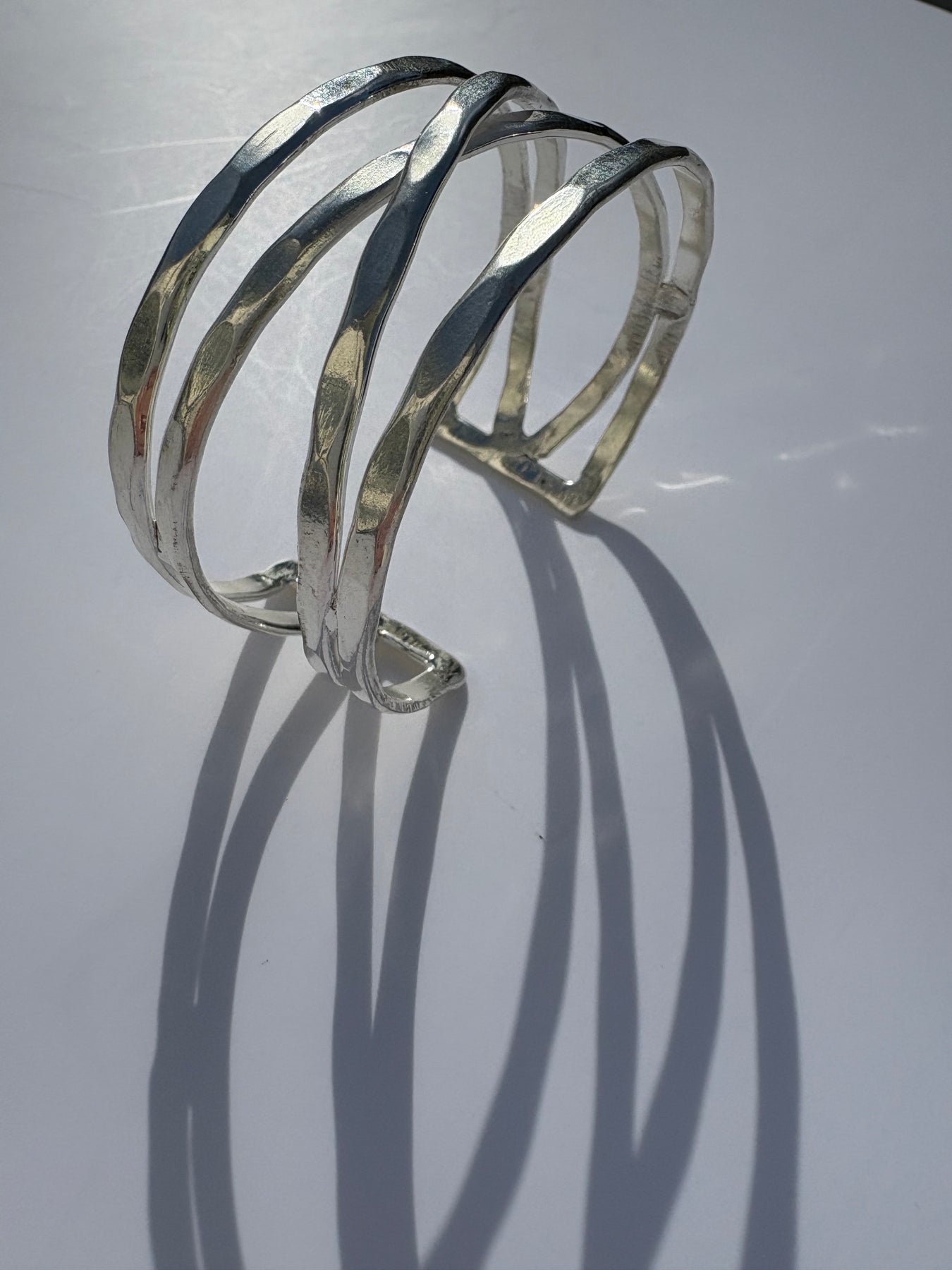 Lagenlook Beaten Cross Over Silver Cuff Bracelet
