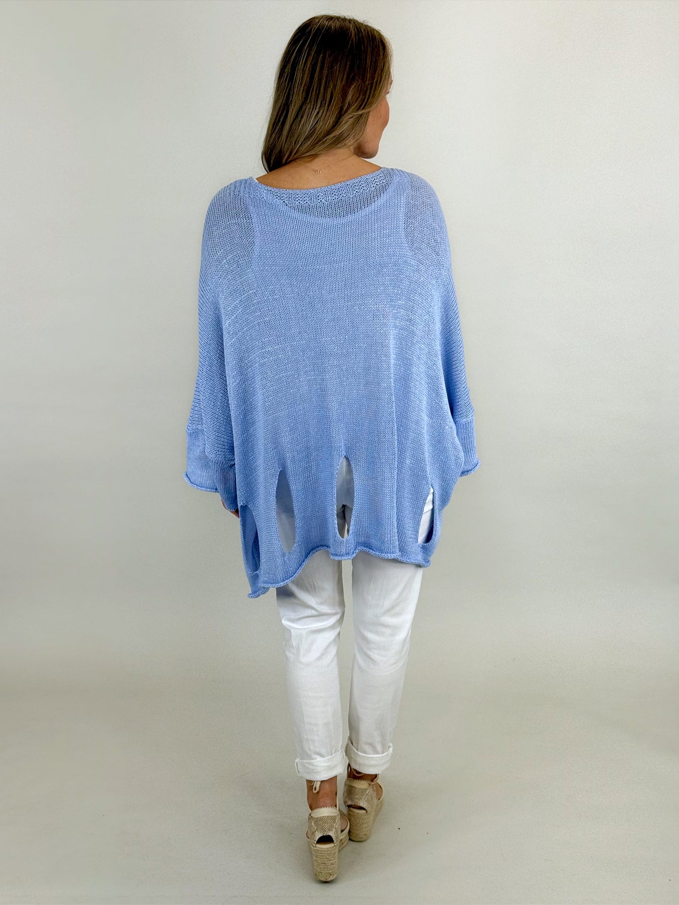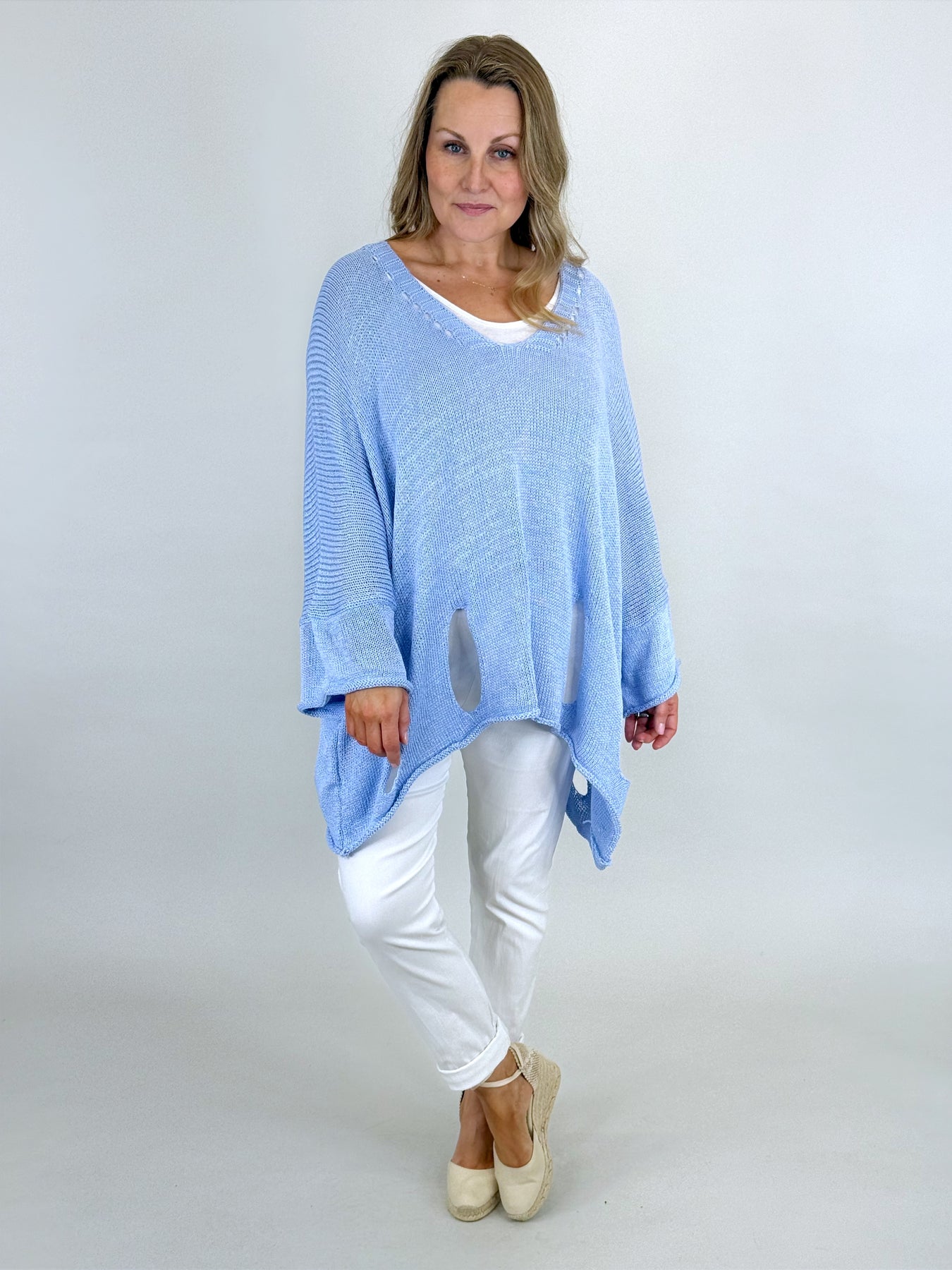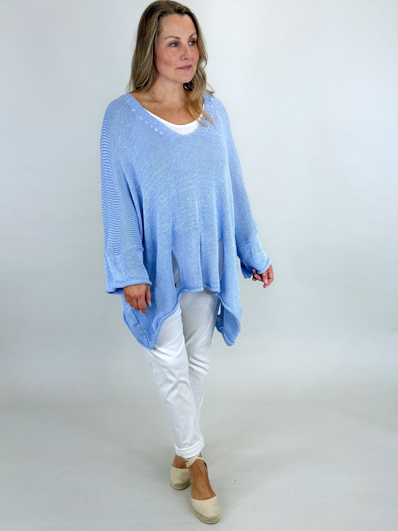 Our beautiful Lagenlook Cotton Quirky Knit is a beautiful layering knit it teams beautifully over jersey and linen, is has a Cut out hem, tank knit. which feels designer, and reverse seams.