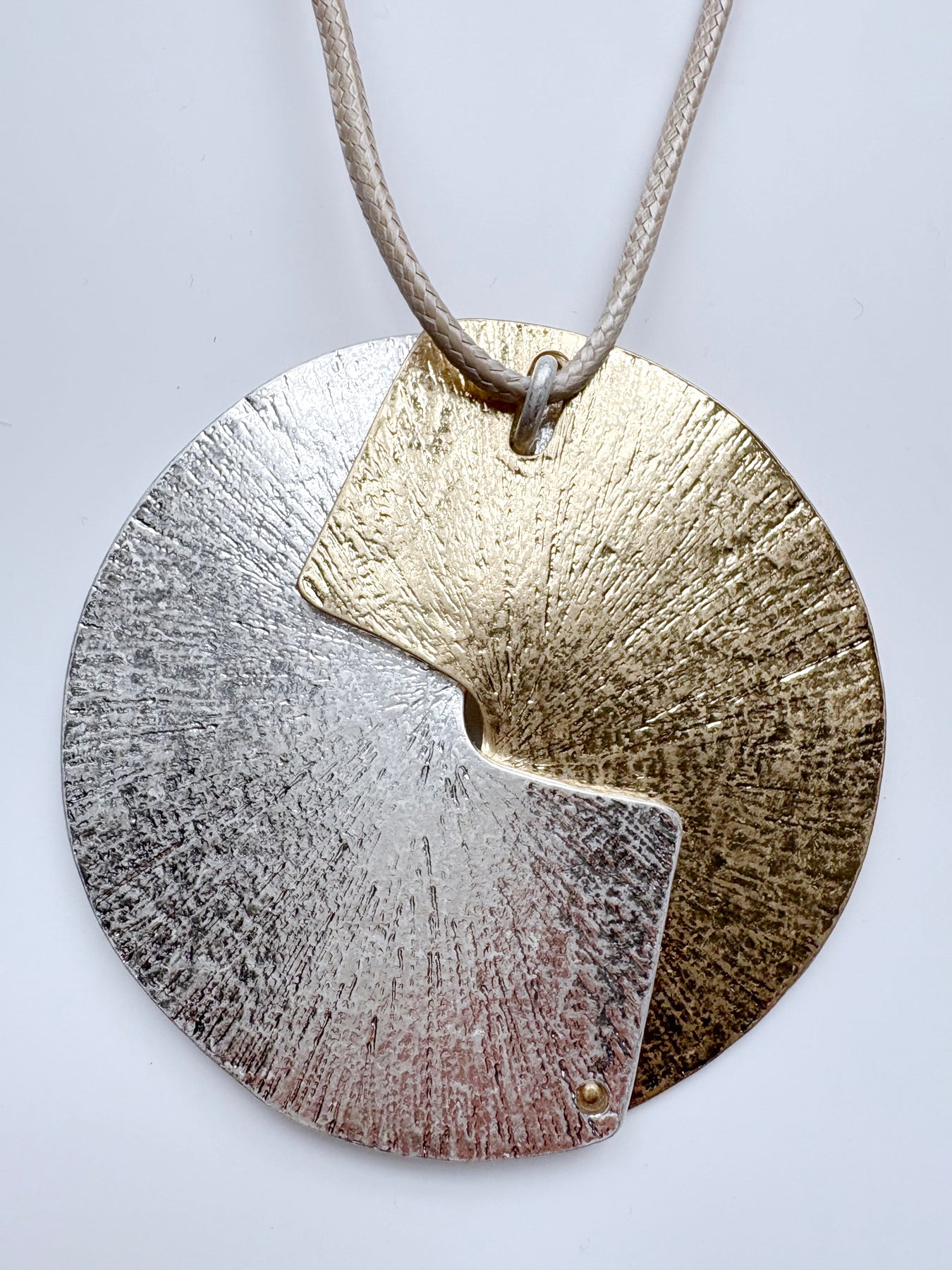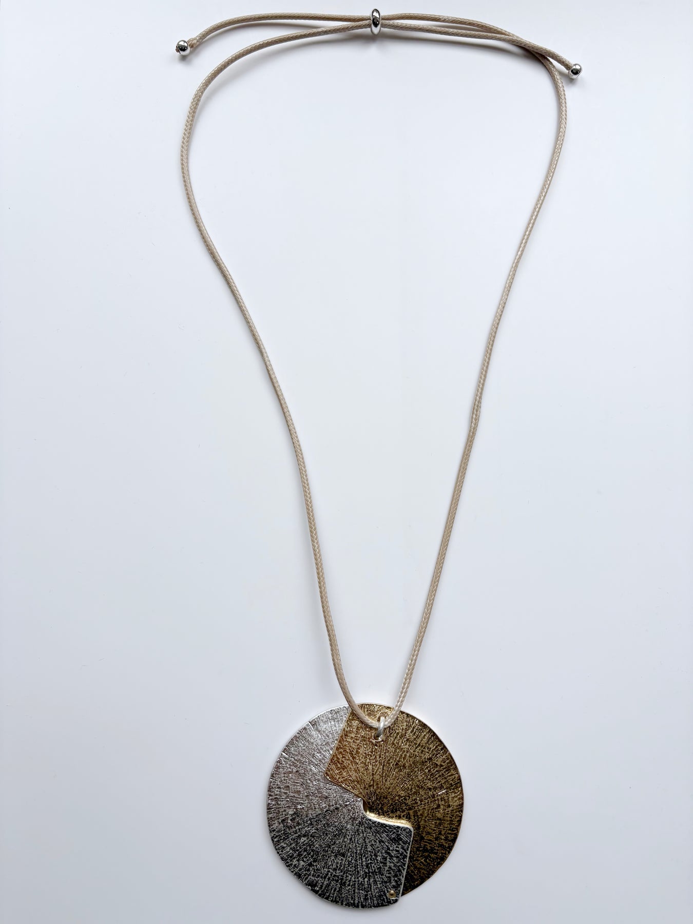 Lagenlook Long Gold & Silver Disc Pendant Necklace