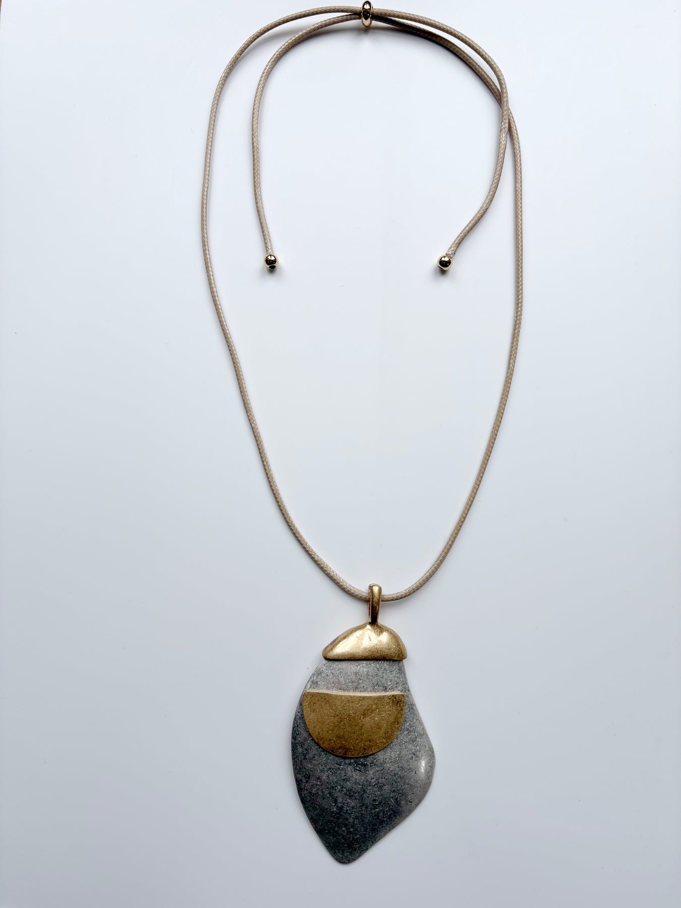 Lagenlook Long Matt Gold Oval Pendants Necklace