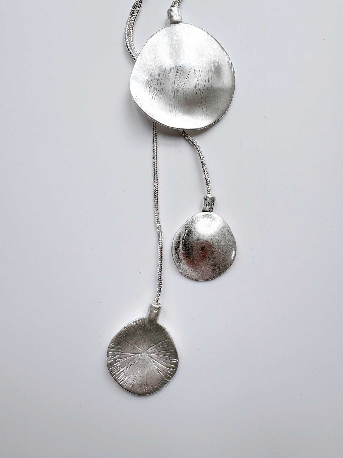 Lagenlook Mid- Length Matt Circle Pendant Necklace