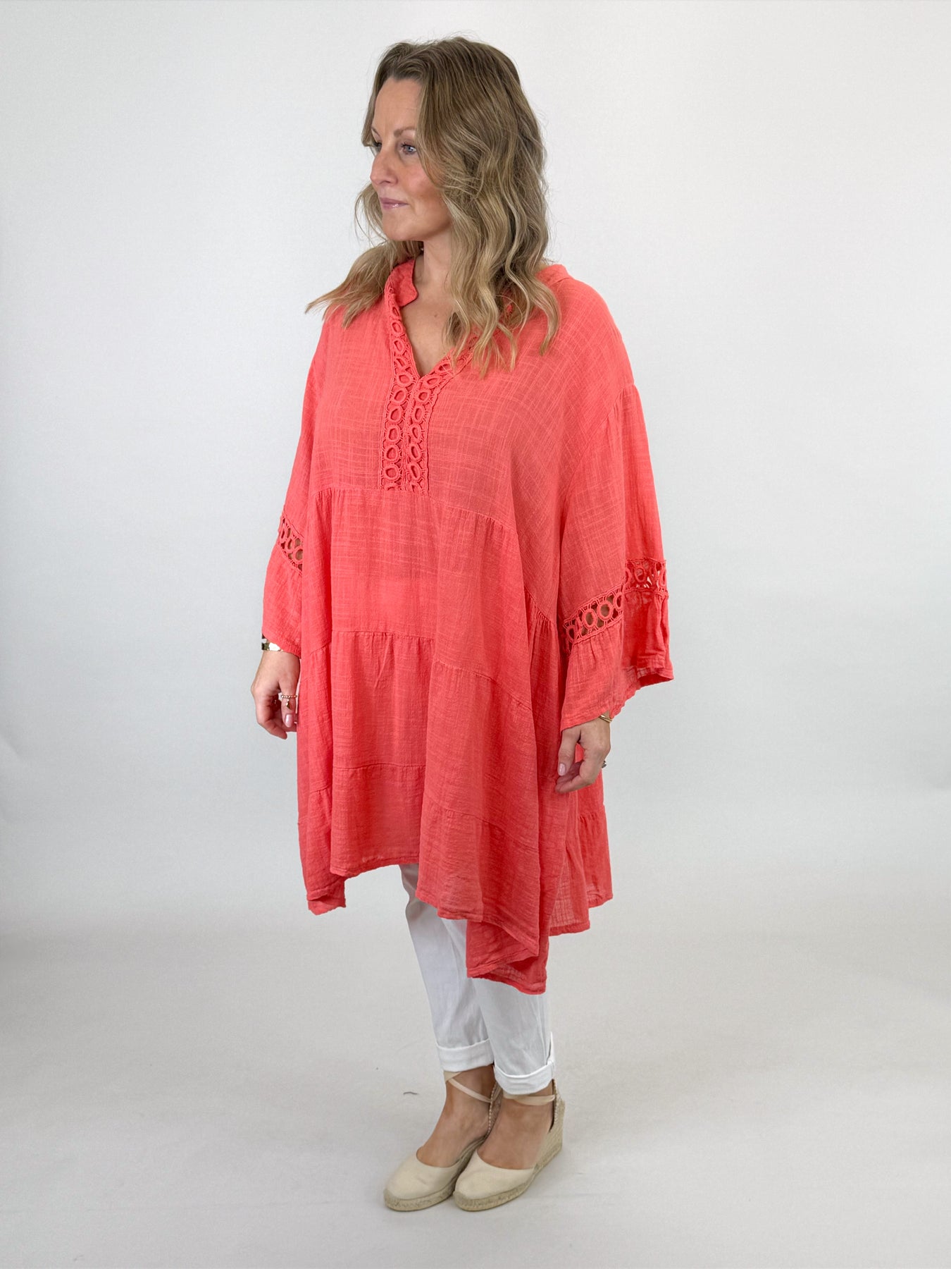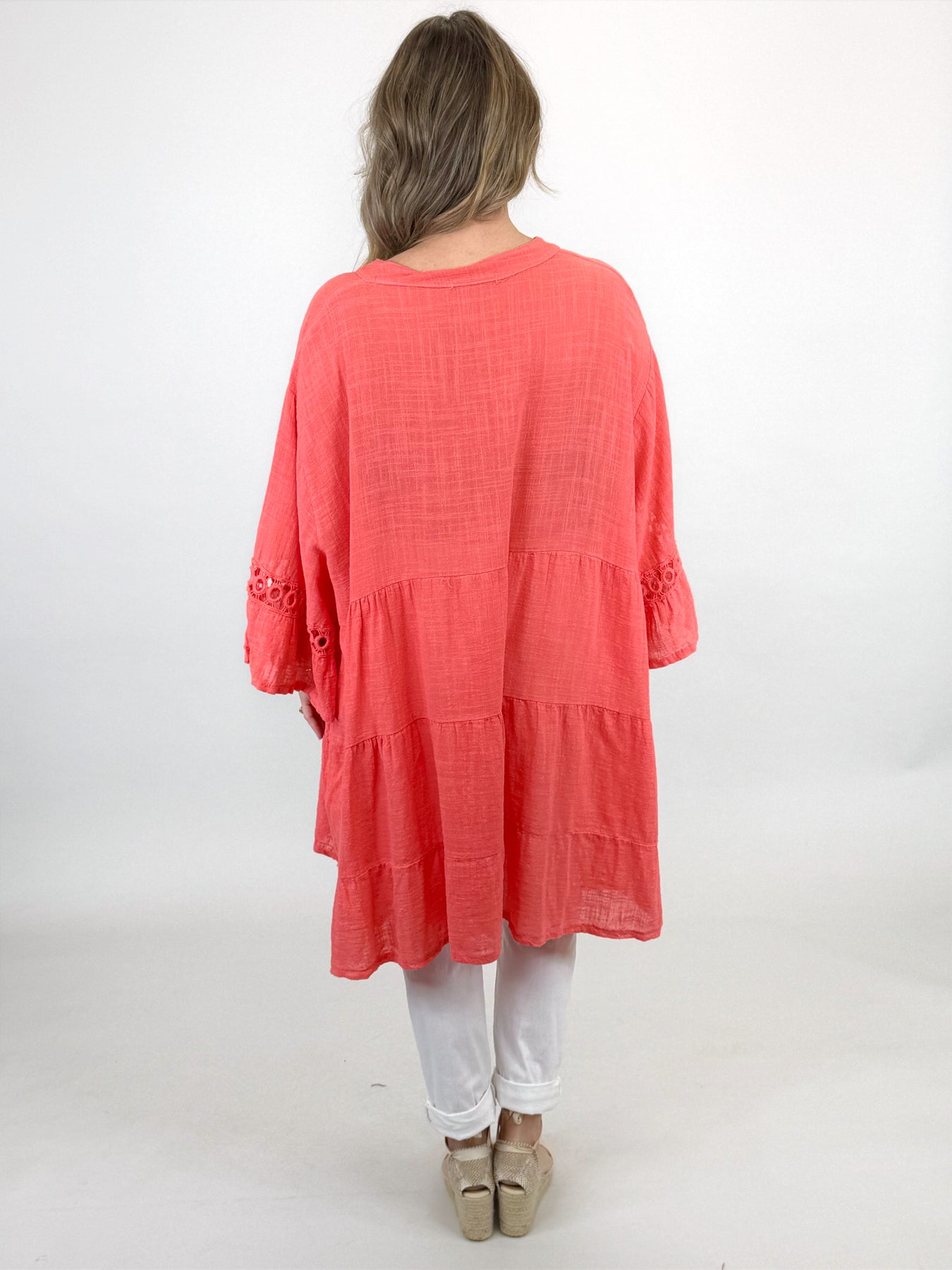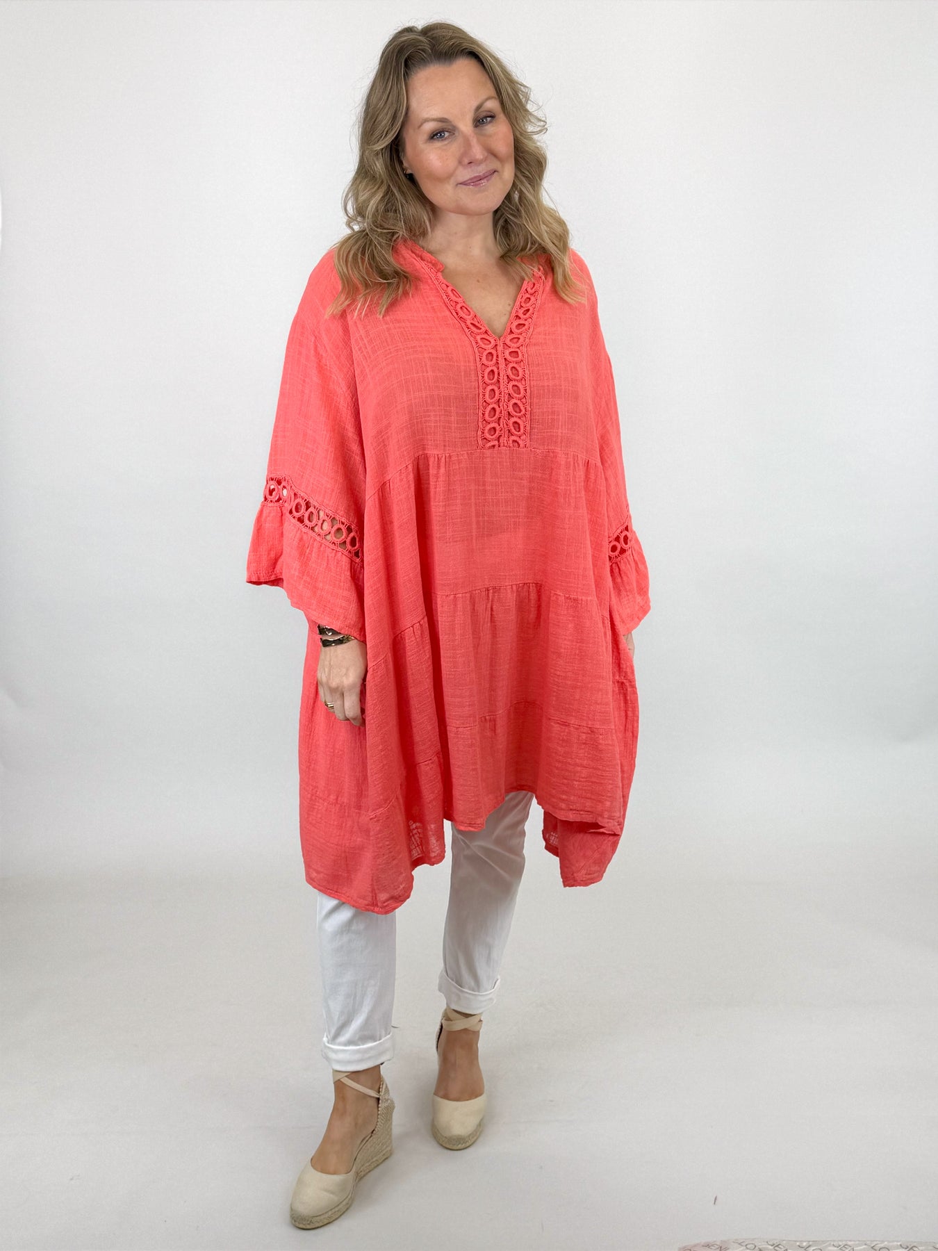 Lagenlook Yasmin V- Neck Top | Coral. 91267