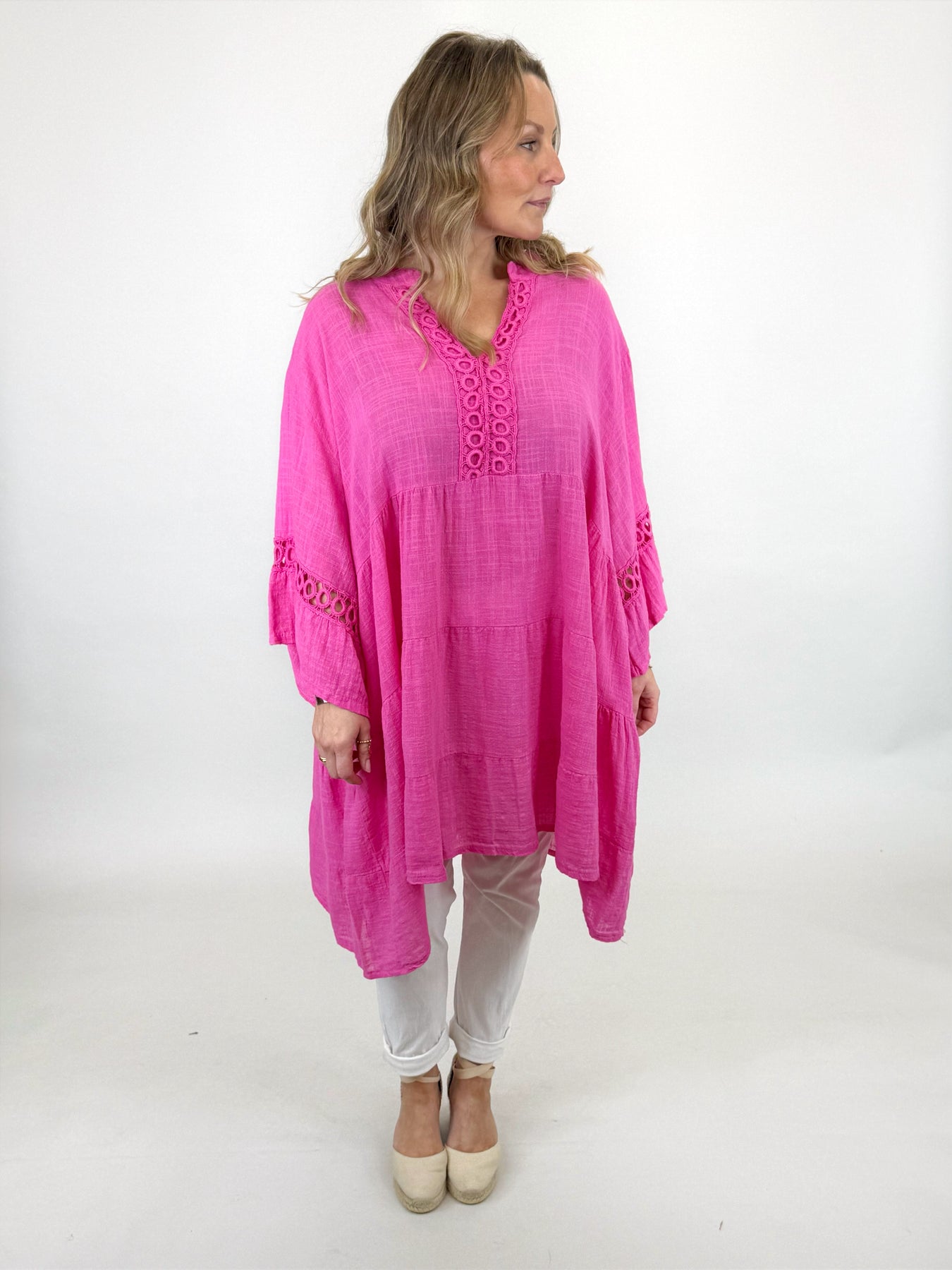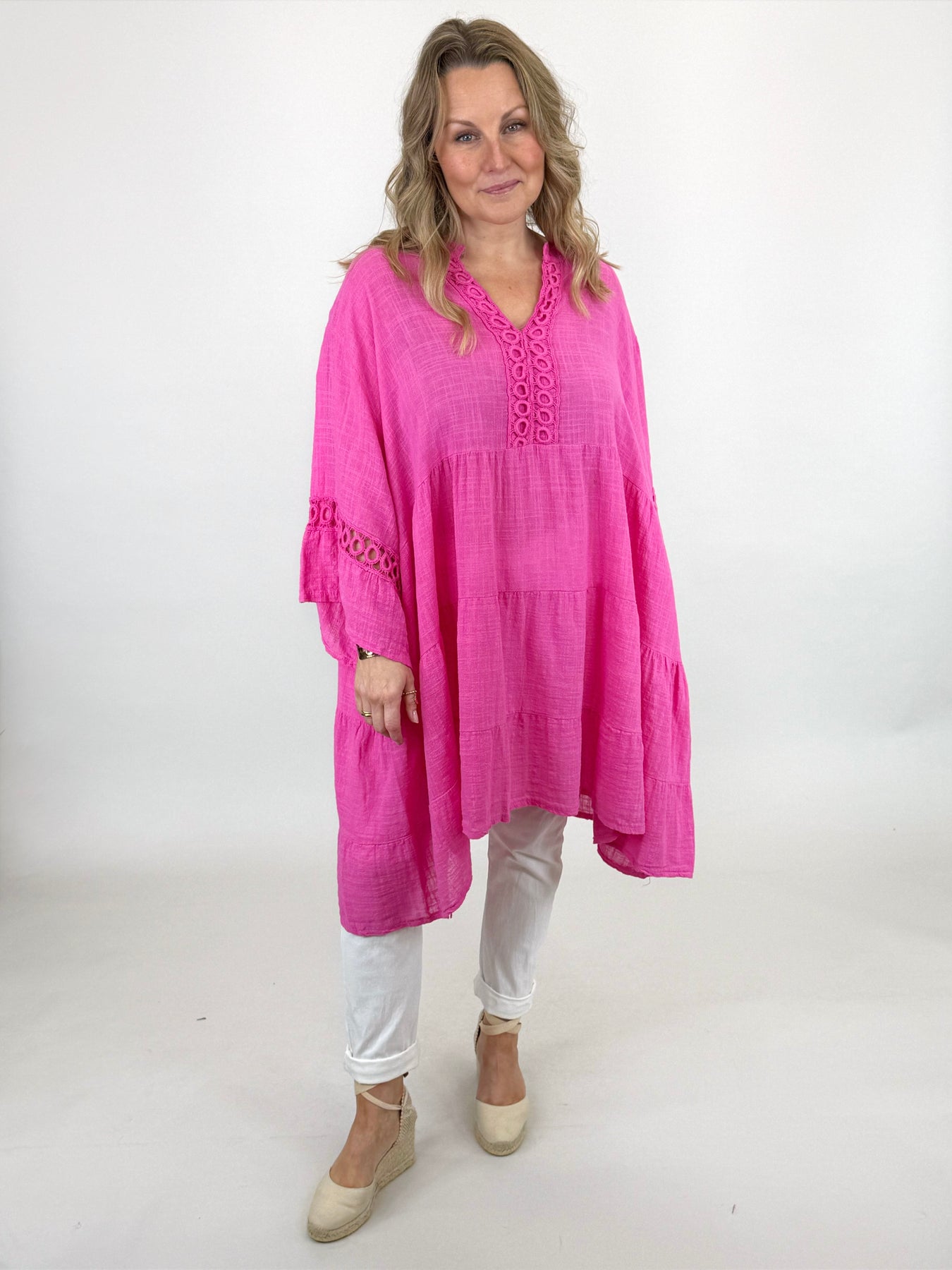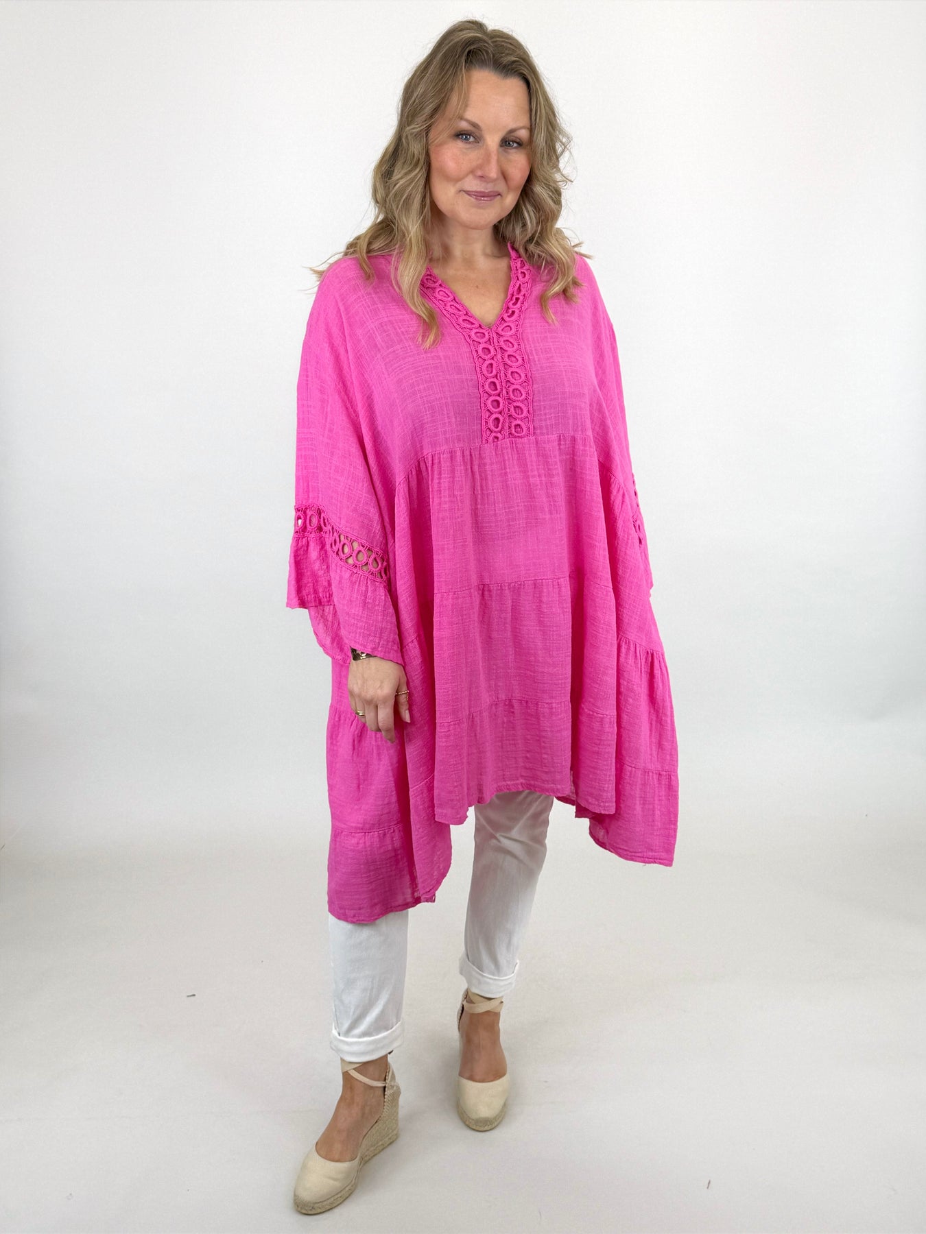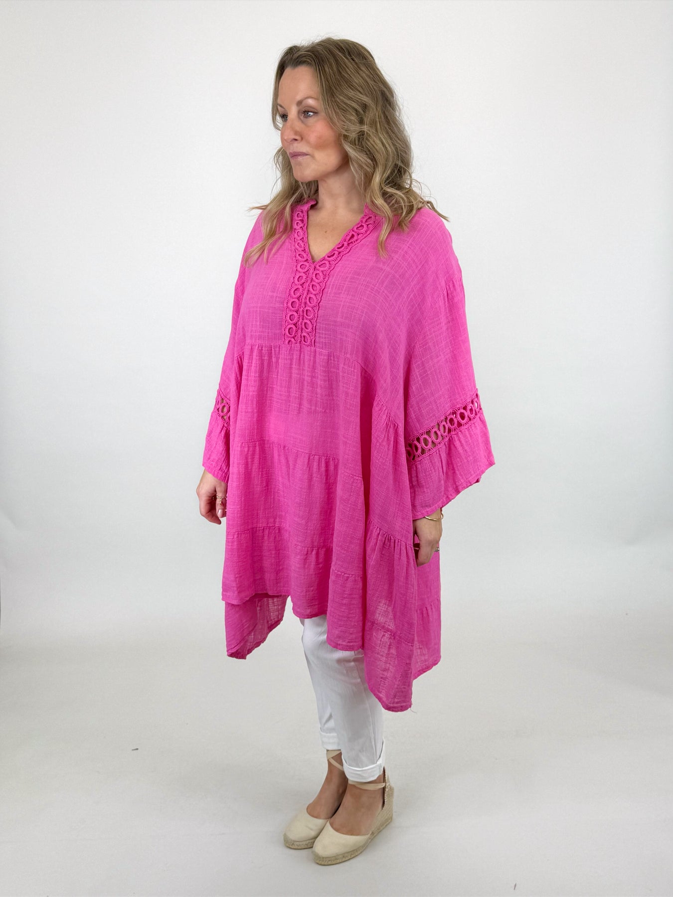 Lagenlook Yasmin V- Neck Top | Fuchsia. 91267