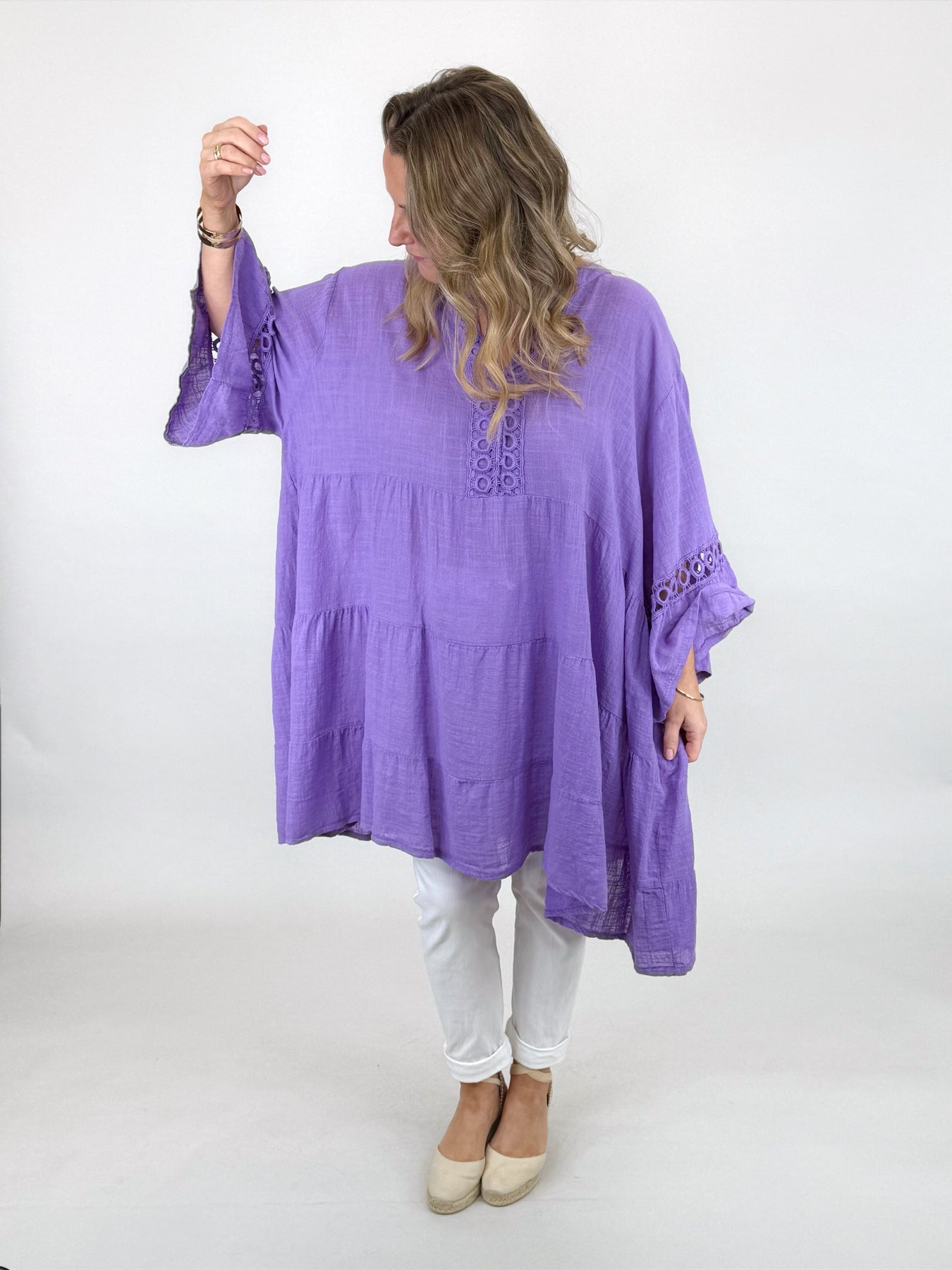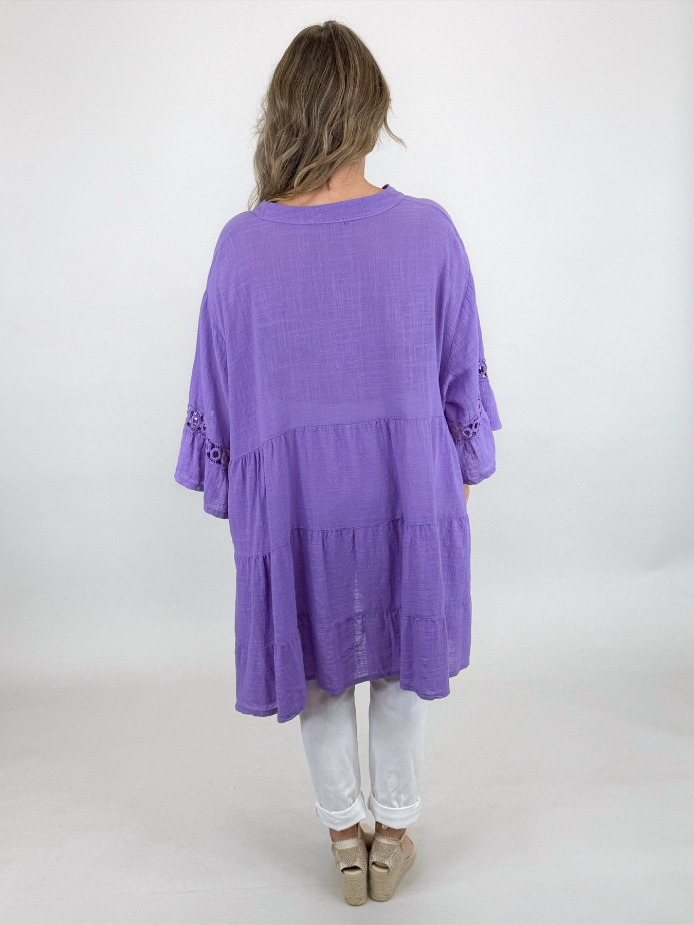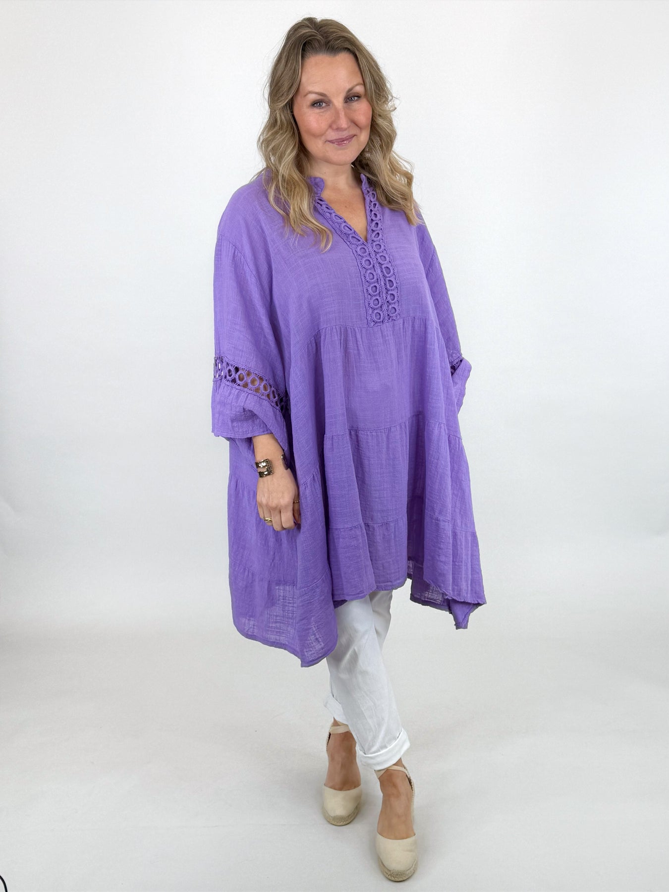 Our beautiful Lagenlook Yasmin Top is a must have easy go to for the warm months ahead. A soft and breathable cotton linen blend top with delicate detailing and an easy, relaxed fit. Light, flattering and perfect for layering. A lovely everyday piece with a feminine touch.