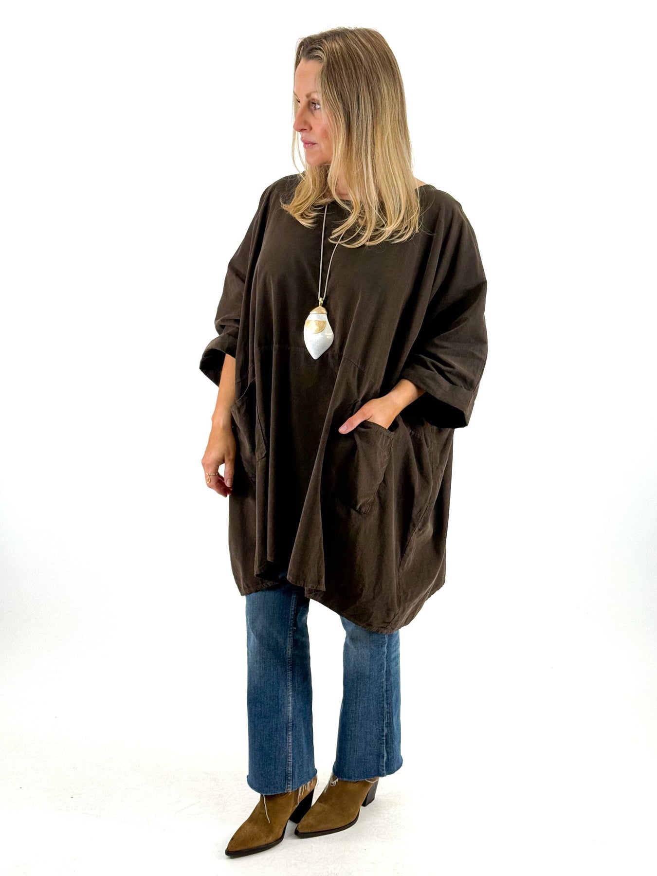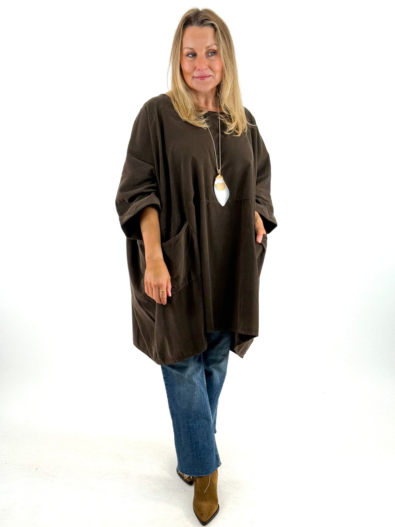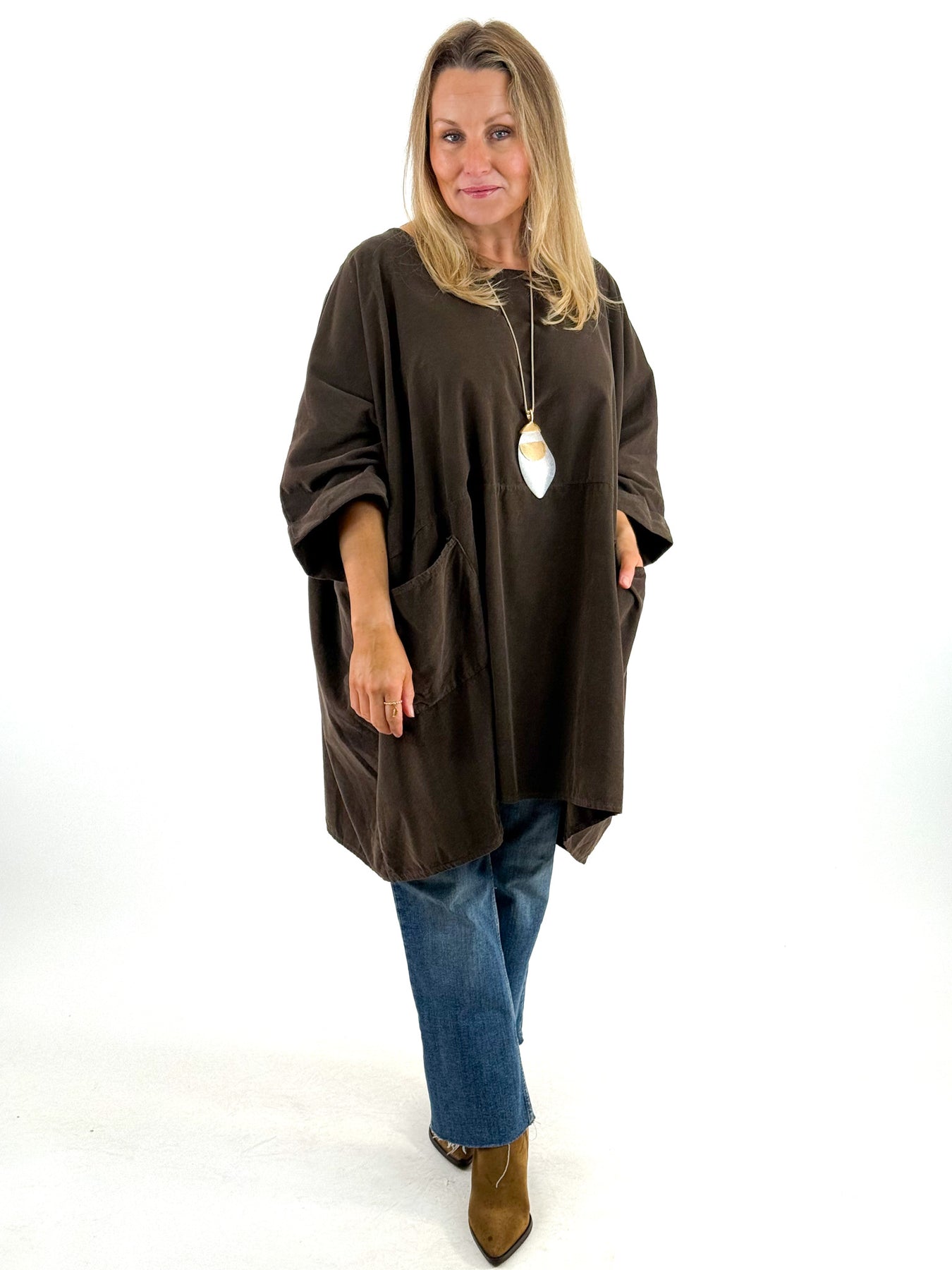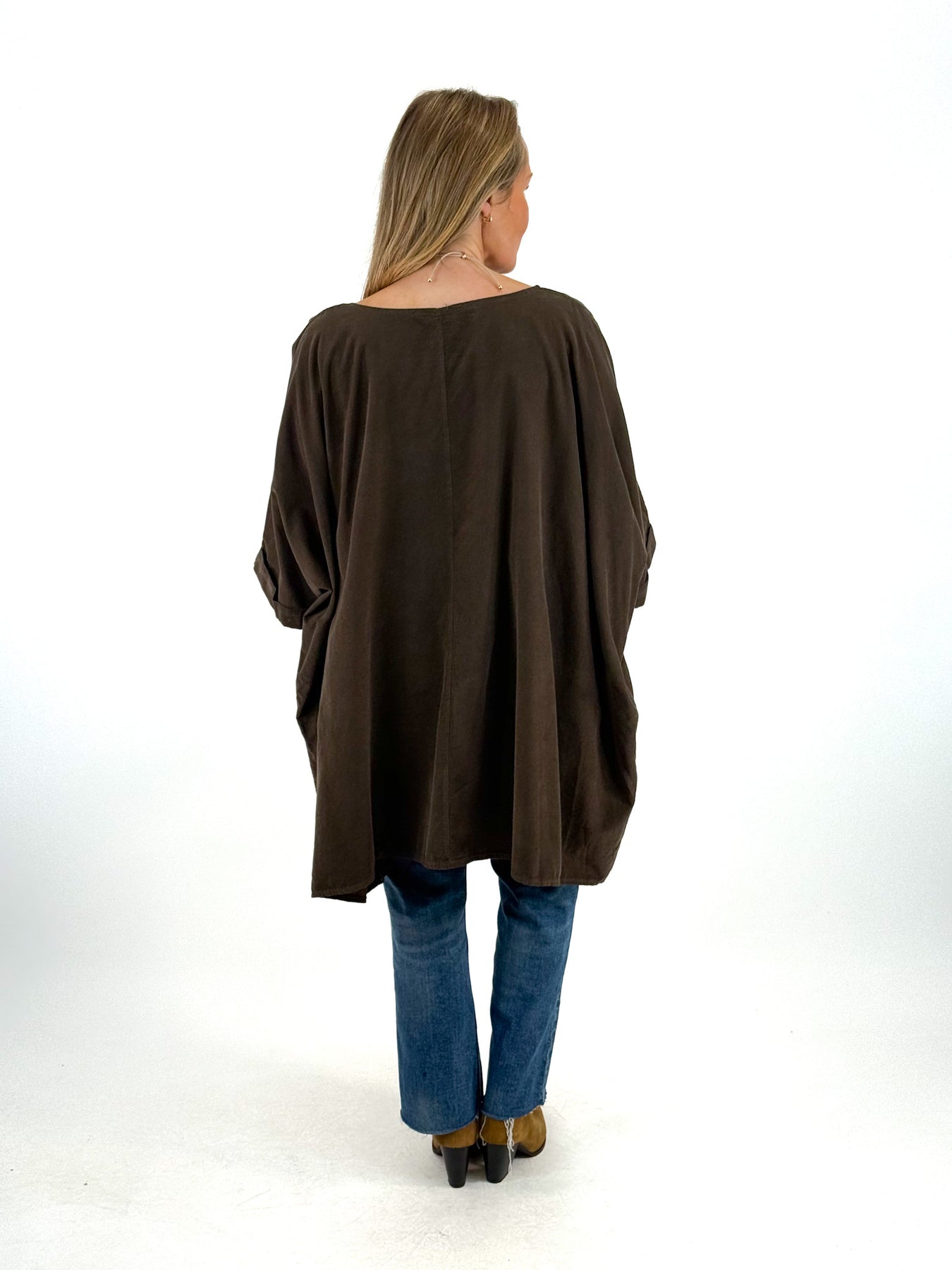 • Made in Italy Lagenlook Baxtor Corduroy Oversized Top in Chocolate. code 8375