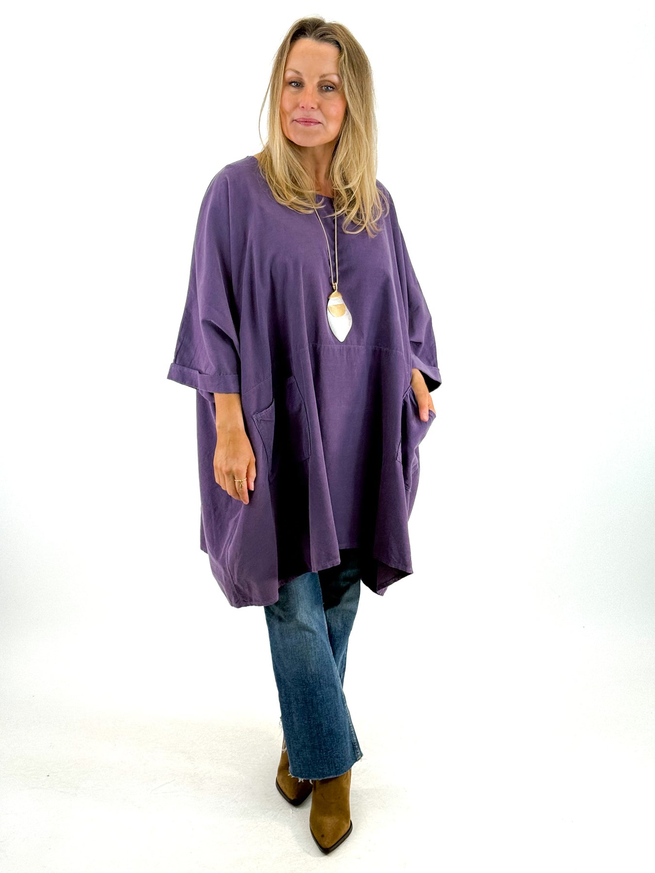 Made in Italy Lagenlook Baxtor Corduroy Oversized Top in Heather. code 8375