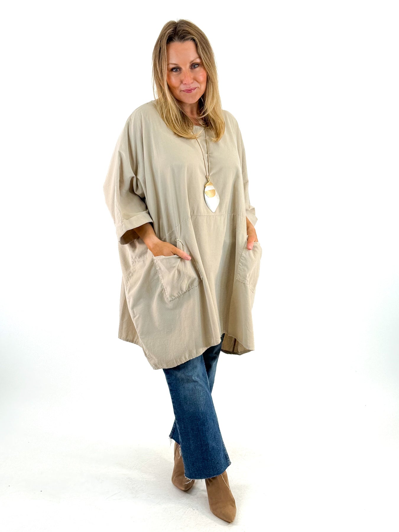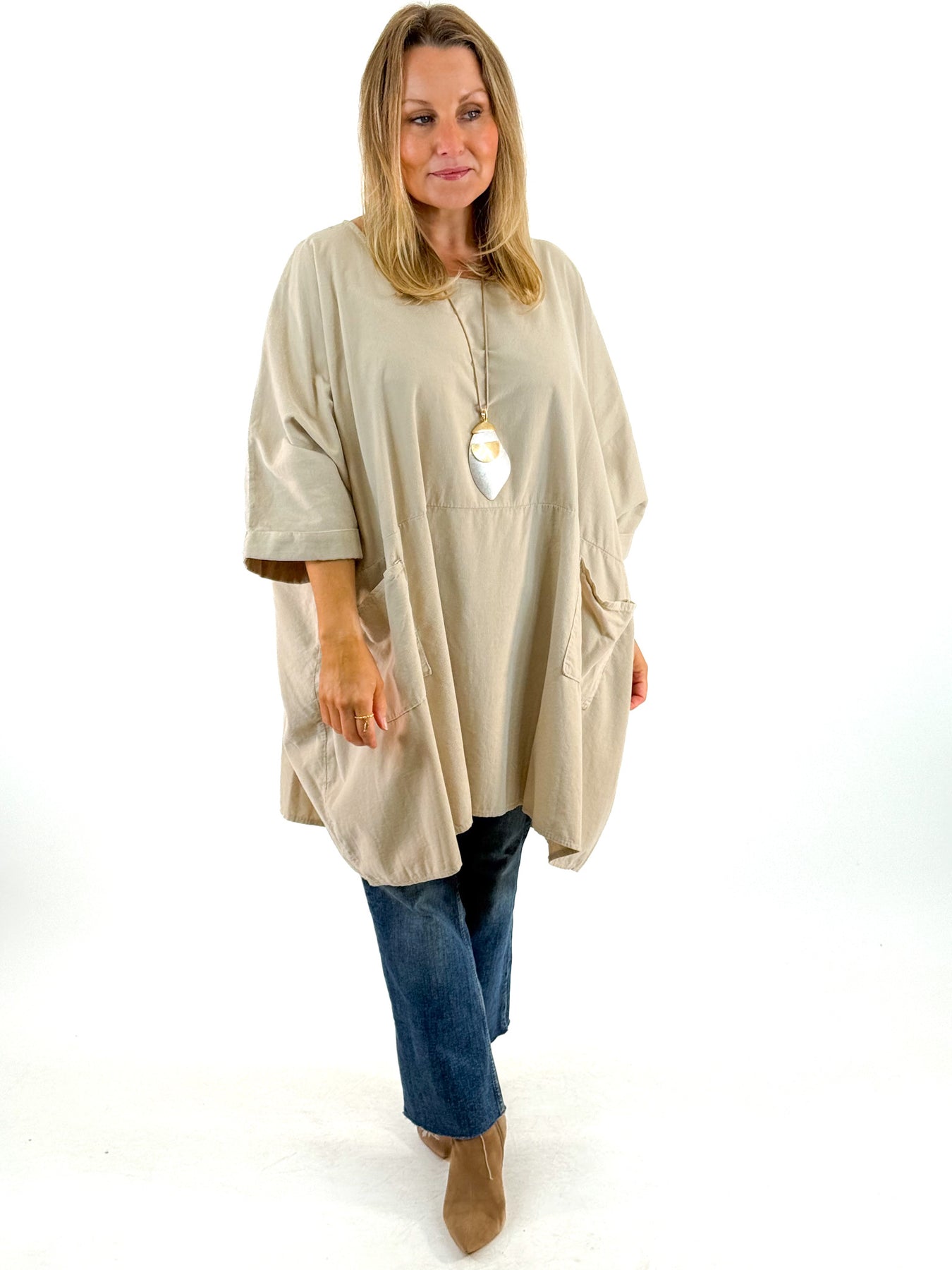 - Made in Italy Lagenlook Baxtor Corduroy Oversized Top in Winter Cream. code 8375