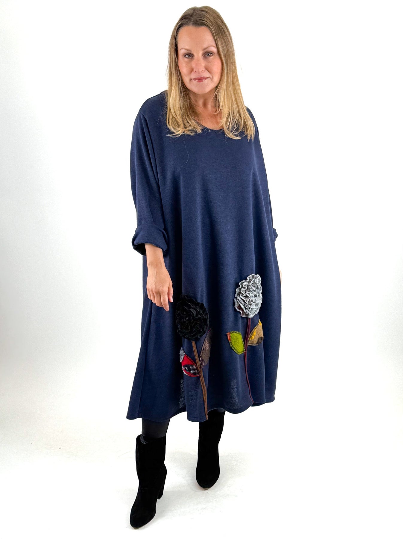 - Made in italy Lagenlook Victoria Flower Hem Top in Navy. code 90861