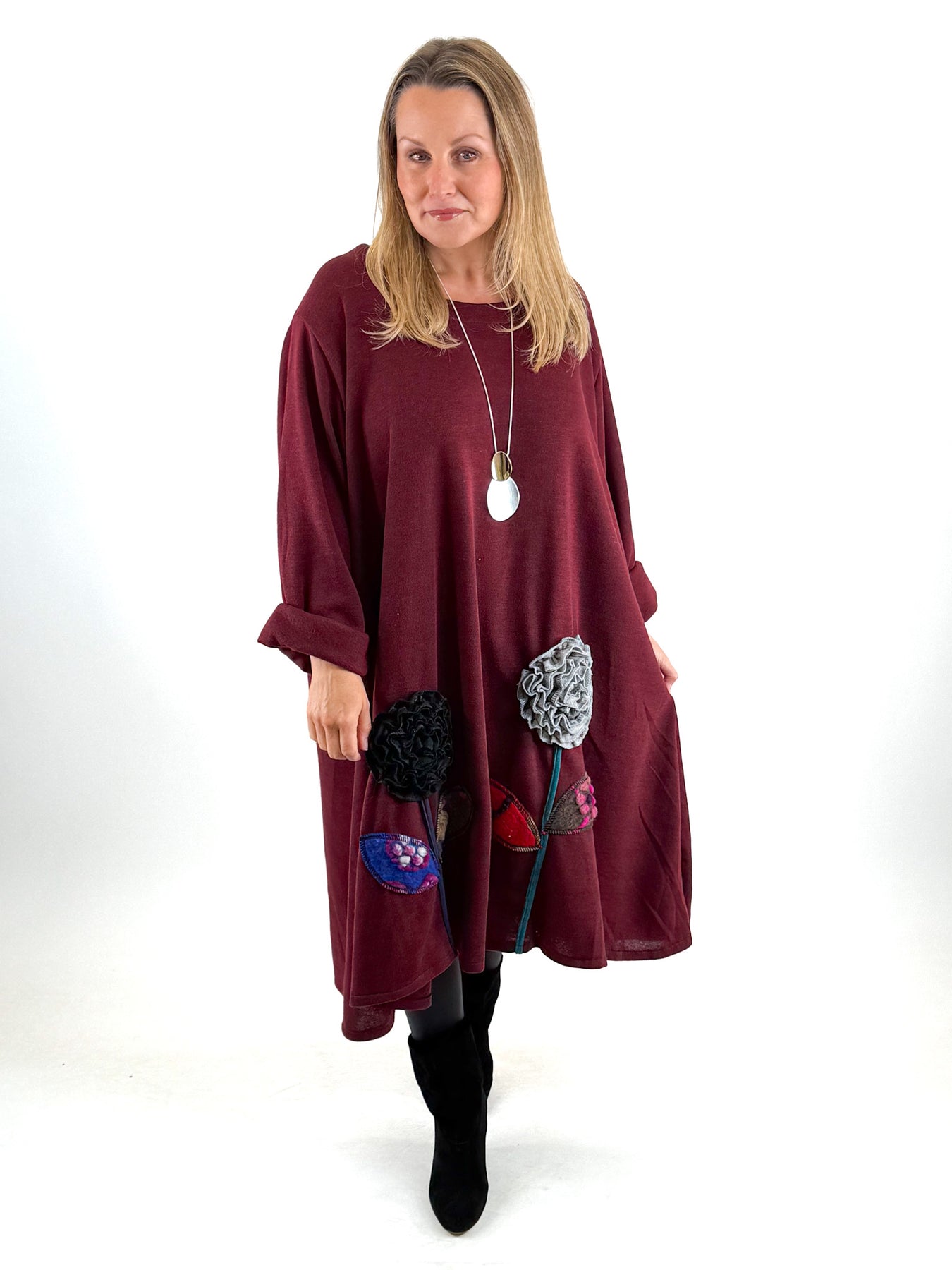 • Made in italy Lagenlook Victoria Flower Hem Top in Wine. code 90861