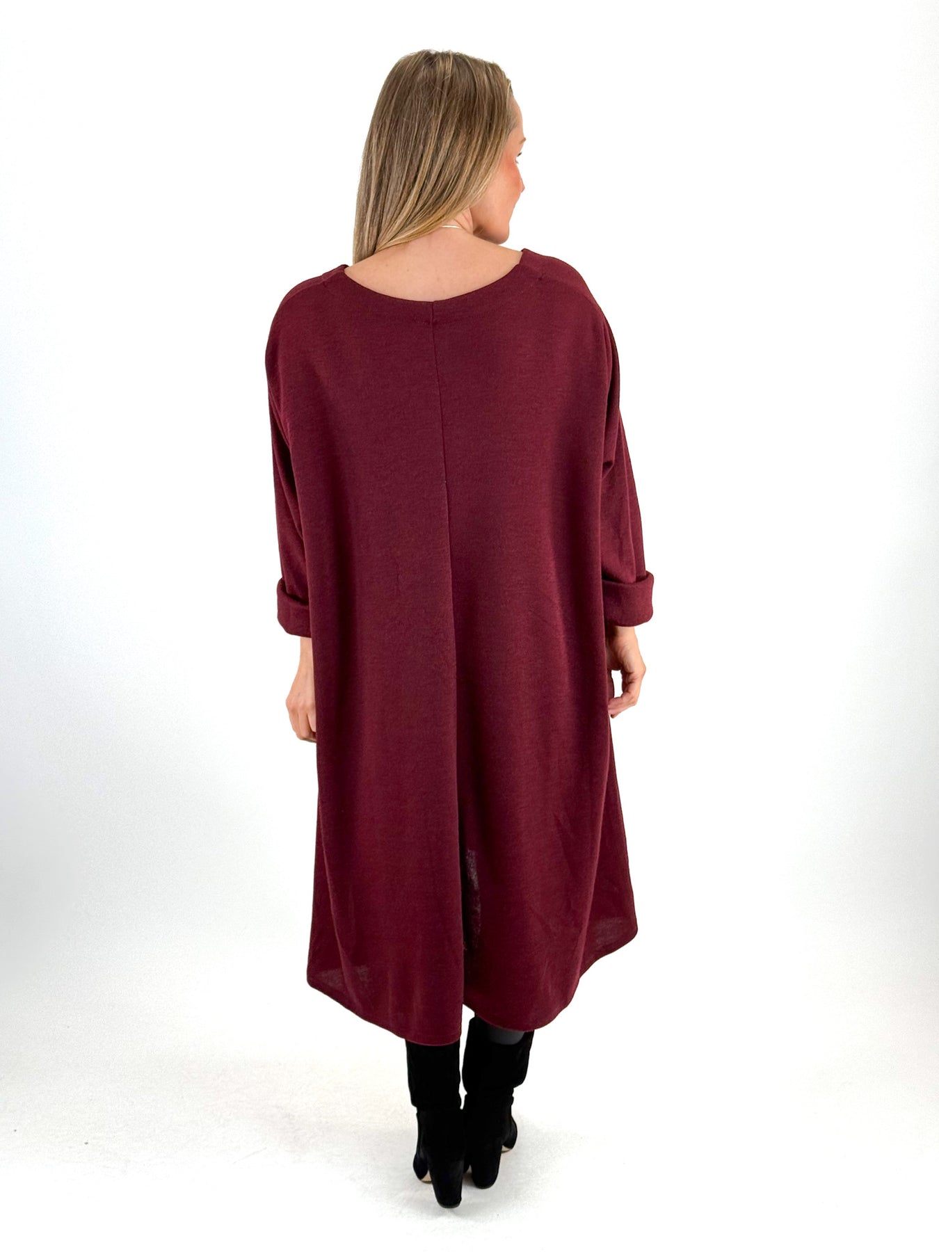 Made in italy Lagenlook Victoria Flower Hem Top in Wine. code 90861