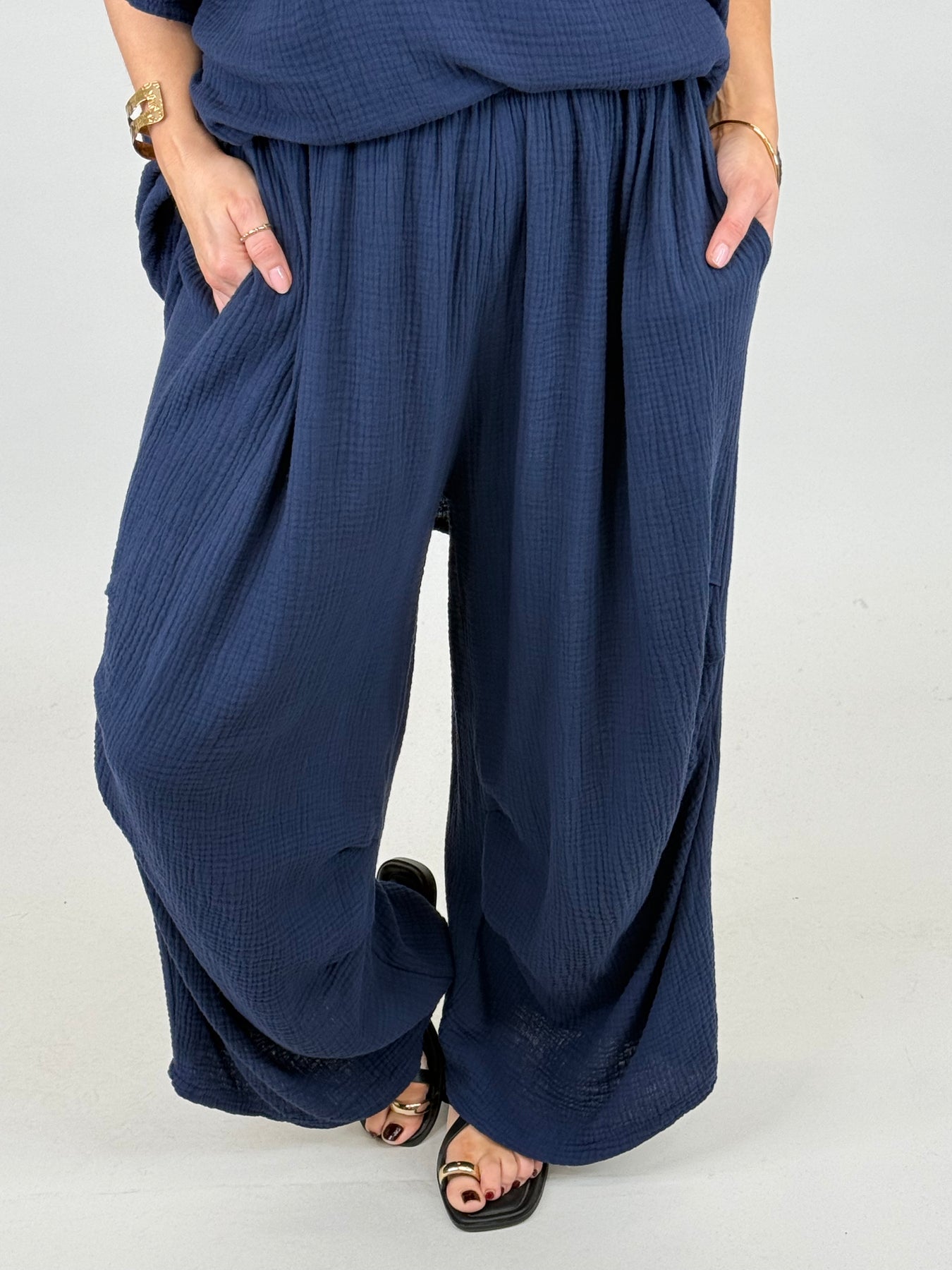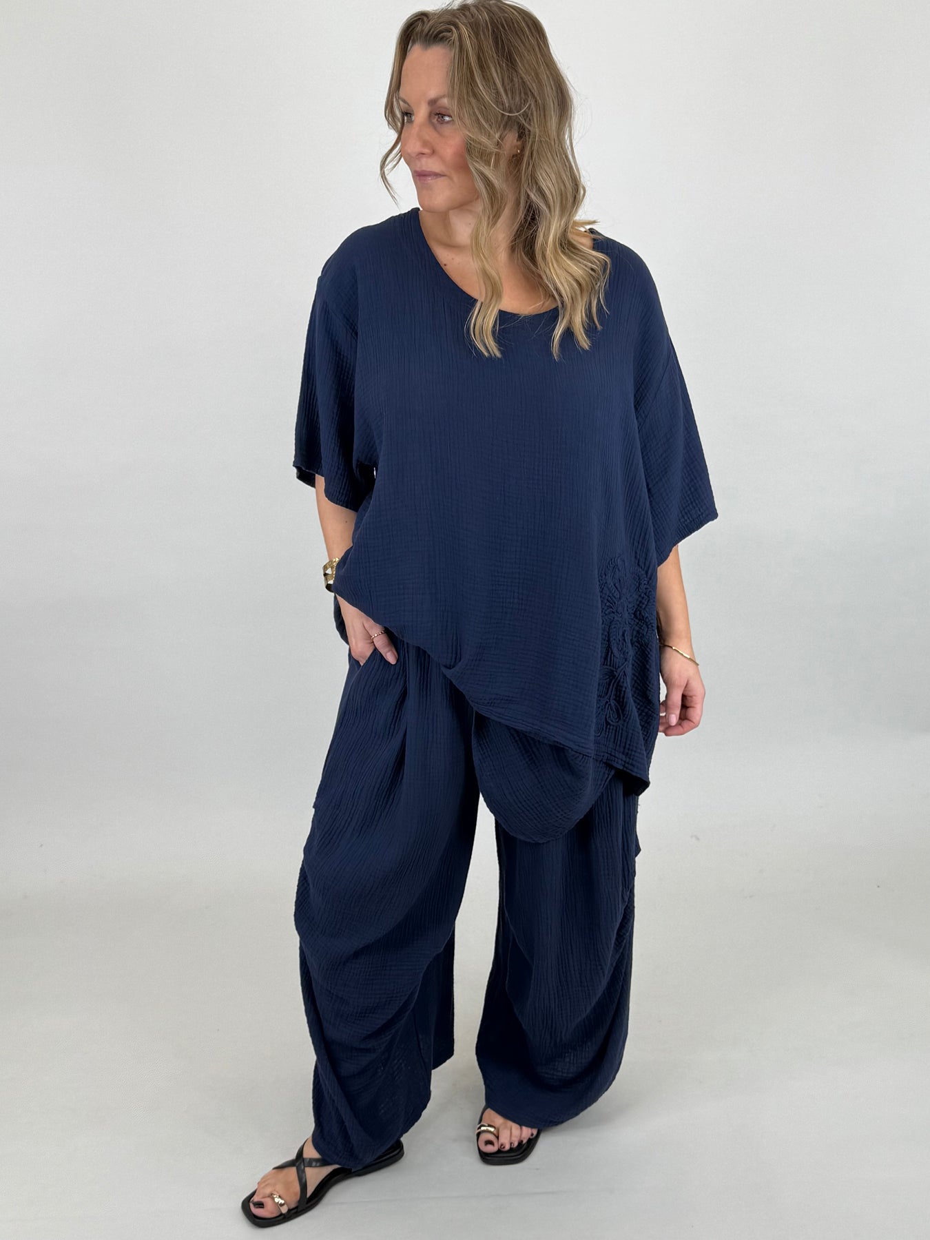 MADE IN ITALY | Lena Cotton Trousers Navy | One Size 10-24uk |92120
