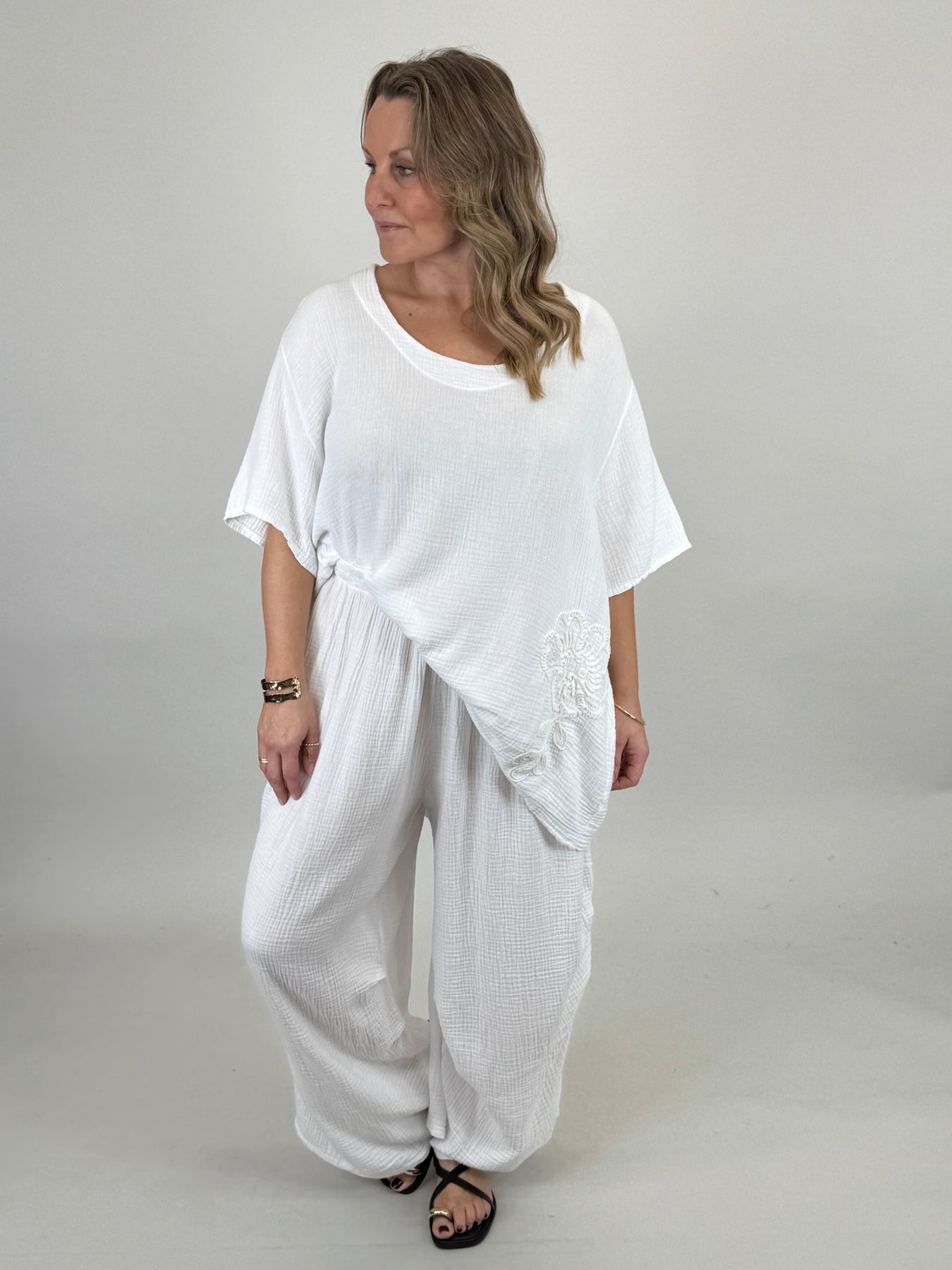 MADE IN ITALY | Lena Cotton Trousers White | One Size 10-24uk |92120