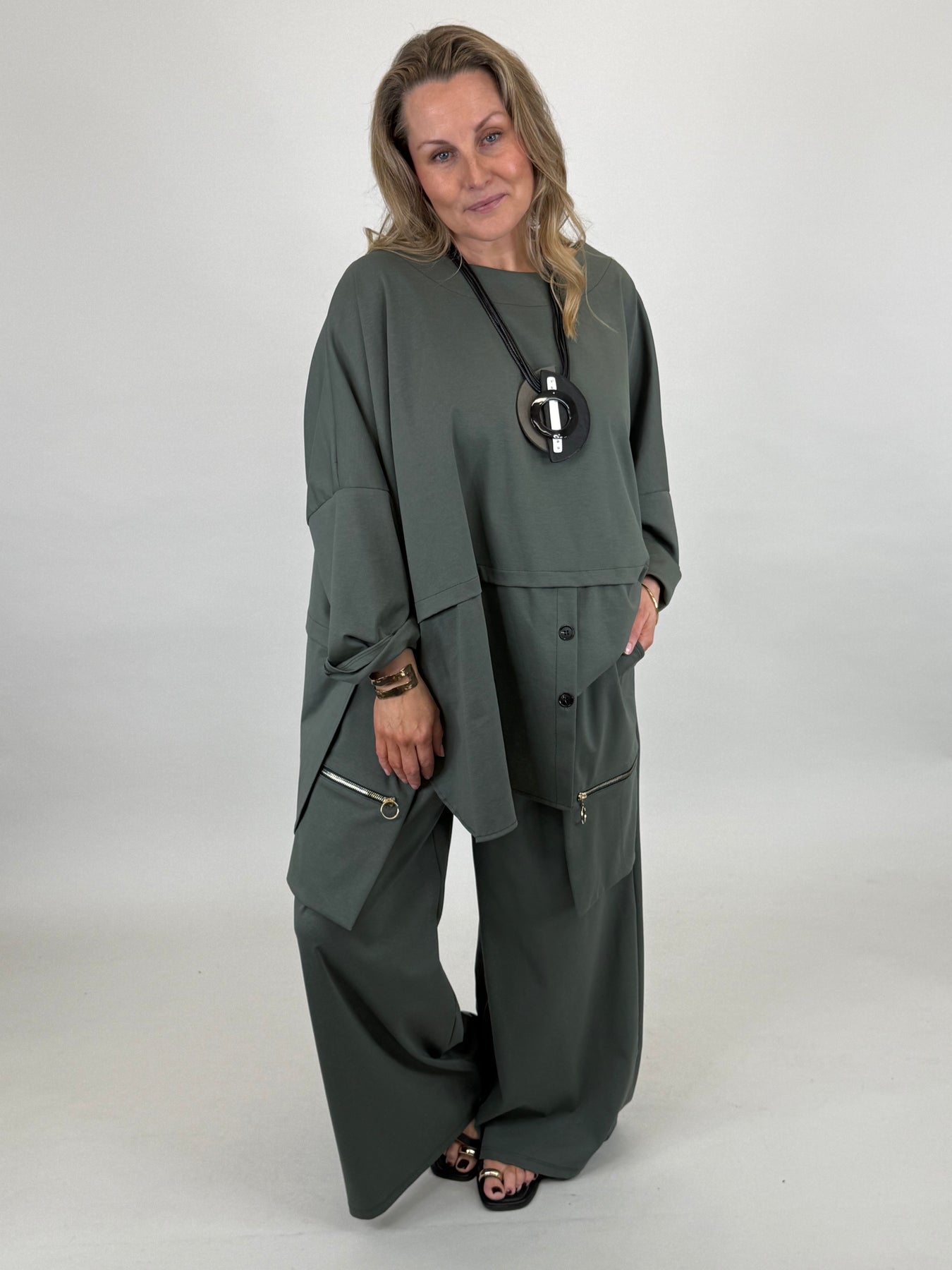 • Made in Italy Zoe Zip Trouser | Khaki