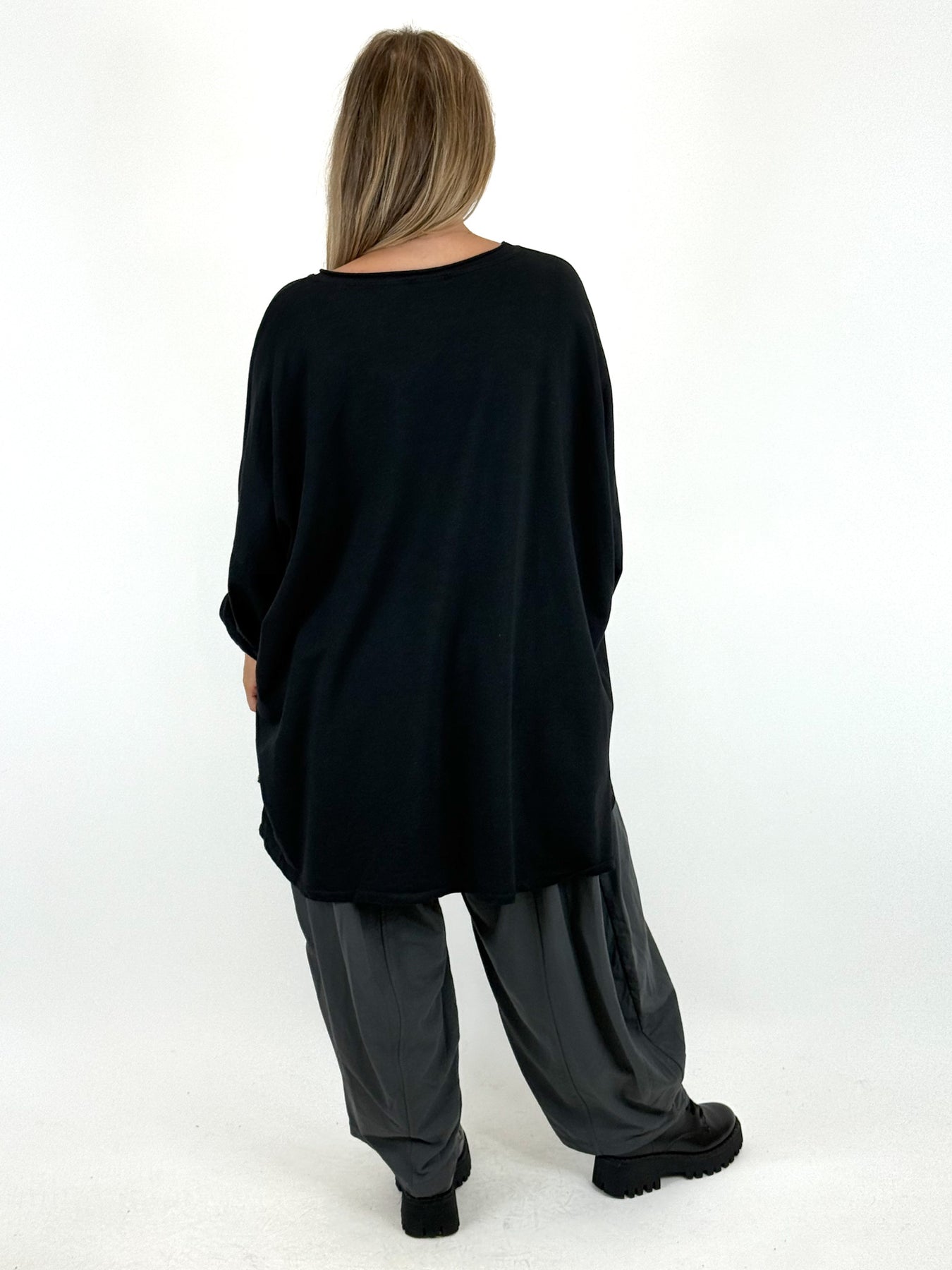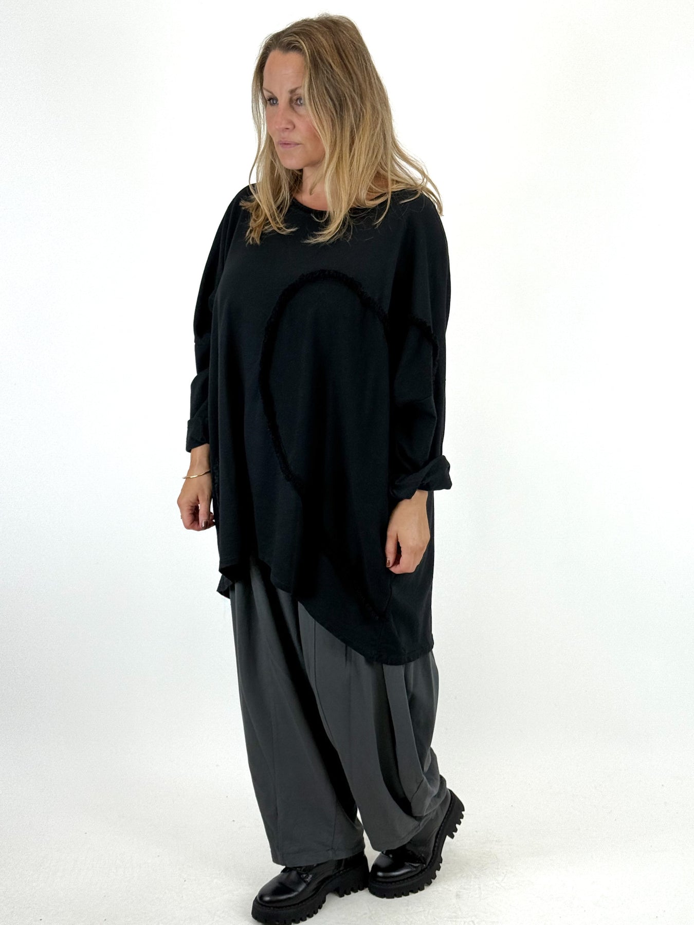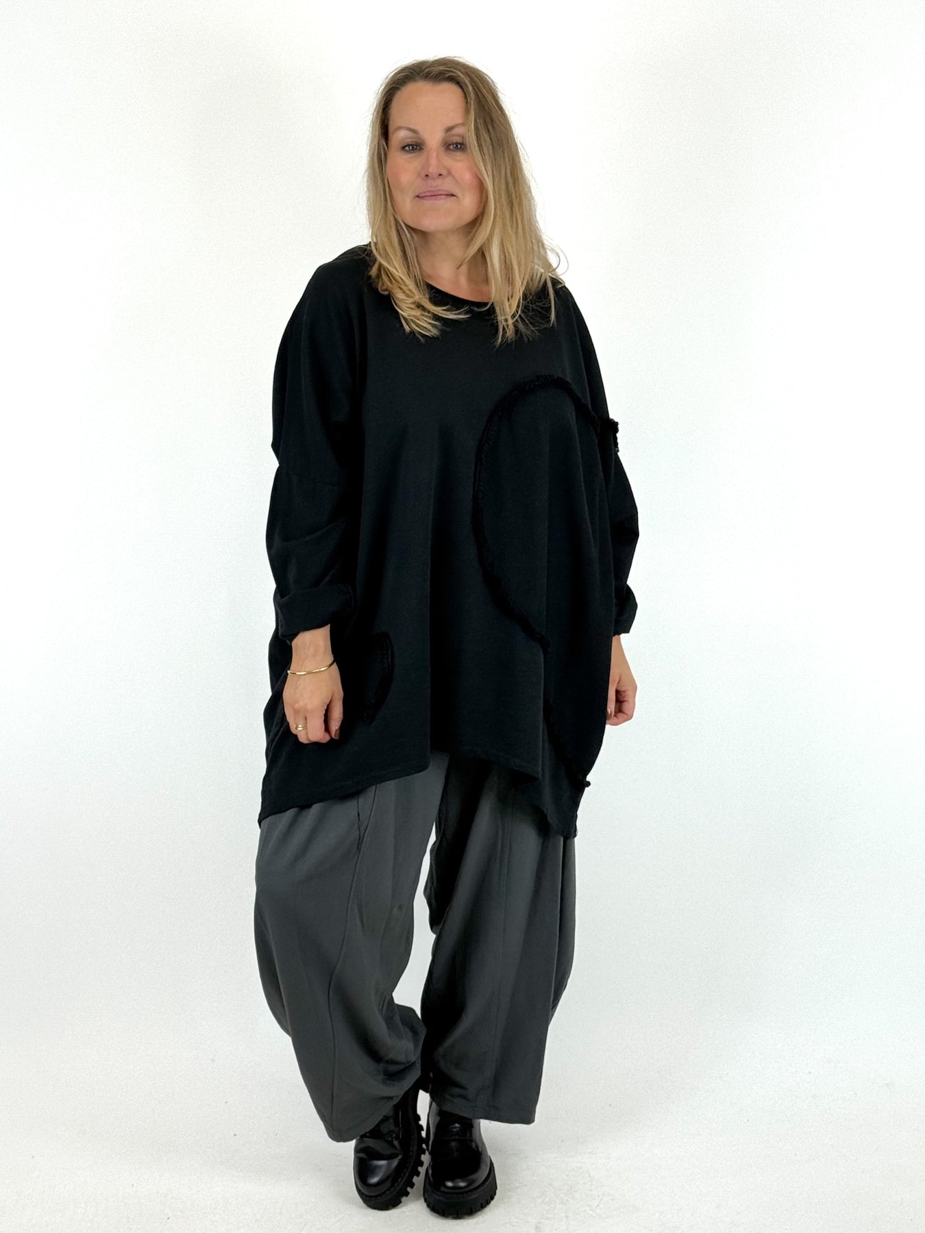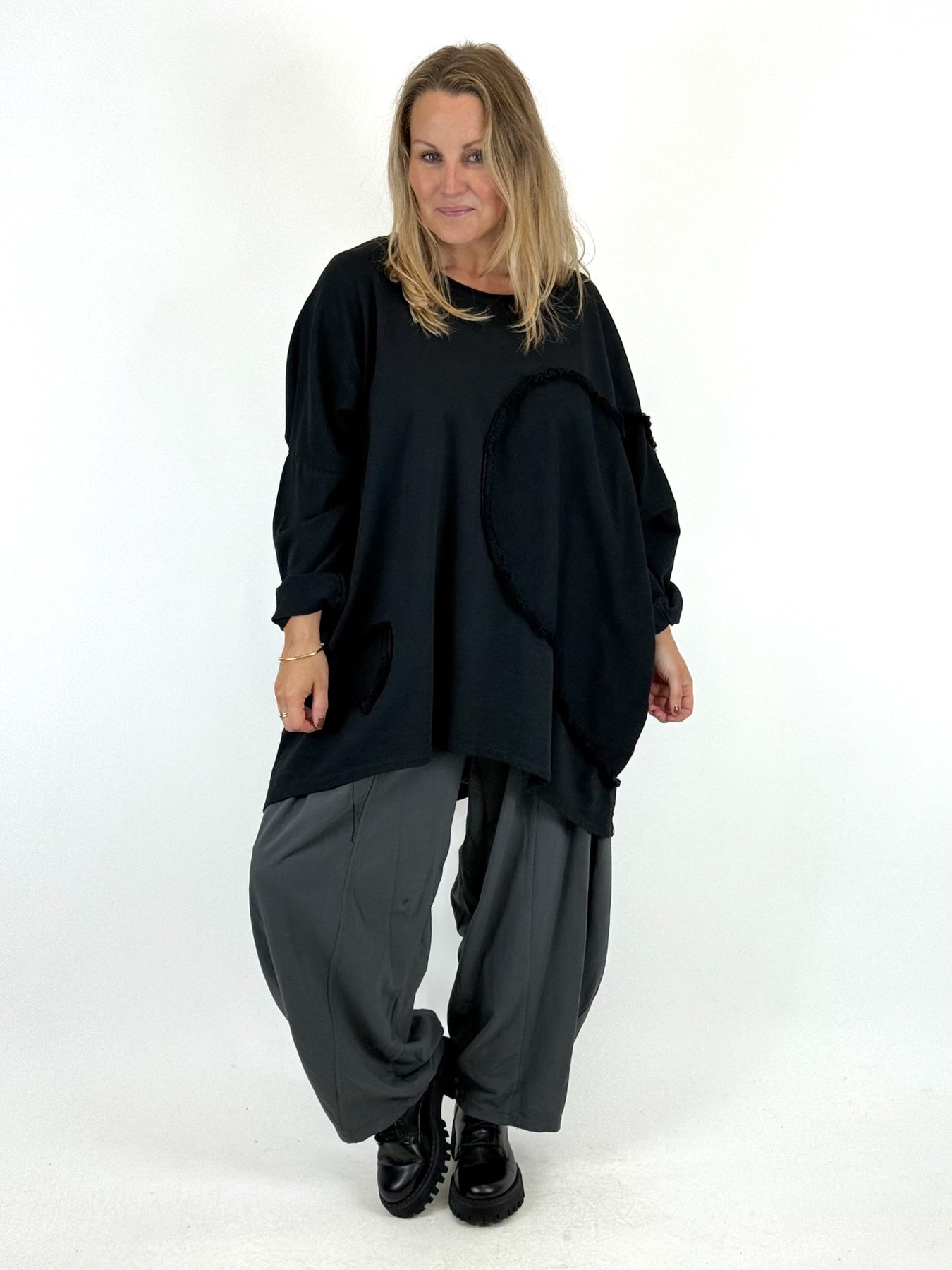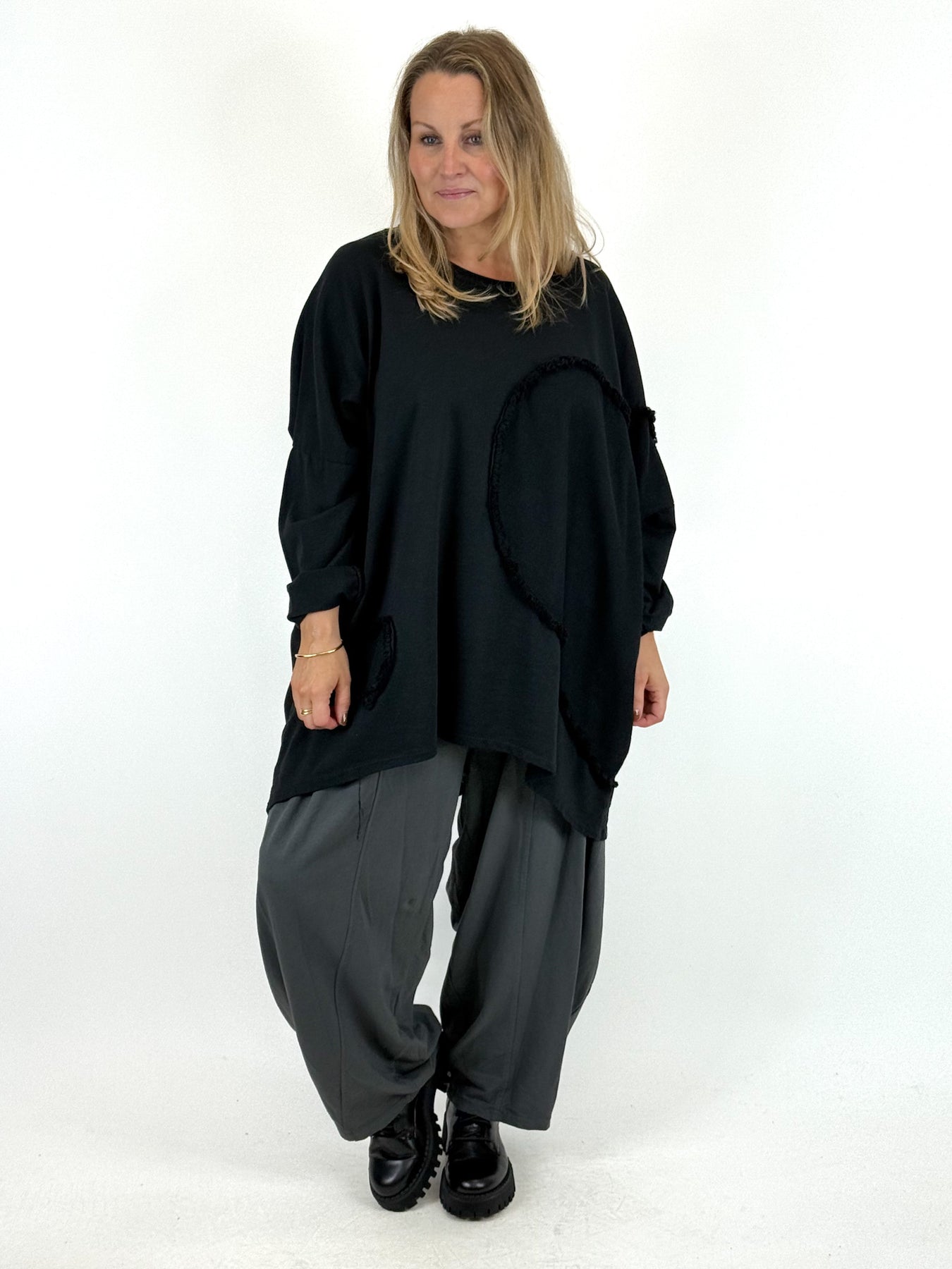 - Made in Italy Lagenlook Emi Heart Sweatshirt in Black. 07273