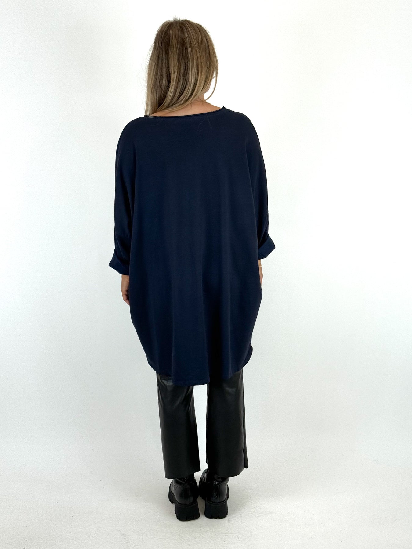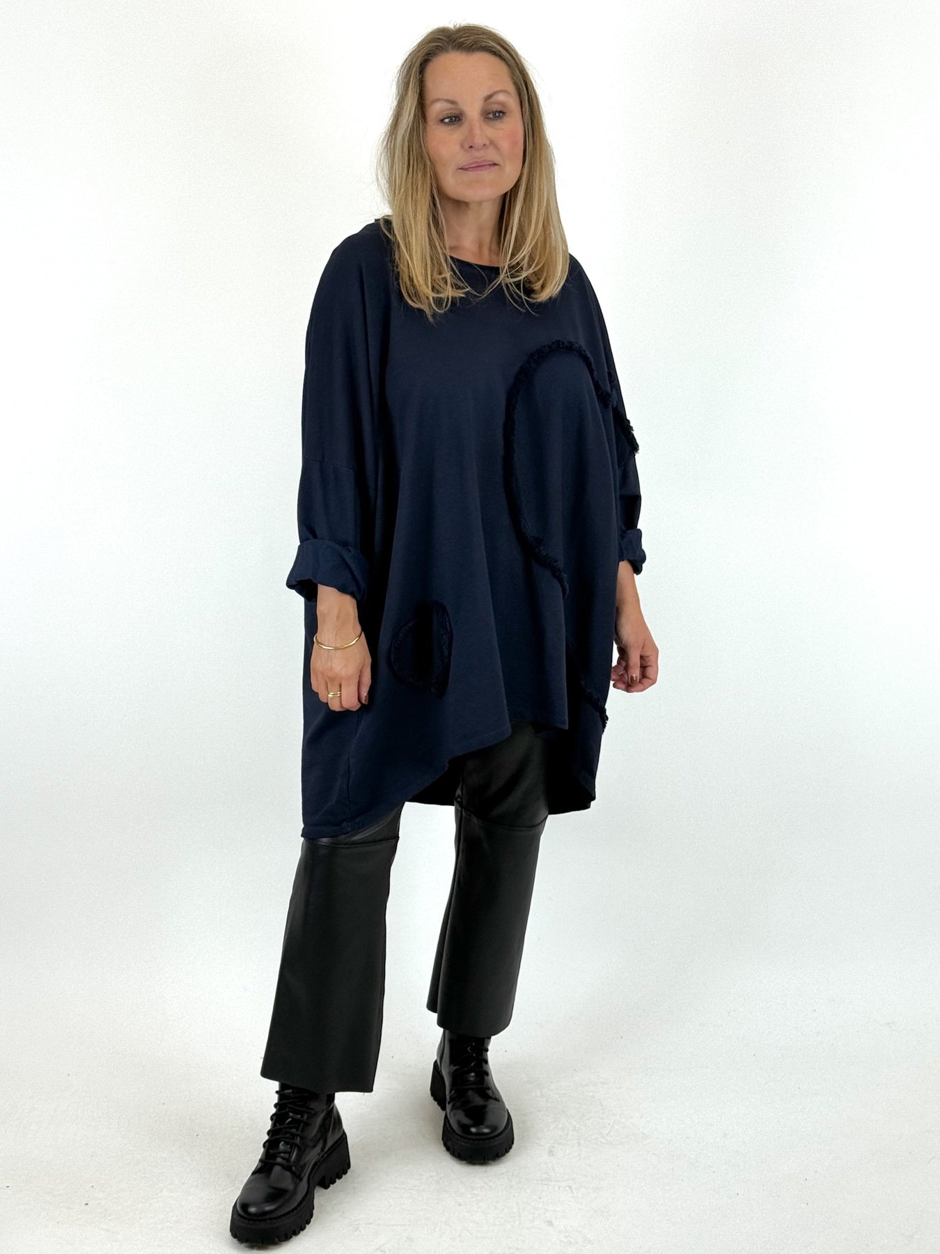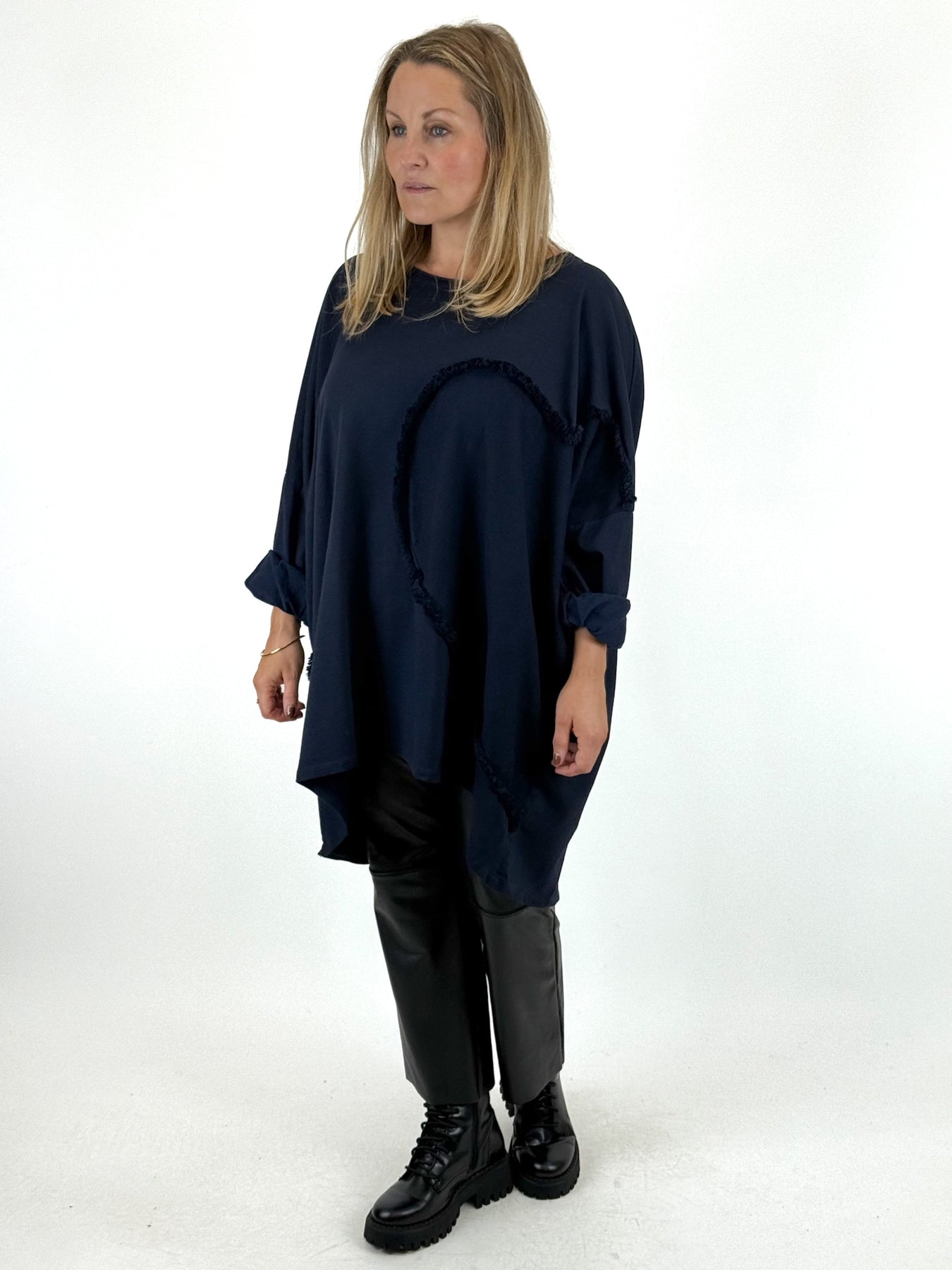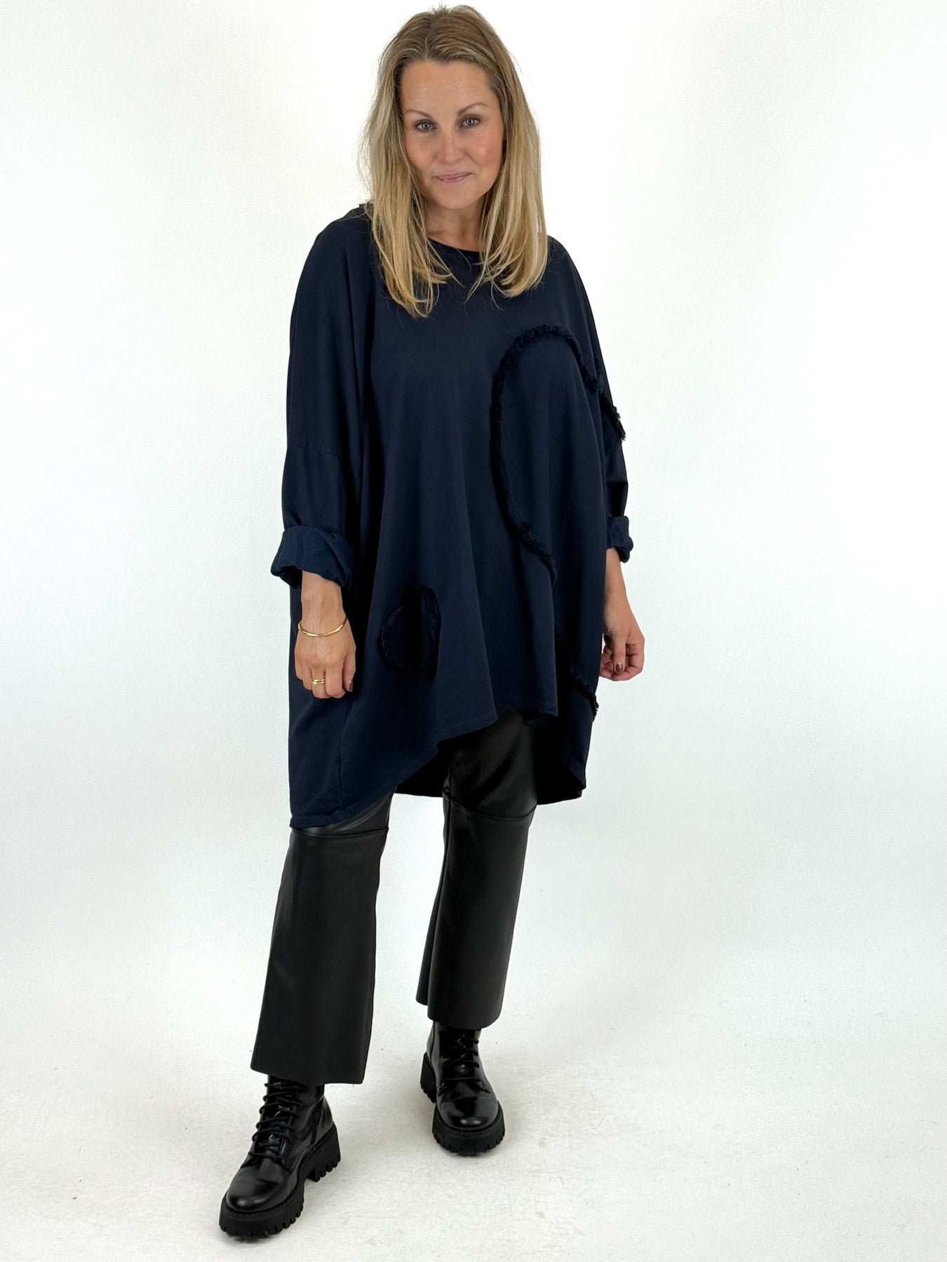 - Made in Italy Lagenlook Emi Heart Sweatshirt in Navy Blue. 07273