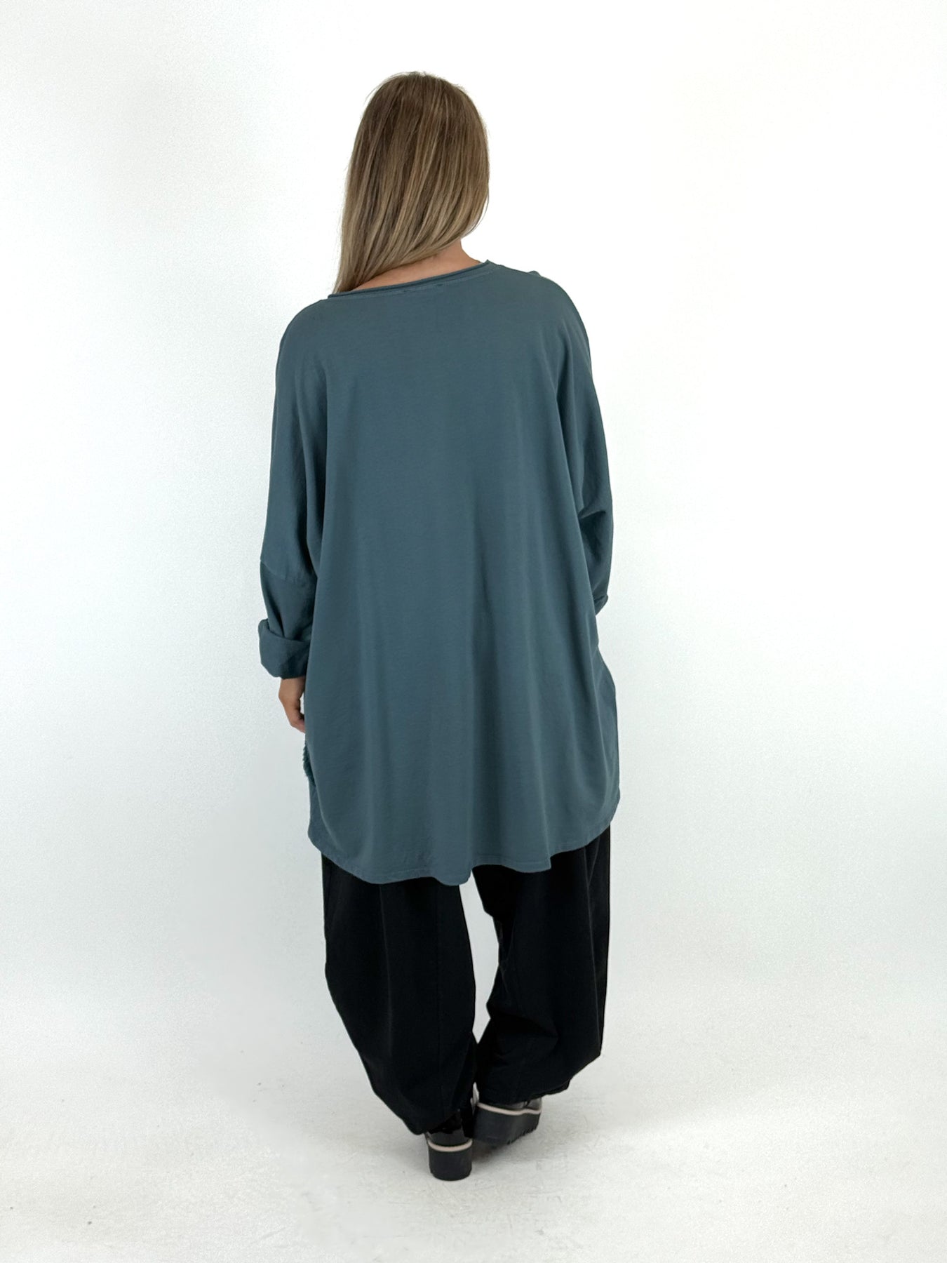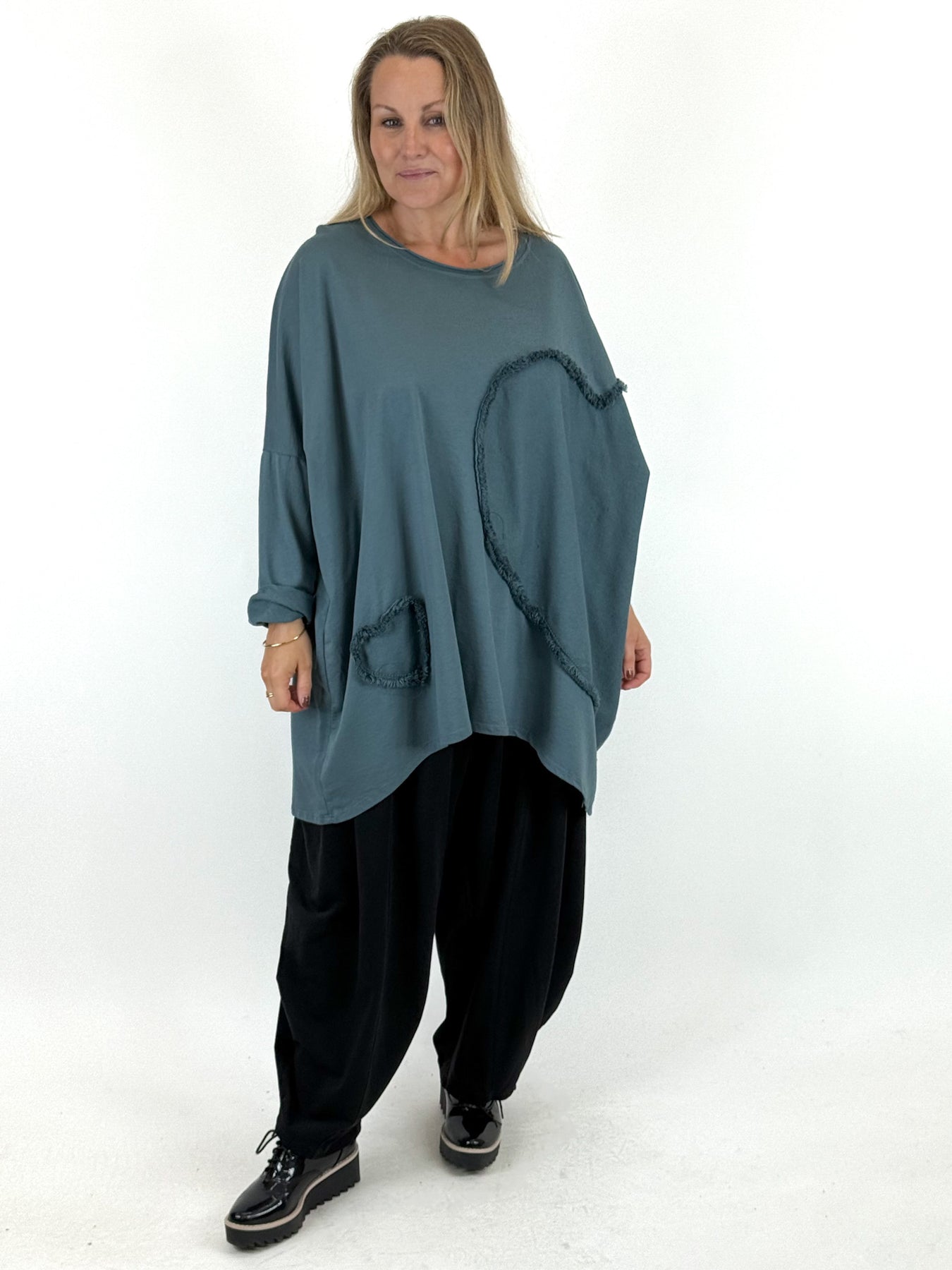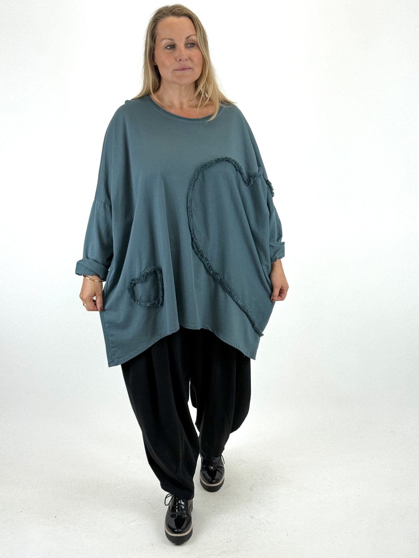 - Made in Italy Lagenlook Emi Heart Sweatshirt in Oxford Blue. 07273
