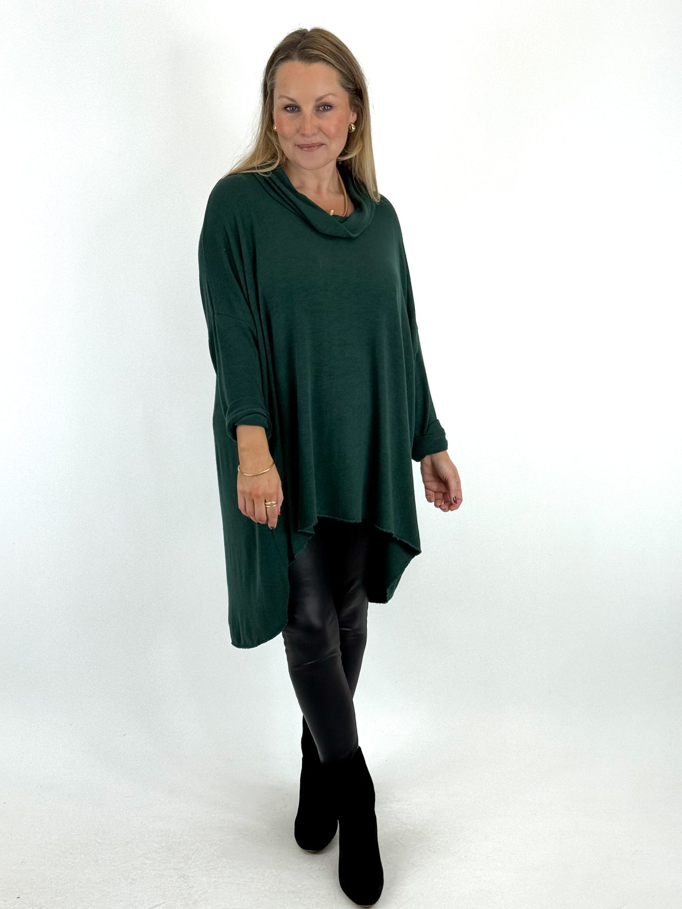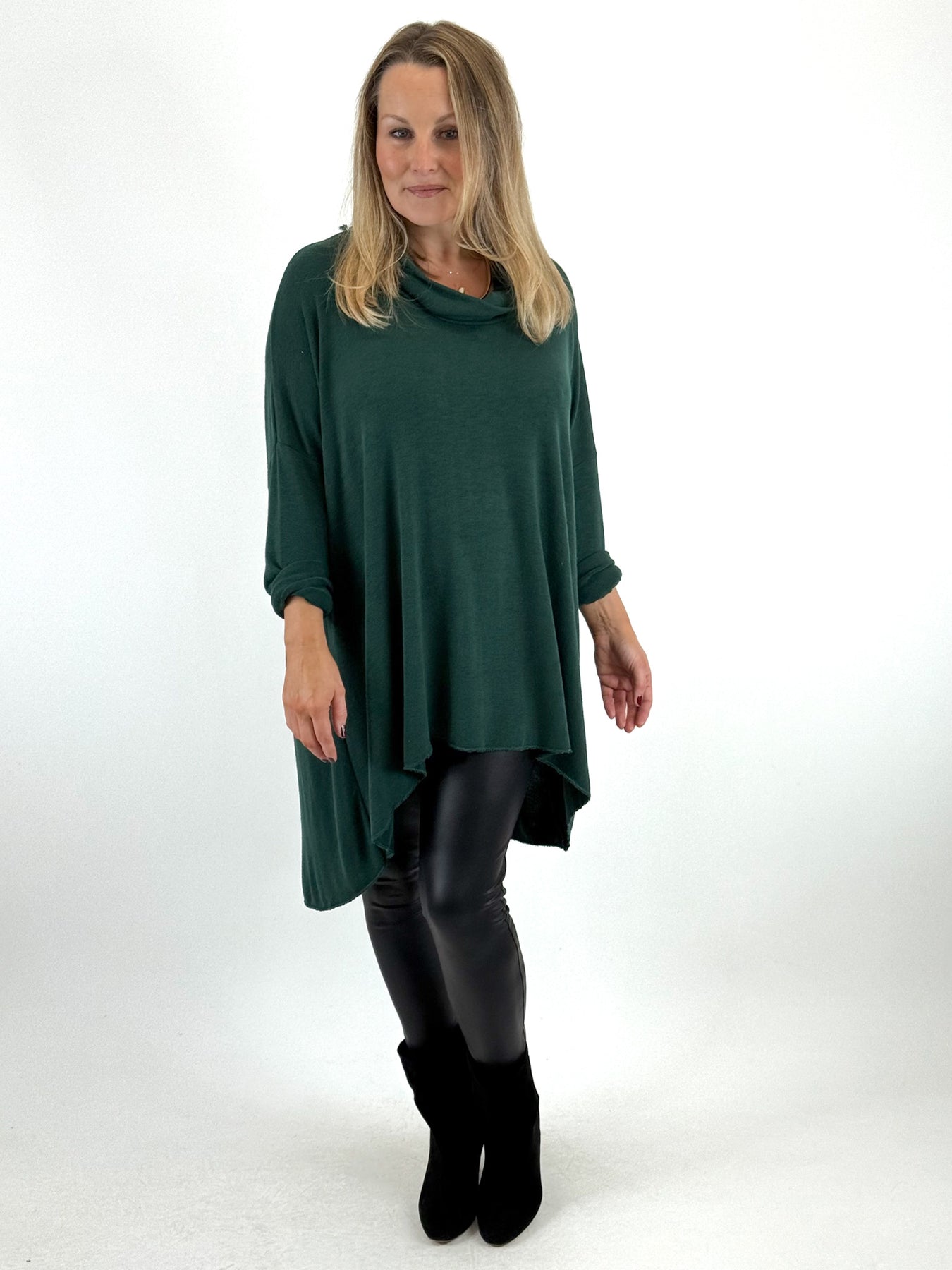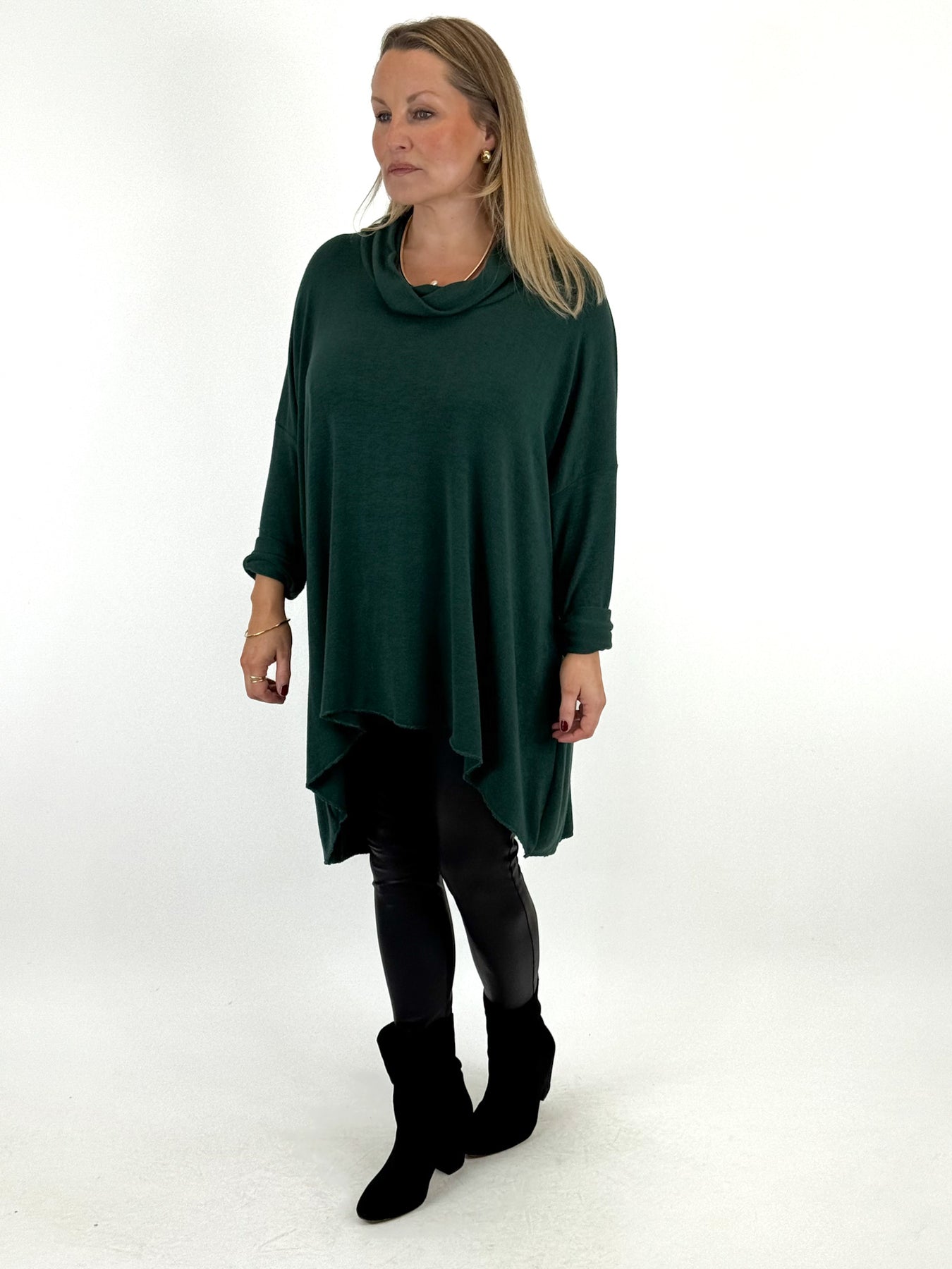 - Made in Italy Lagenlook Louise Cowl Top in Bottle Green code 55085