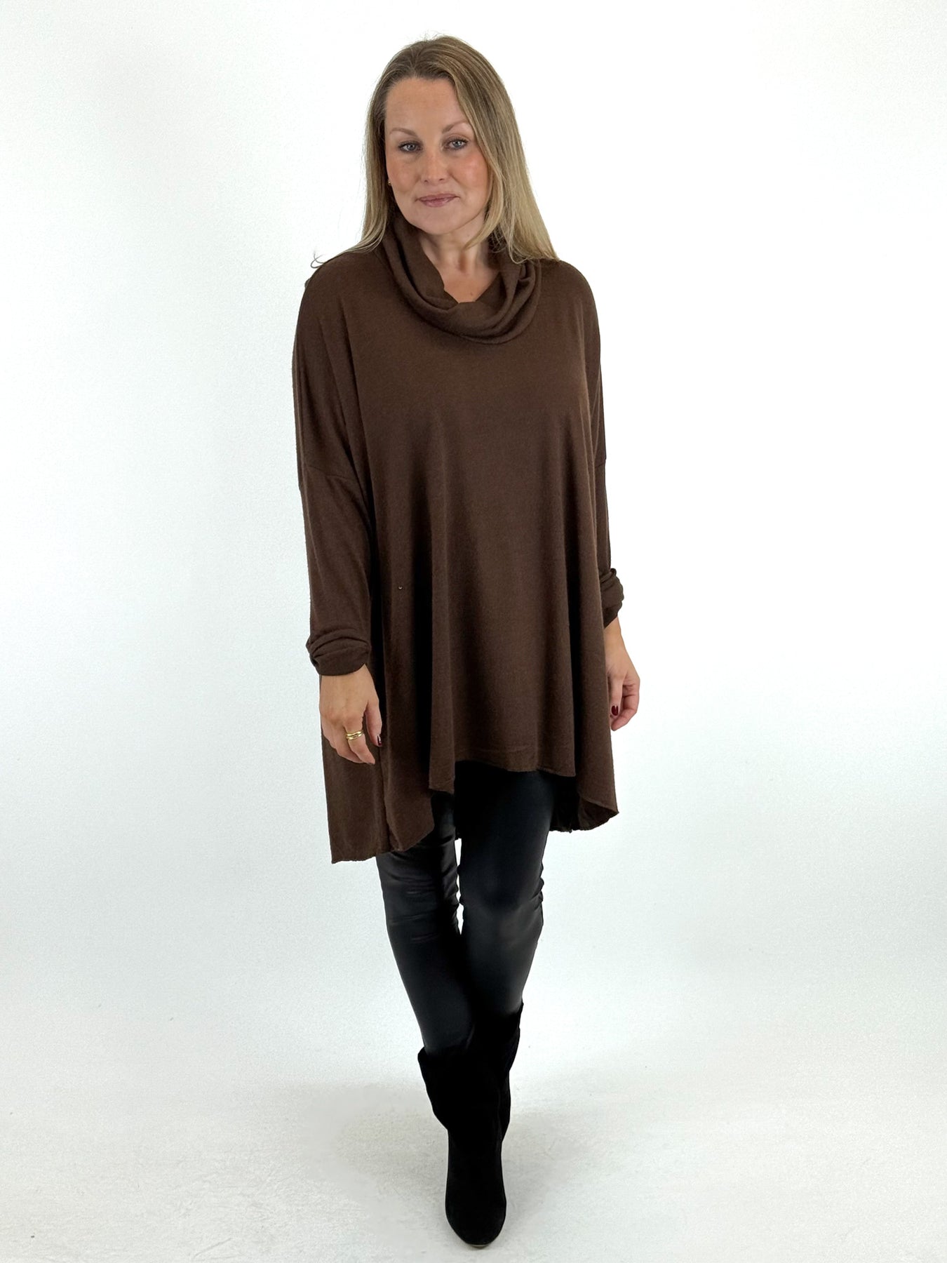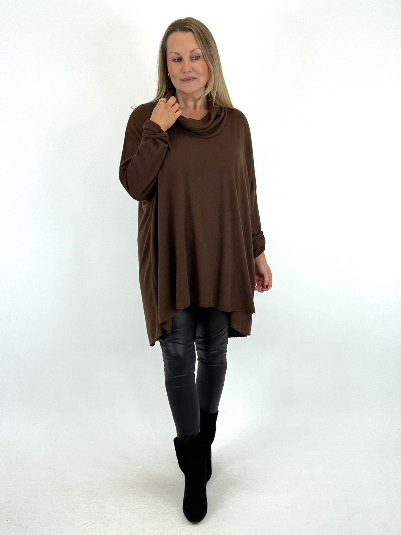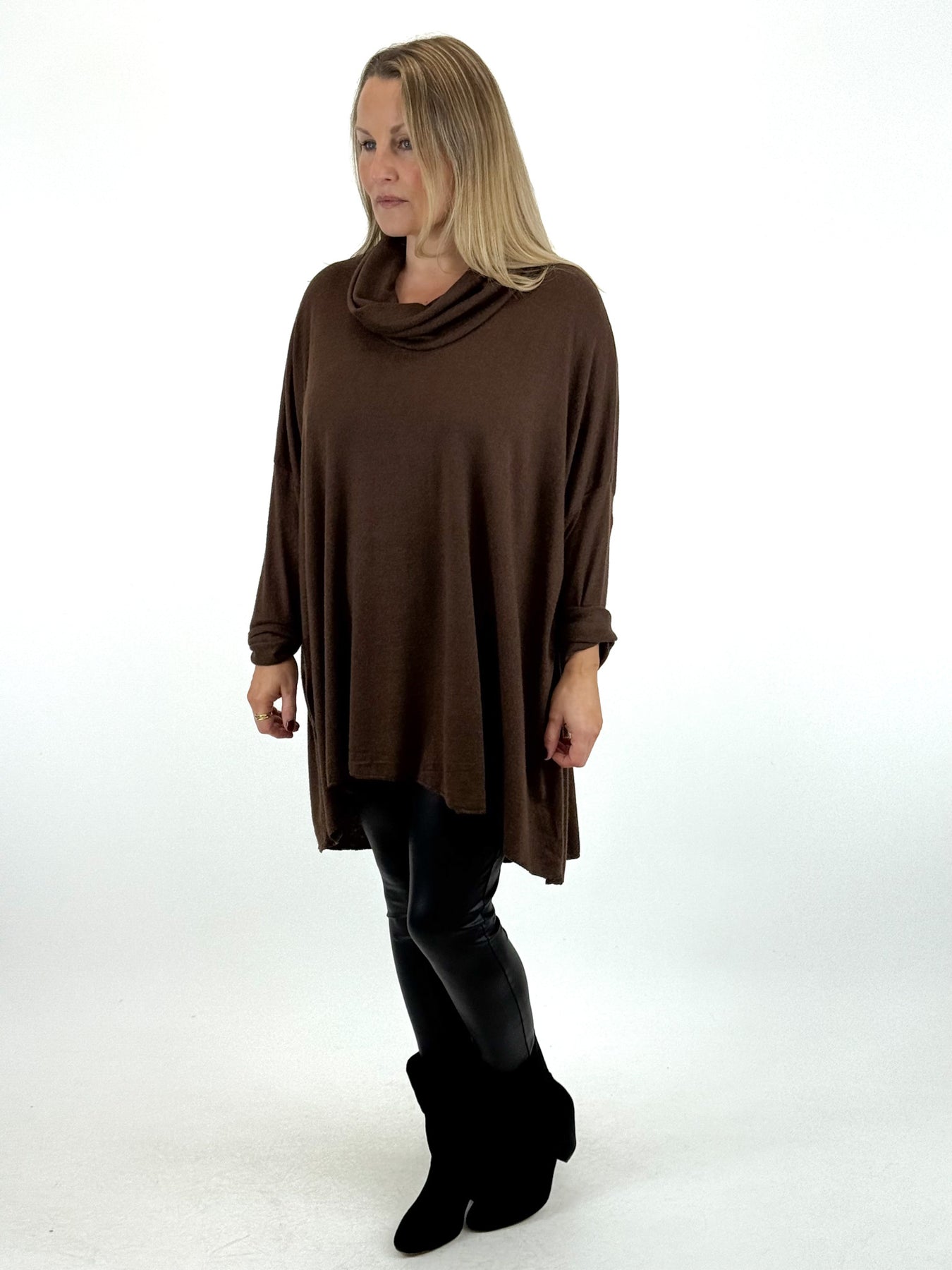 - Made in Italy Lagenlook Louise Cowl Top in Chocolate. code 55085
