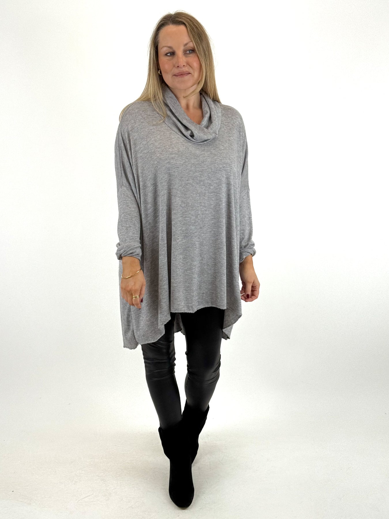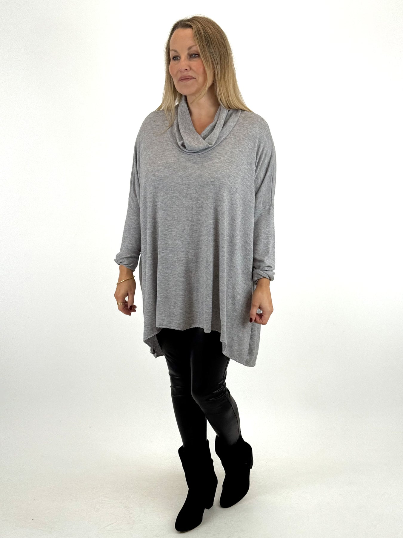 - Made in Italy Lagenlook Louise Cowl Top in Grey Marl. code 55085