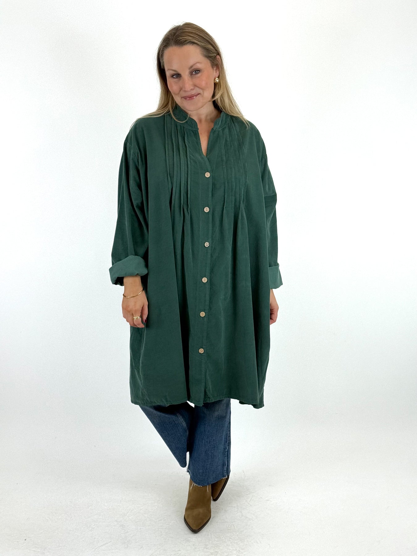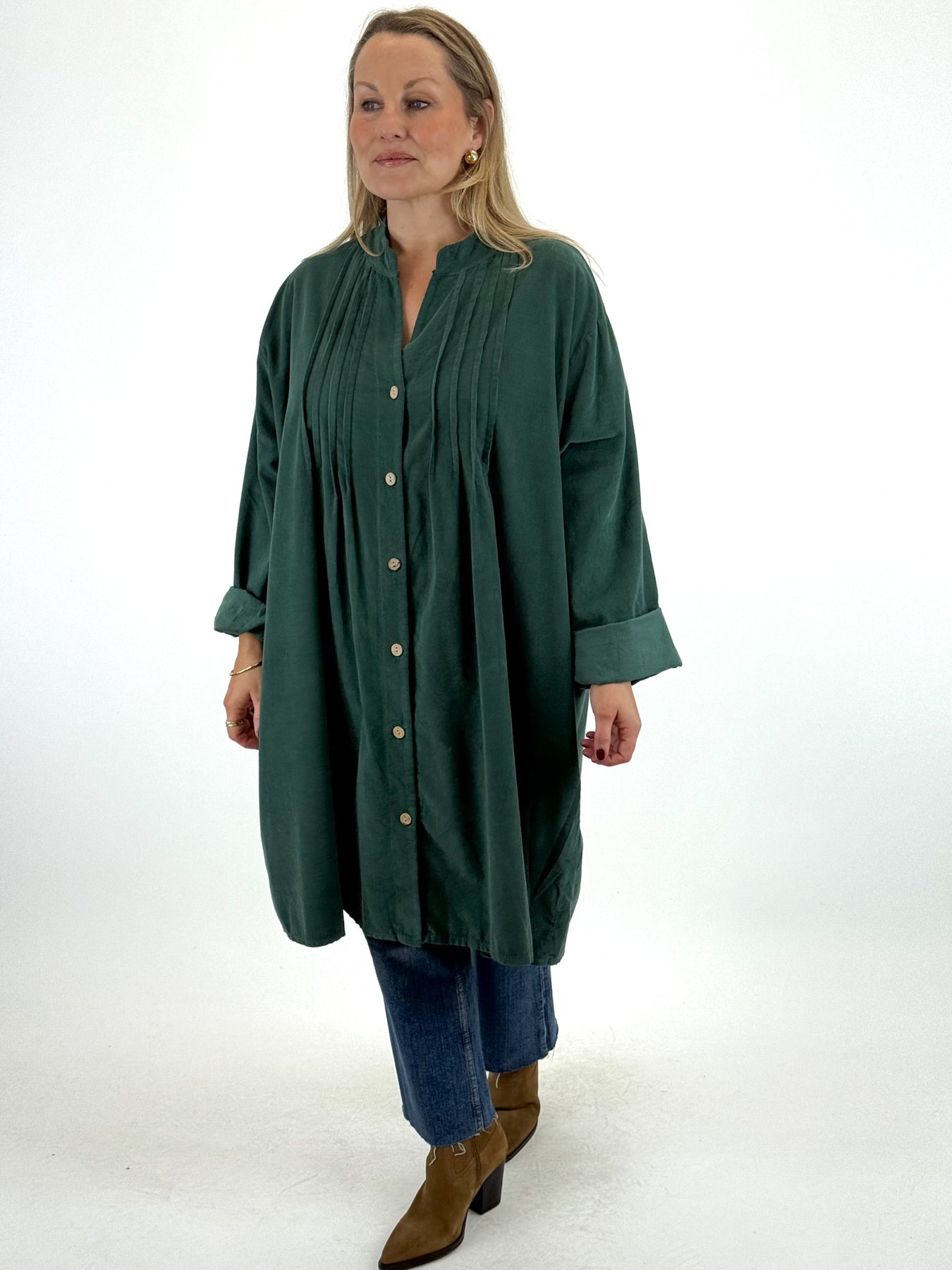Made in Italy Lagenlook Polly Pin-tuck Corduroy Shirt Bottle Green. 56728