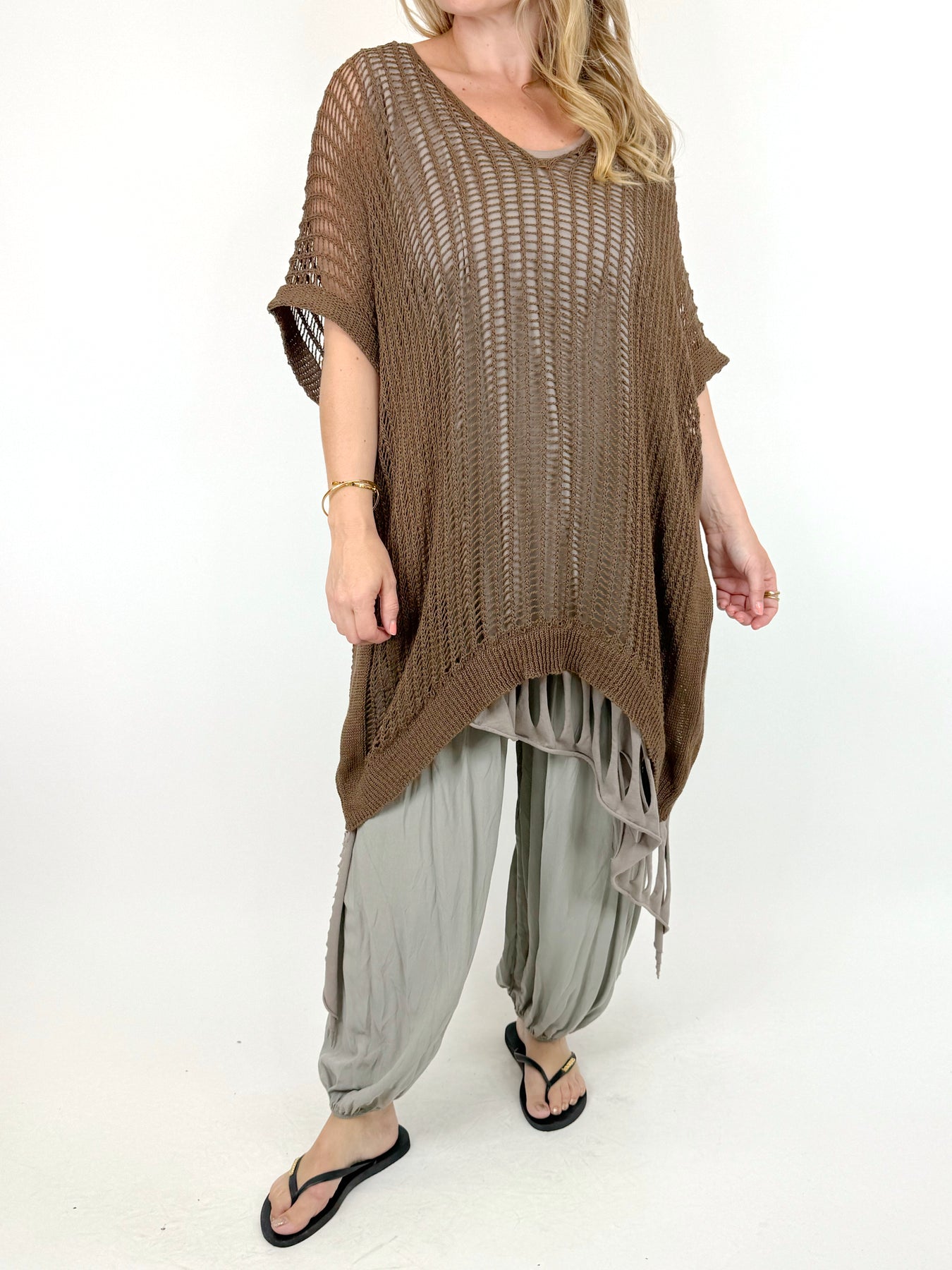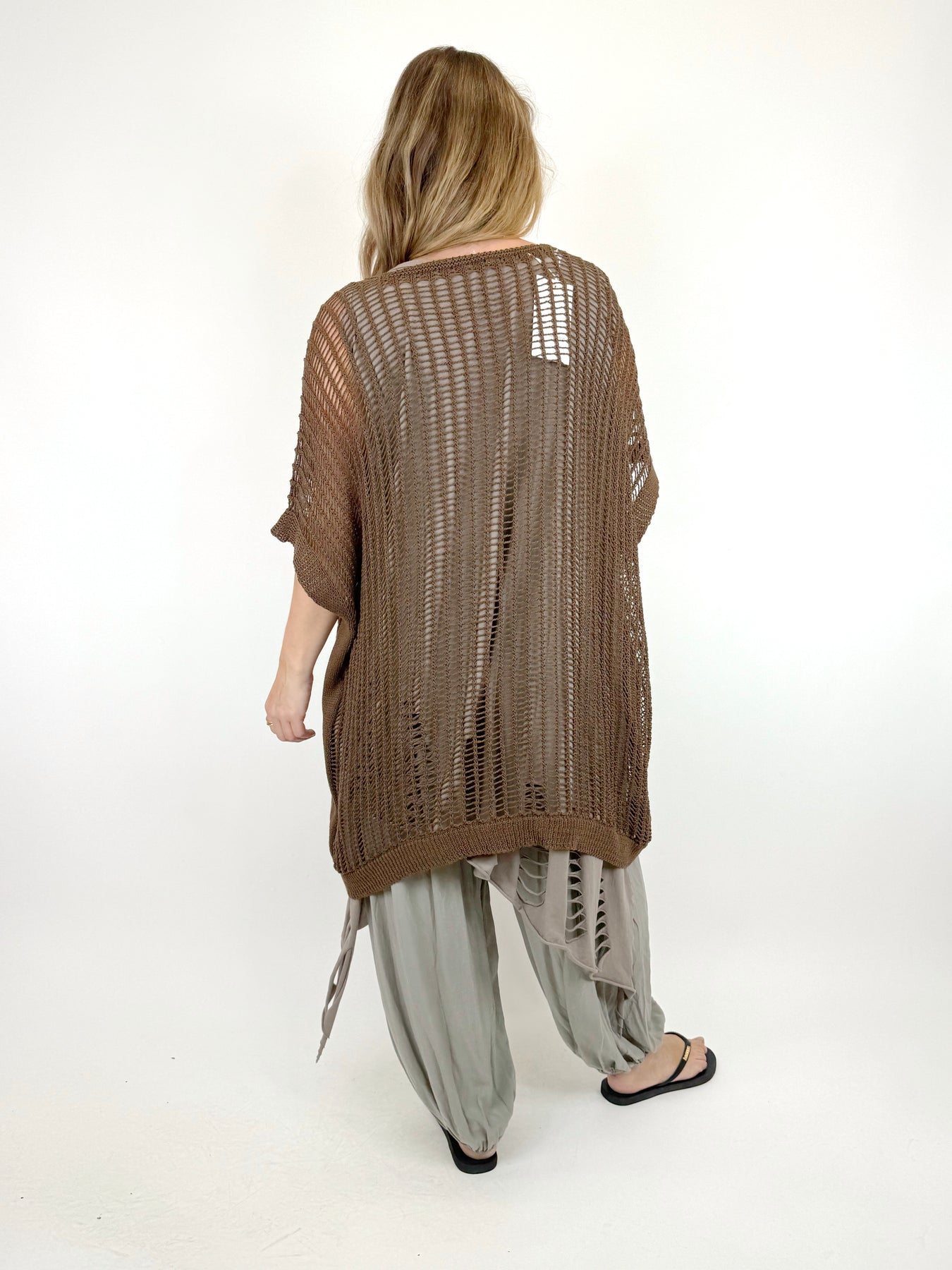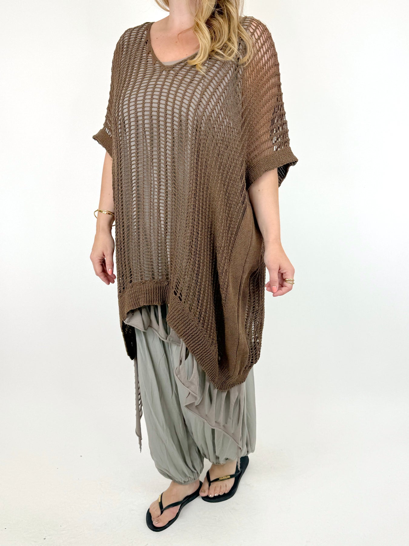Made in Italy Lagenlook Take Me Away Cotton Net Knit in Chocolate. code 6012