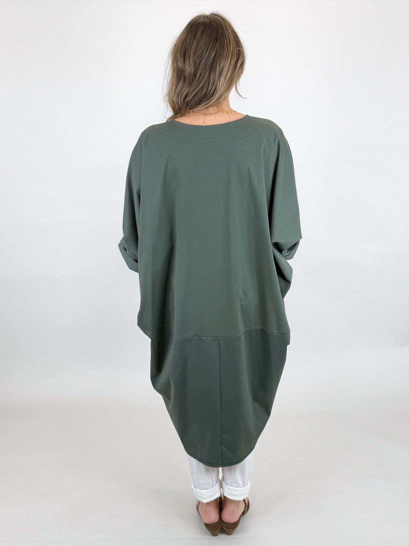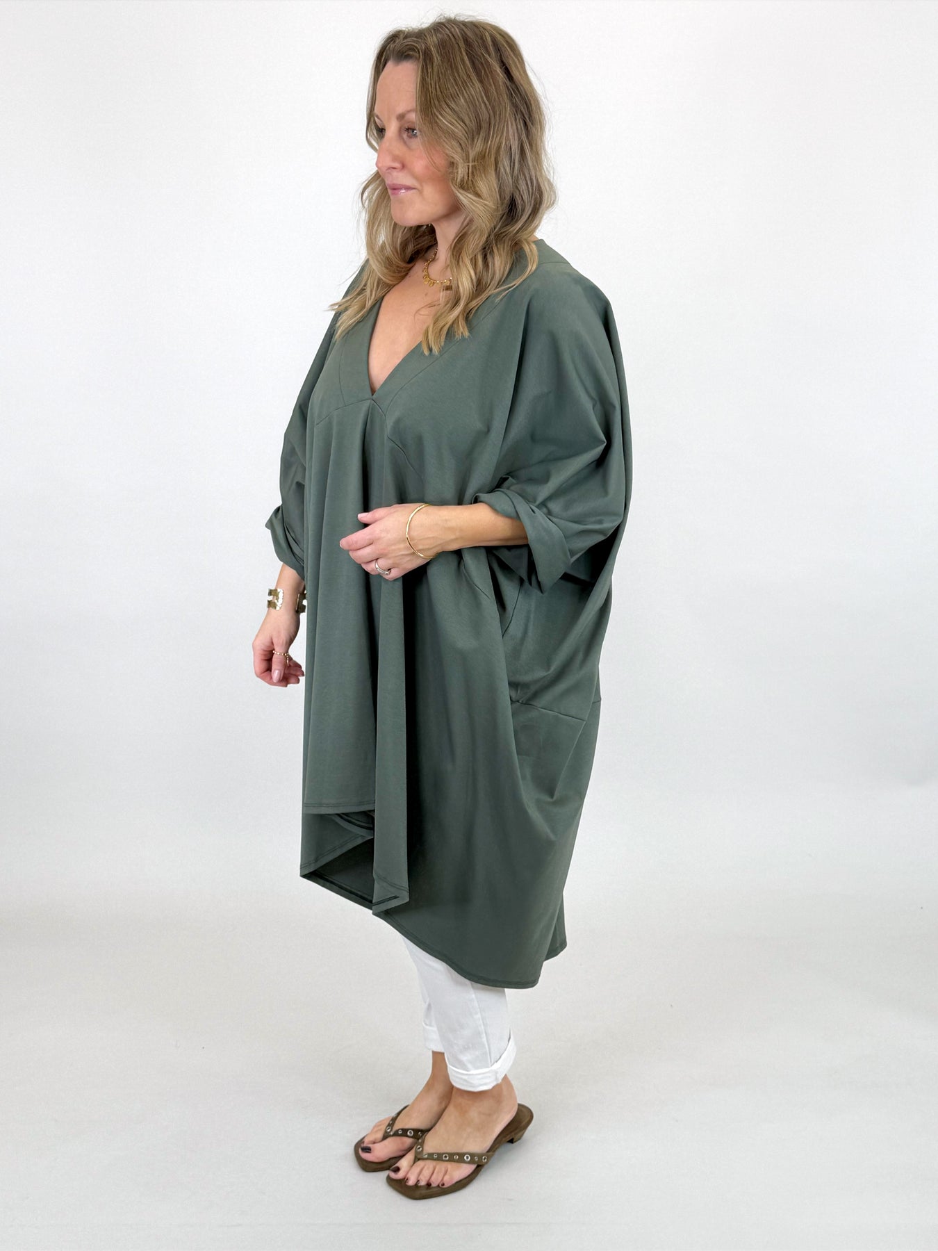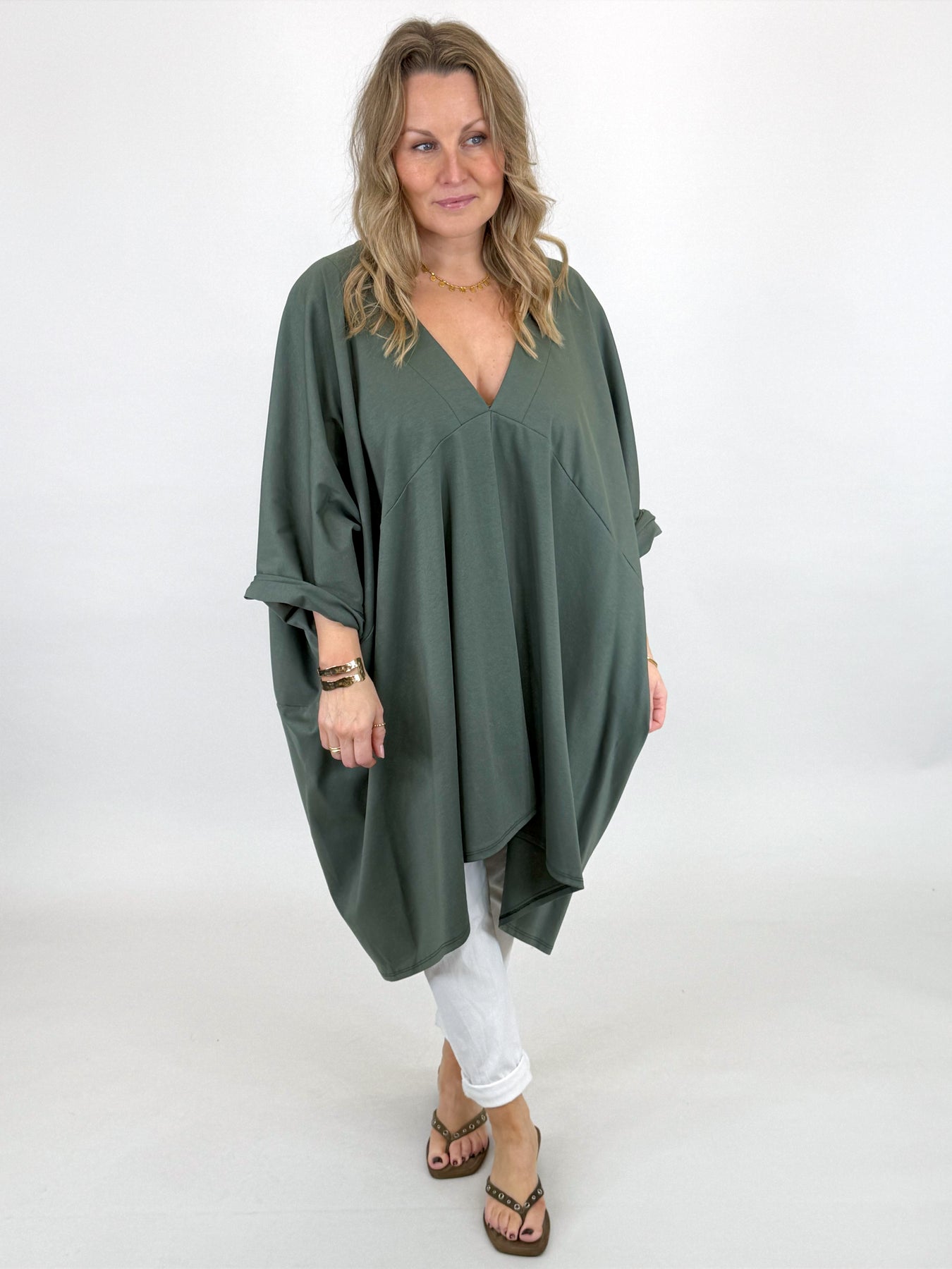 Made in Italy Cara V-Neck Tunic | Khaki. 6584y