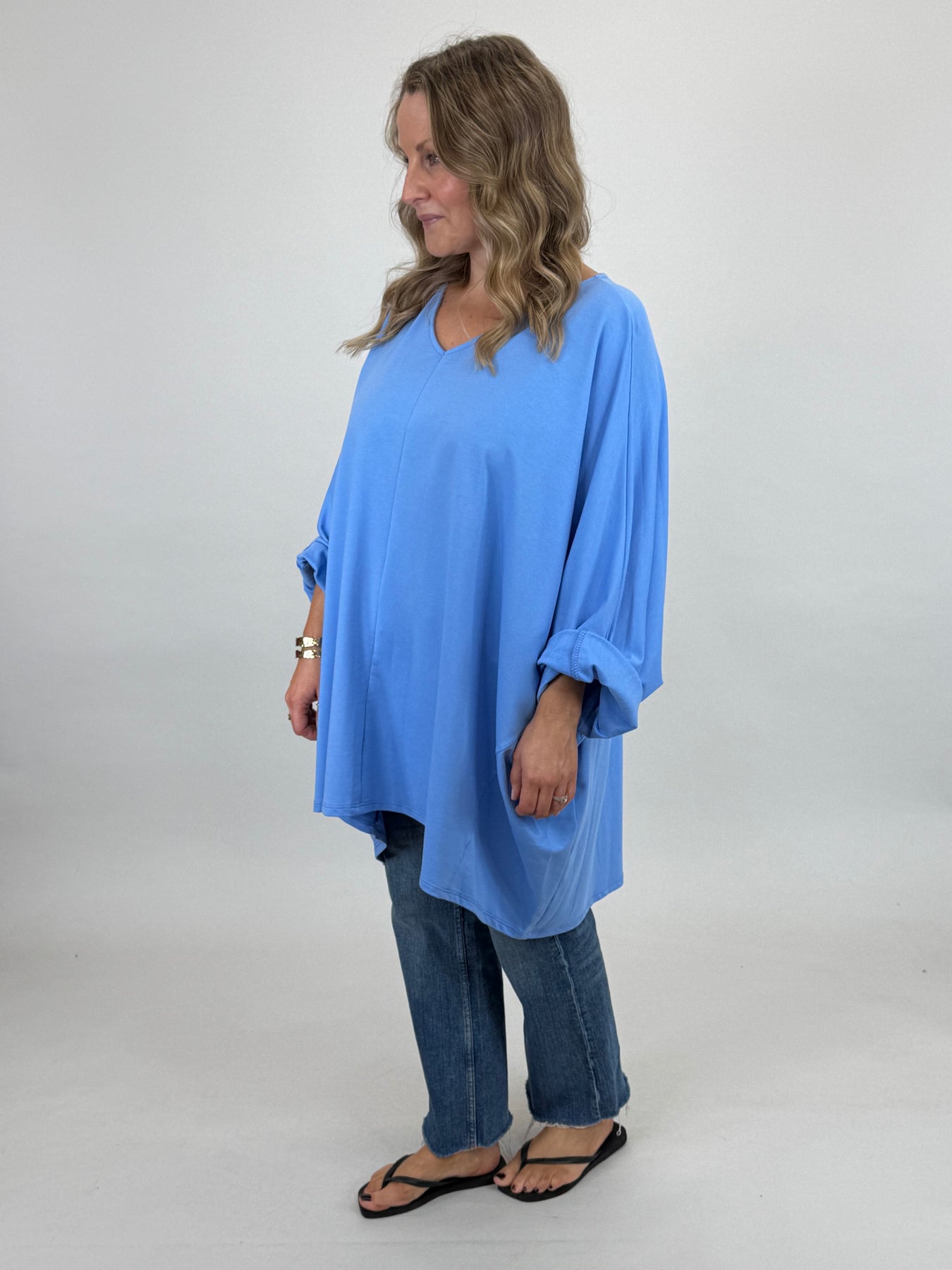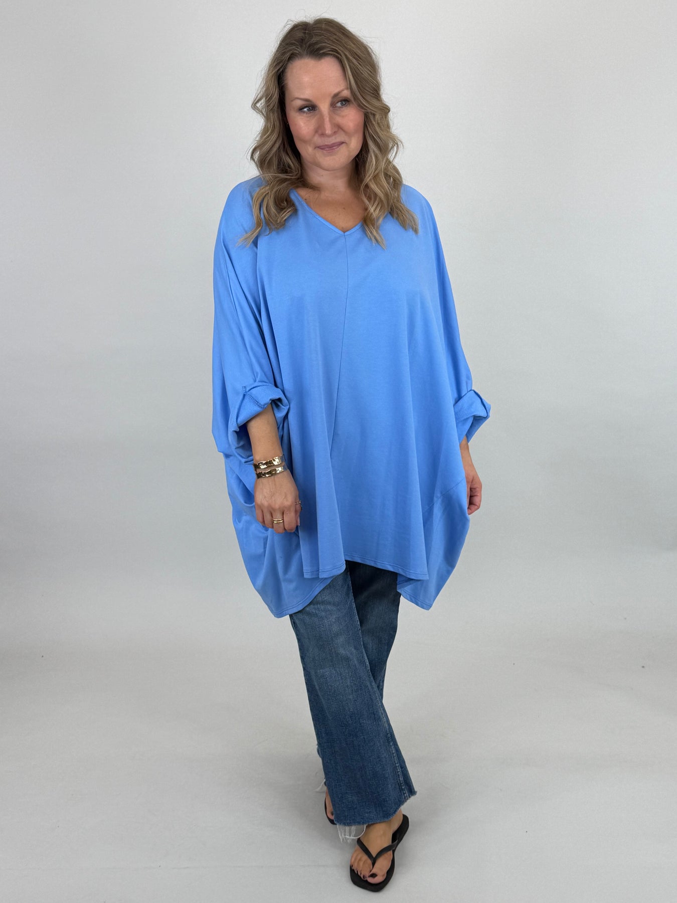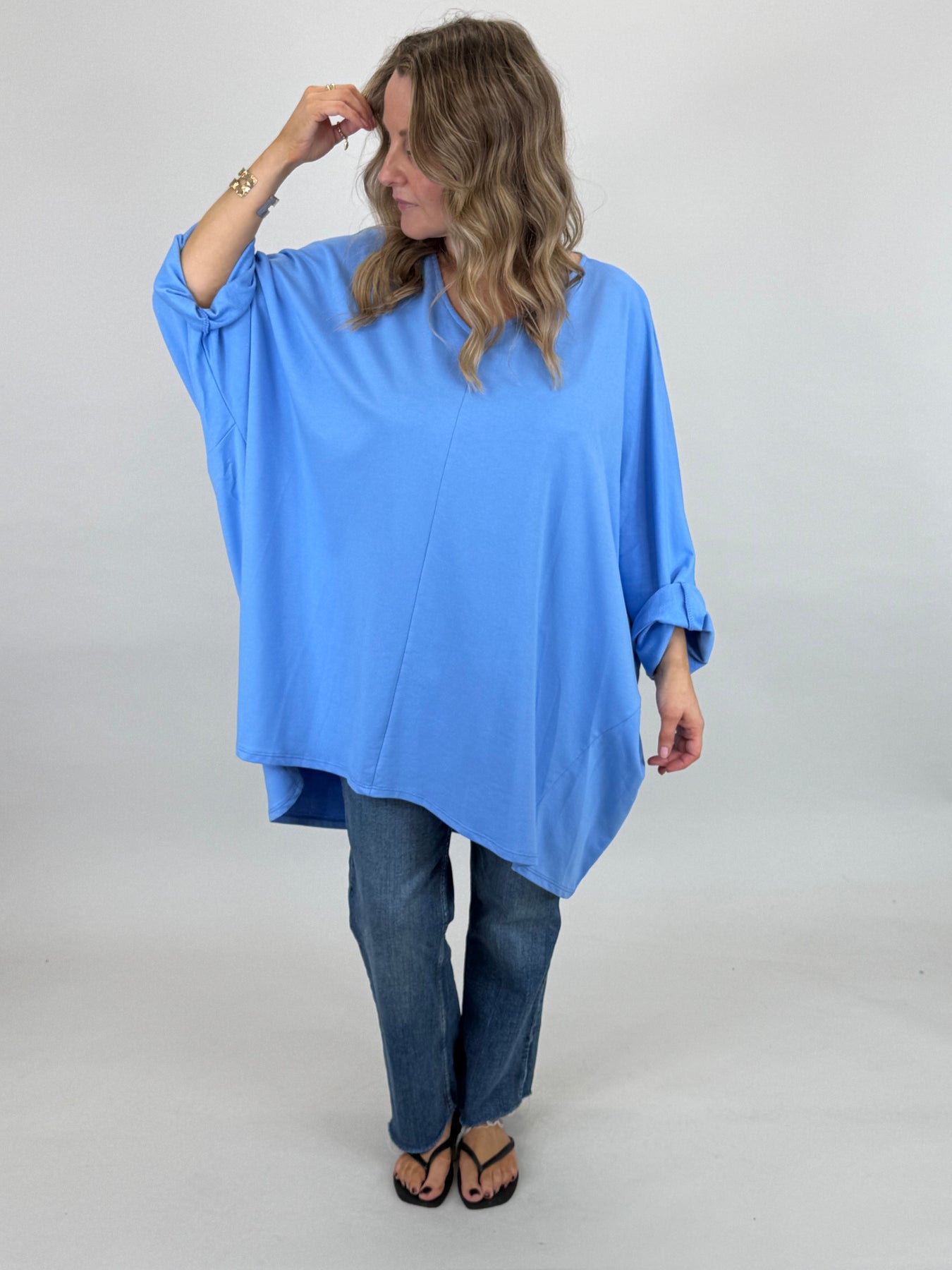 Our beautiful Lagenlook Tora Cotton Top, Oversized and a v- neck, thats the dream. A classic style for Lagenlook Clothing. Comfortable to wear with leggings or Milly trousers.