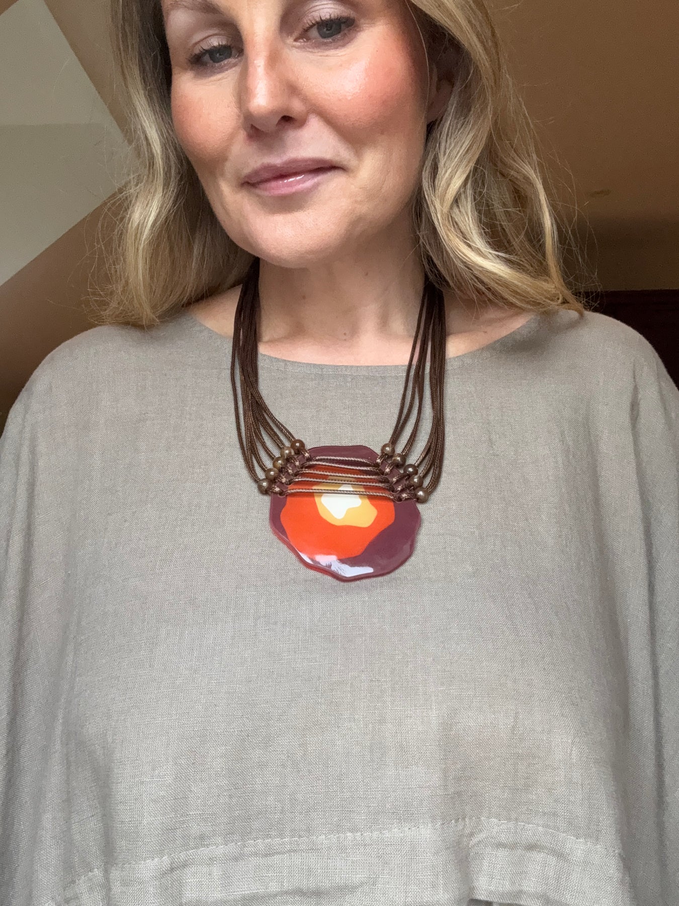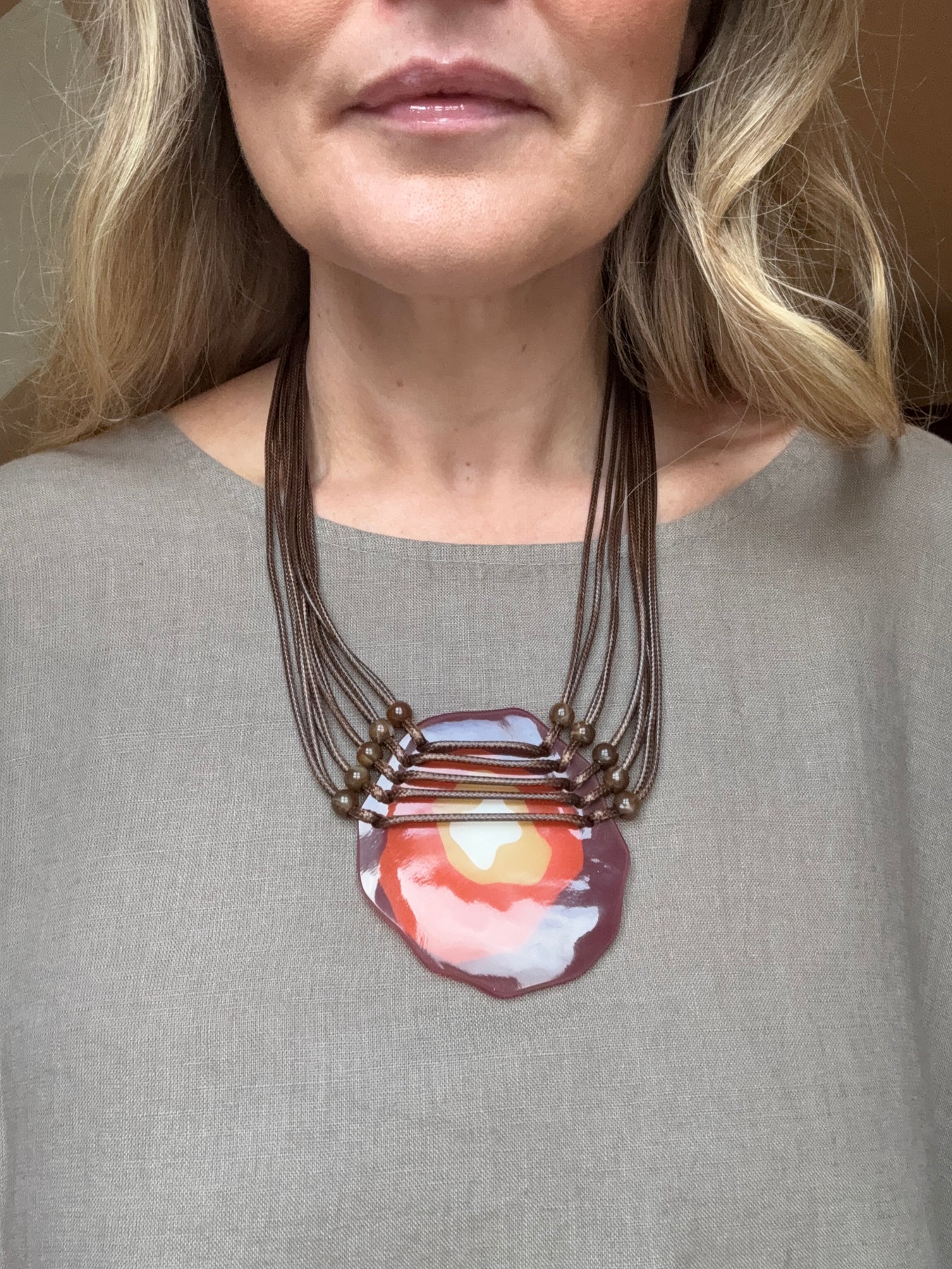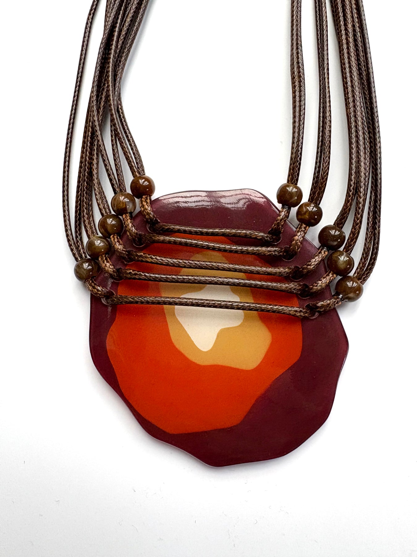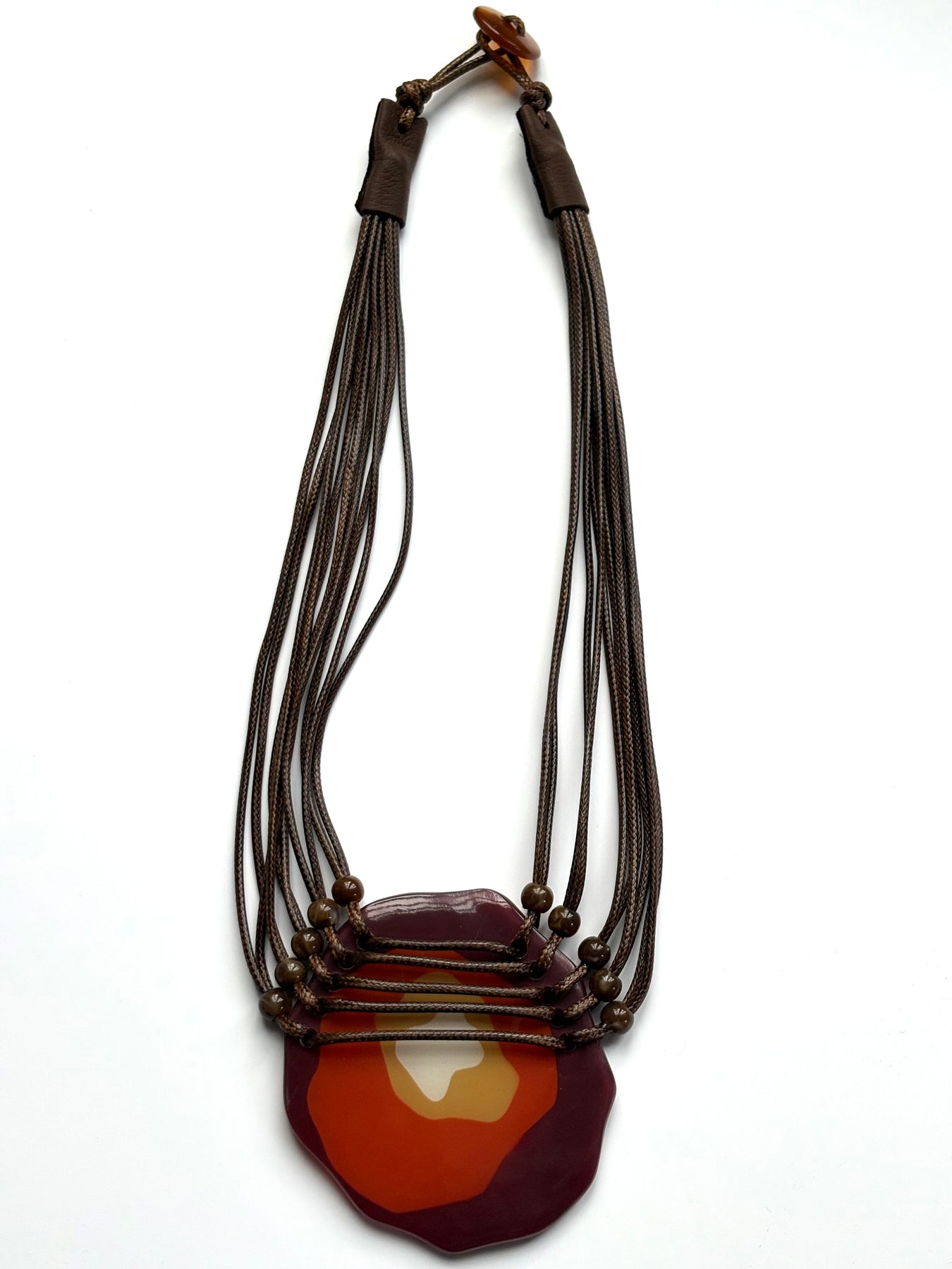 Wax multi cord, resin pendant with muted colours of brown and orange
