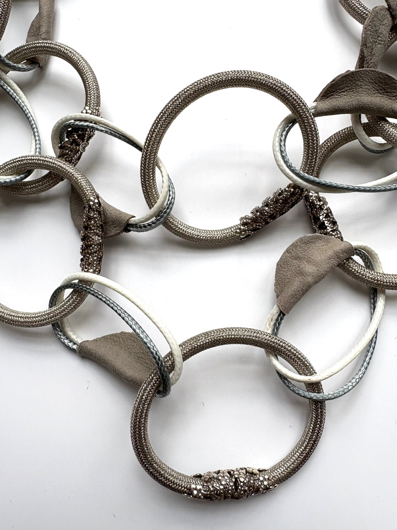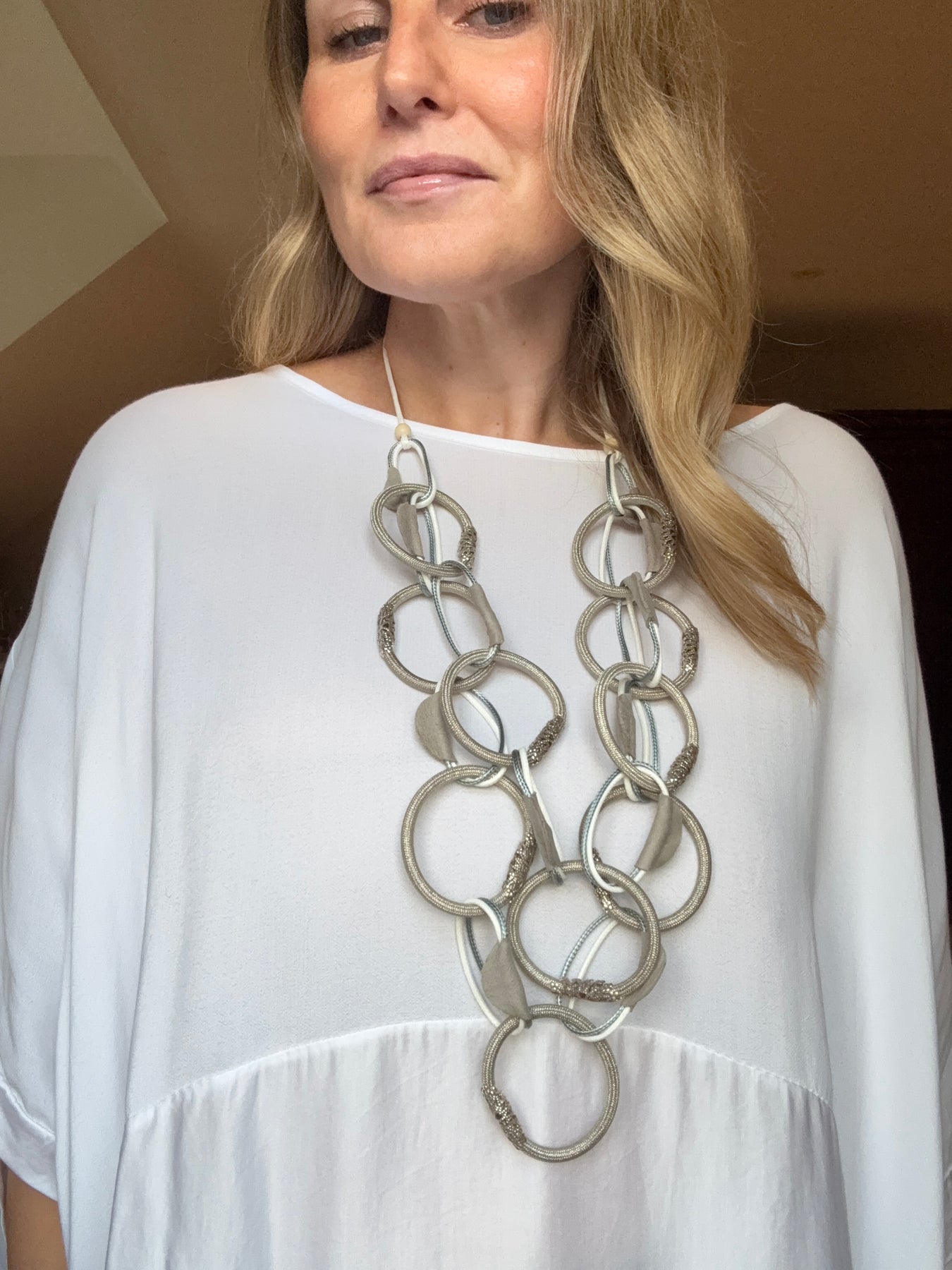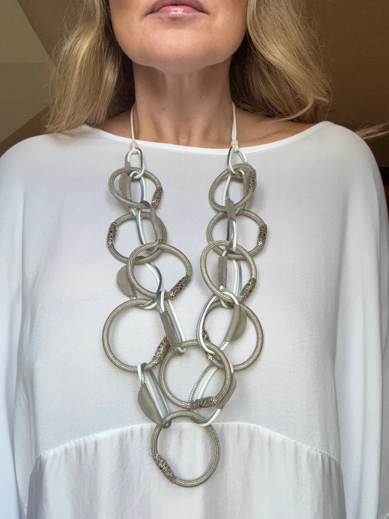 Wax cord, Statement necklace with Cream & cool grey tones beads, looks amazing with white linen.