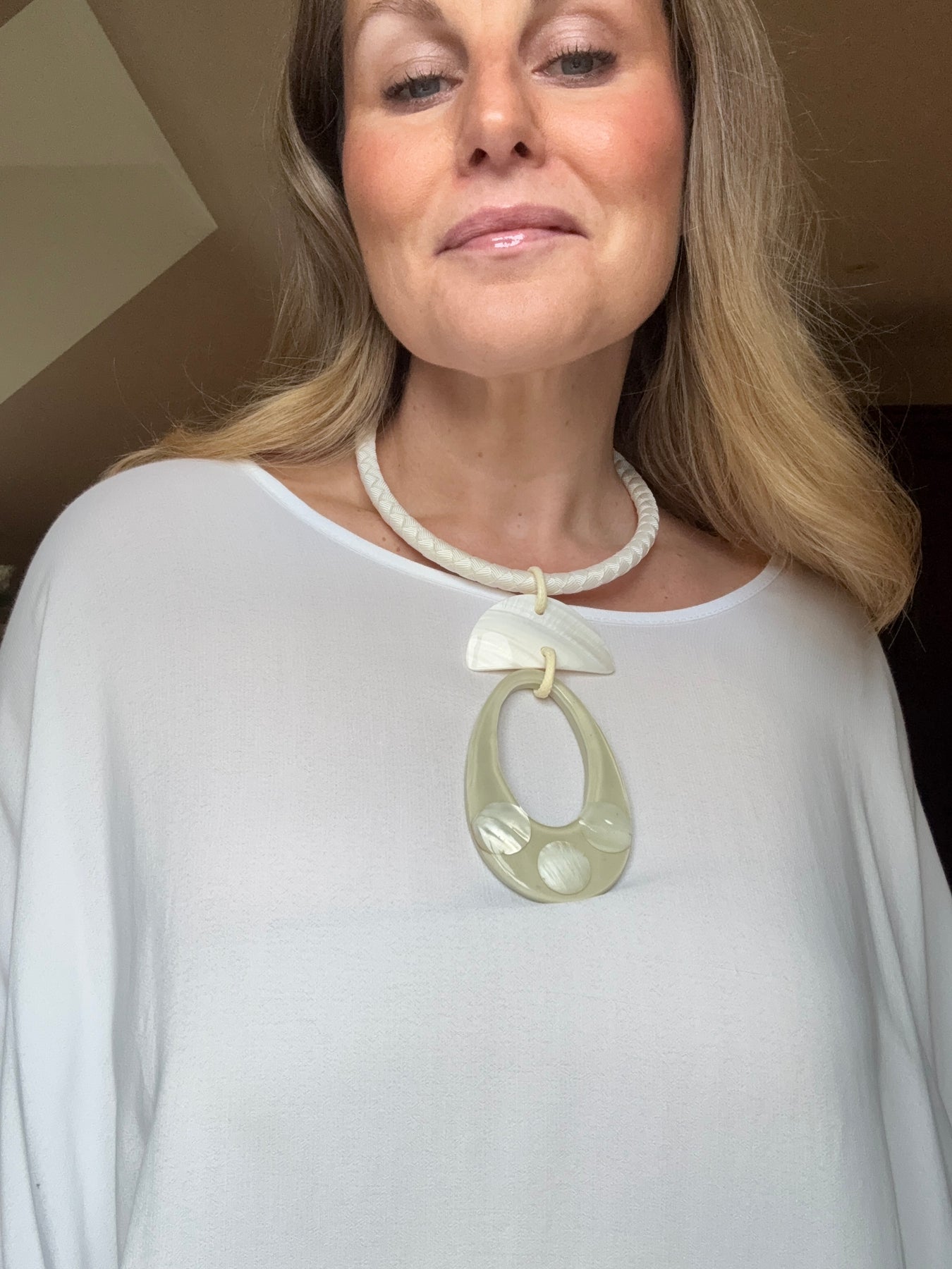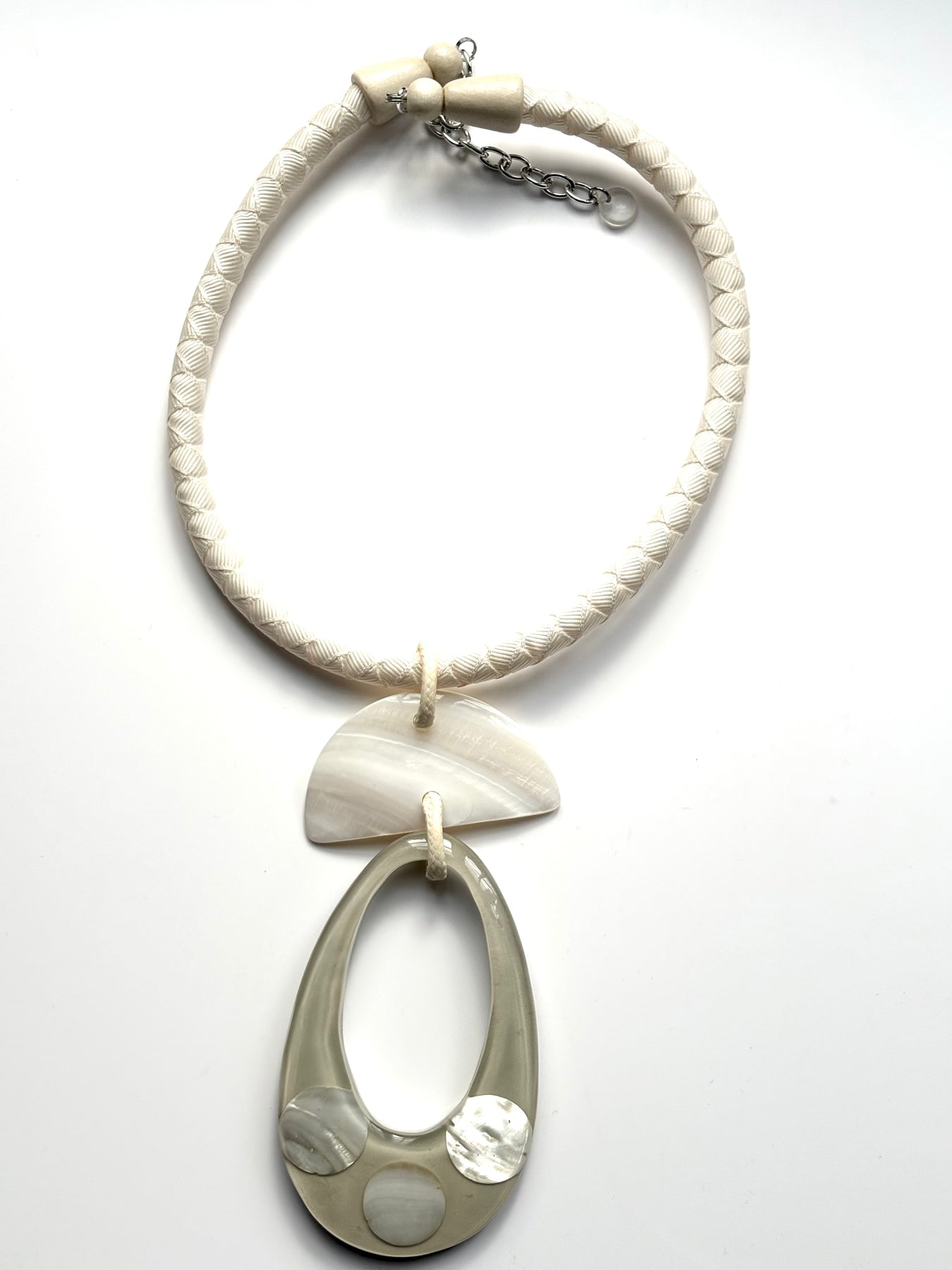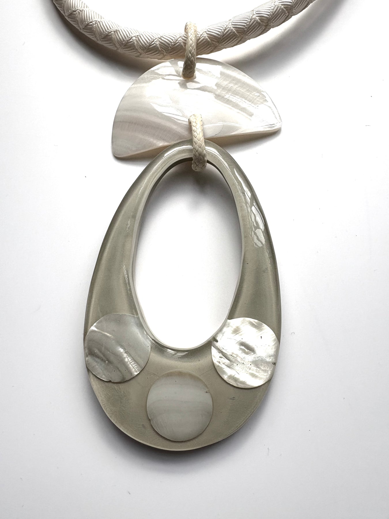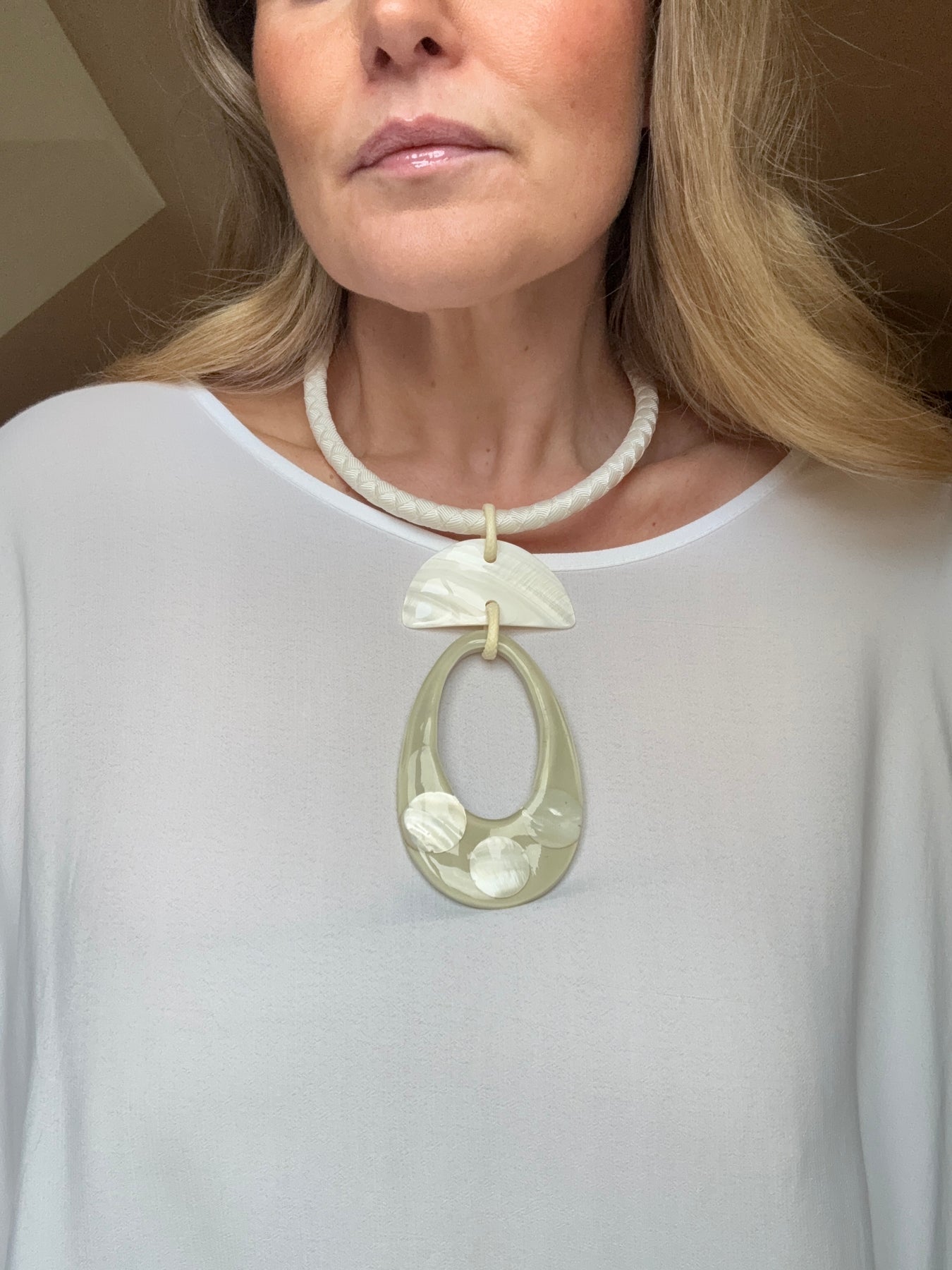 Wax cord, Statement necklace with Ivory Cream resin pendant, looks amazing with white linen.