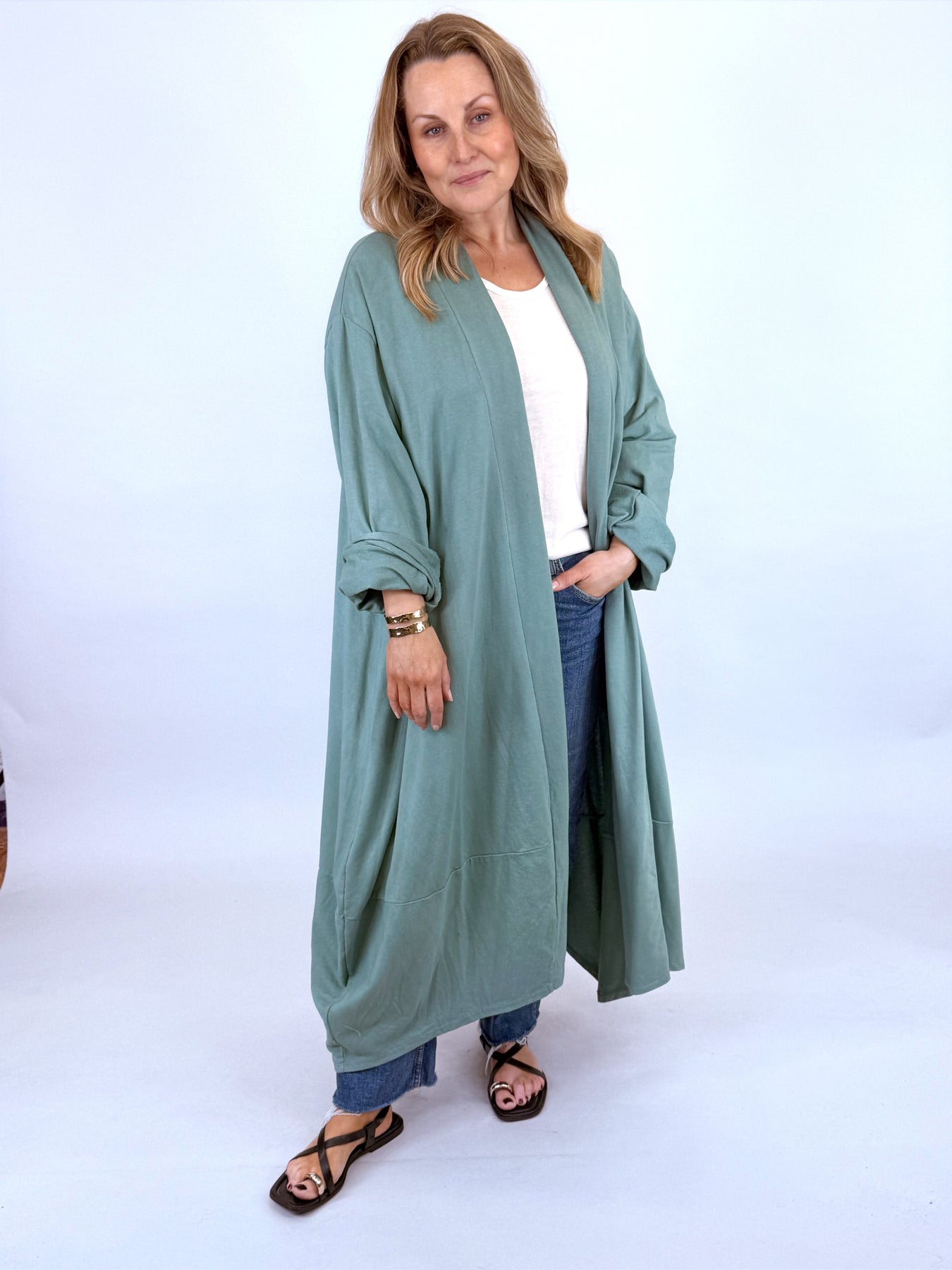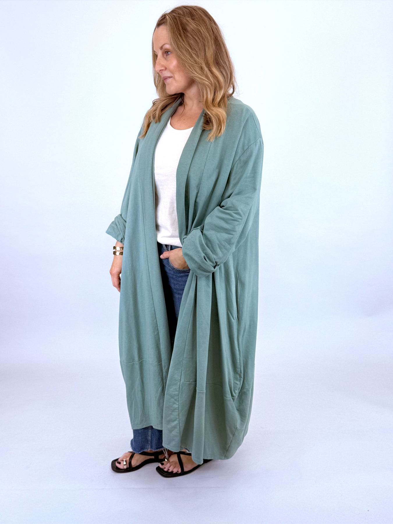 Made in Italy Alice Cocoon Duster Cardigan | Coastal Green