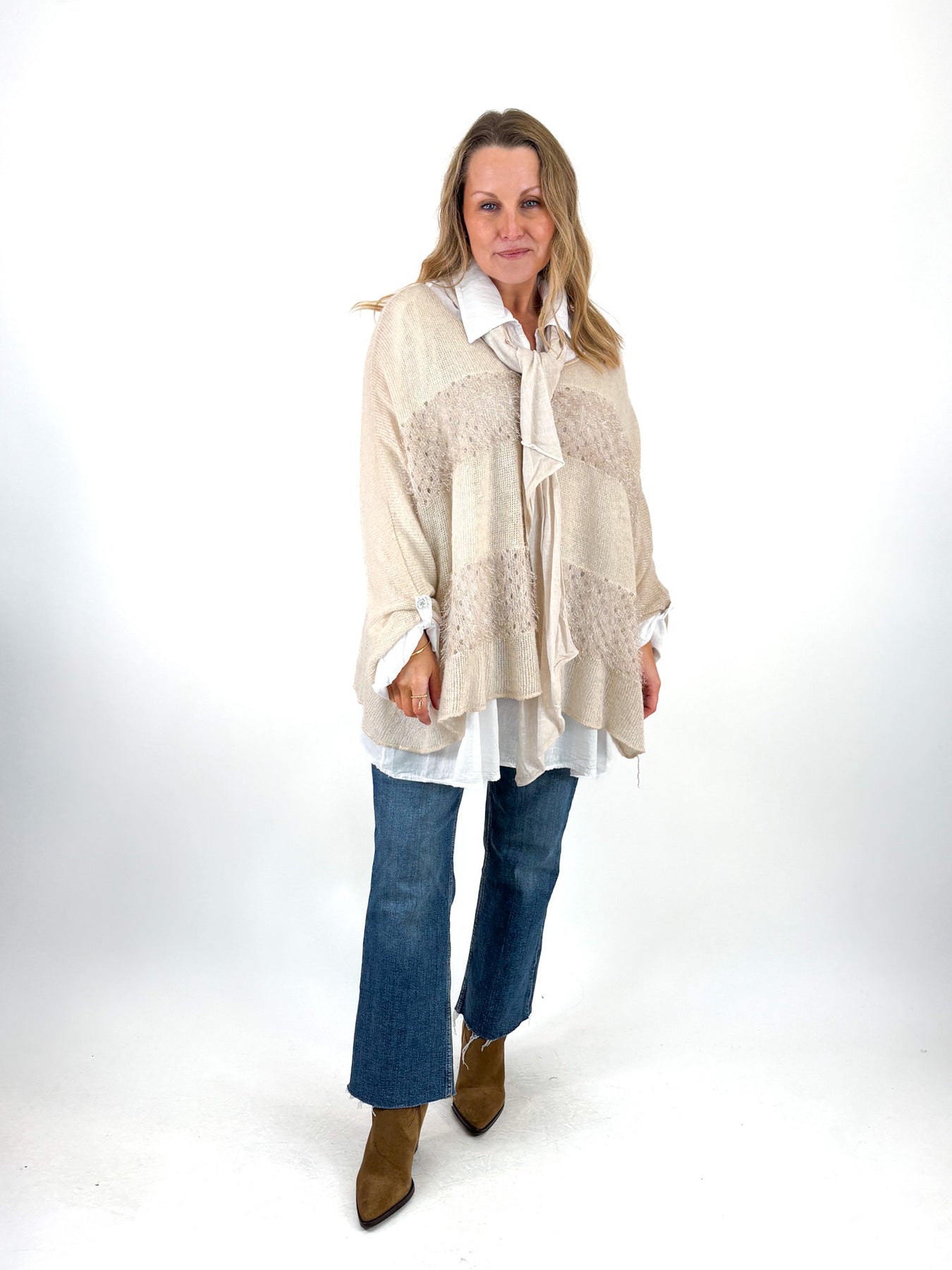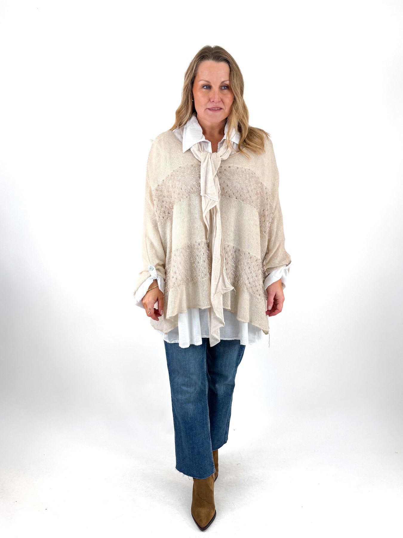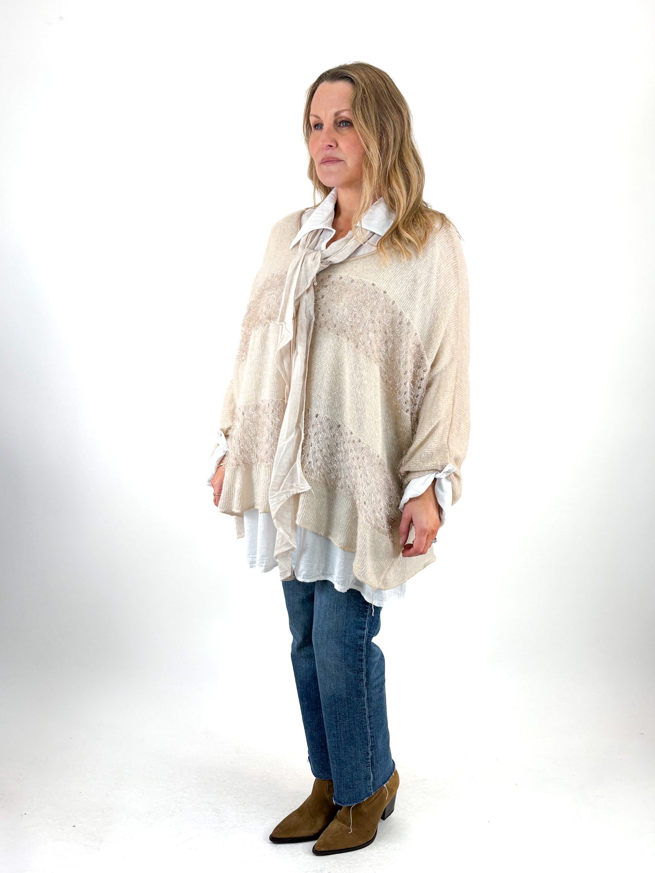 - Made in Italy Lagenlook 3-Piece Shirt Top in Cream. 13275