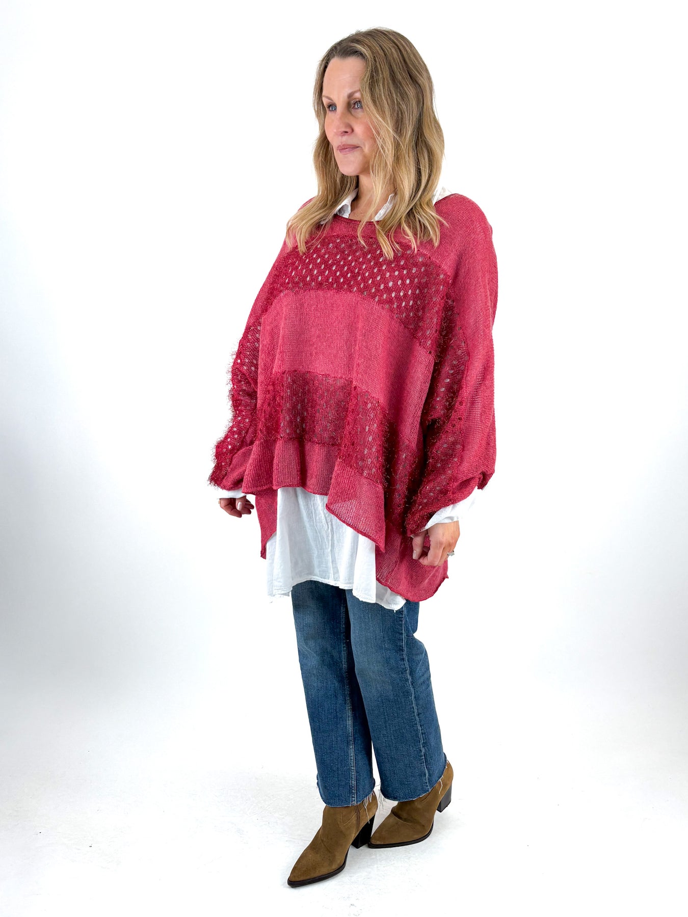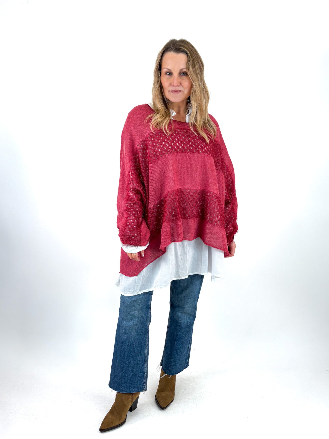 - Made in Italy Lagenlook 3-Piece Shirt Top in Wine. 13275