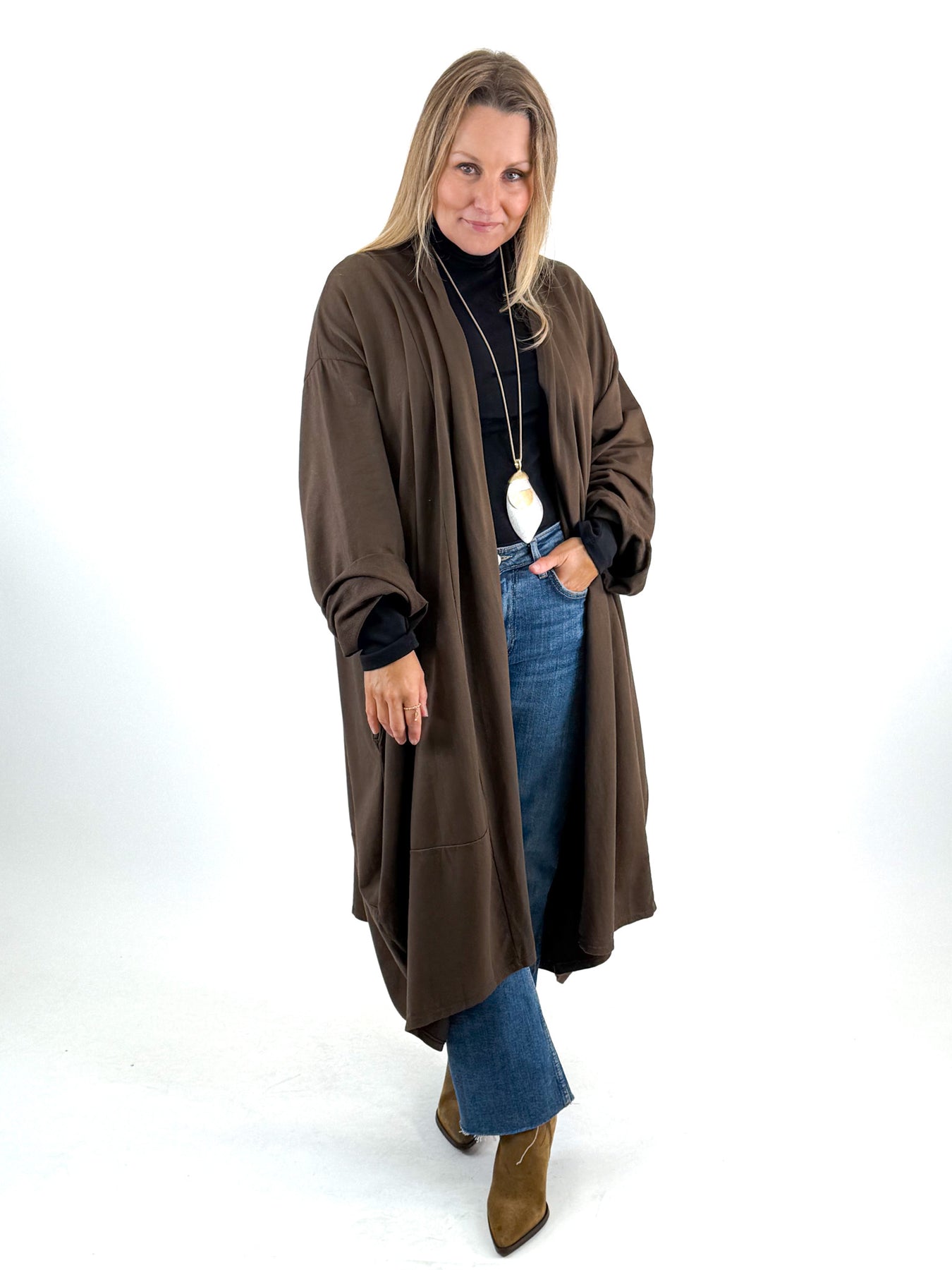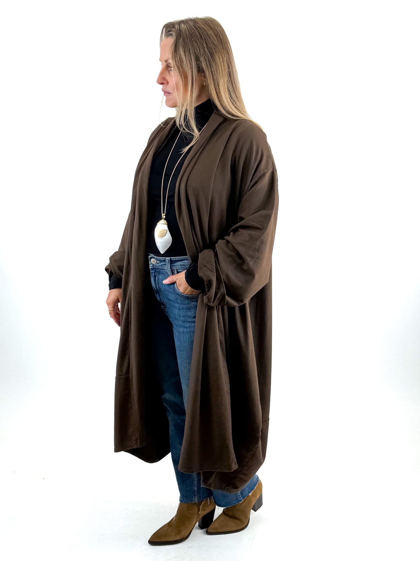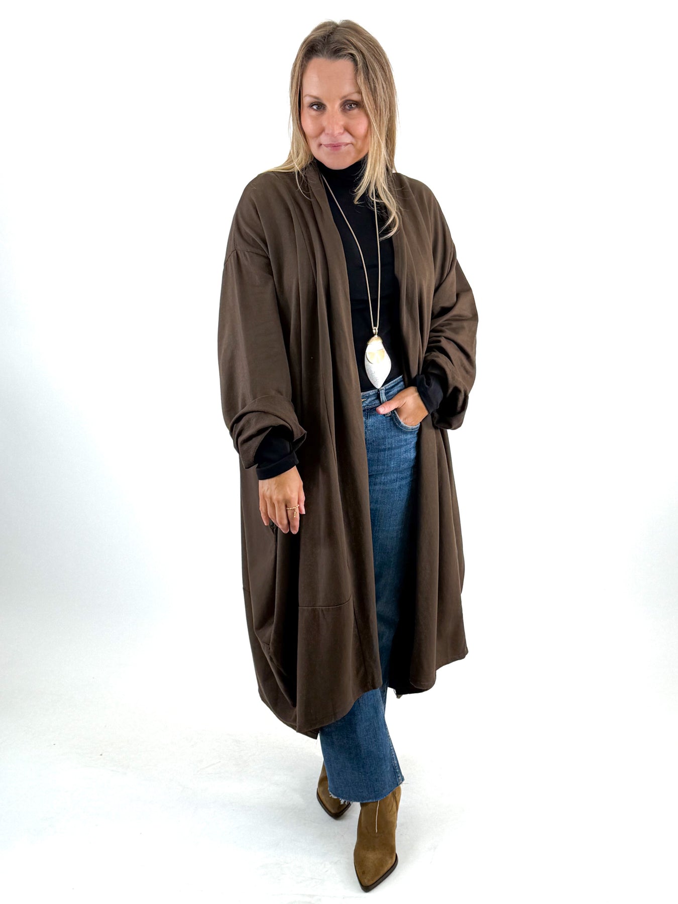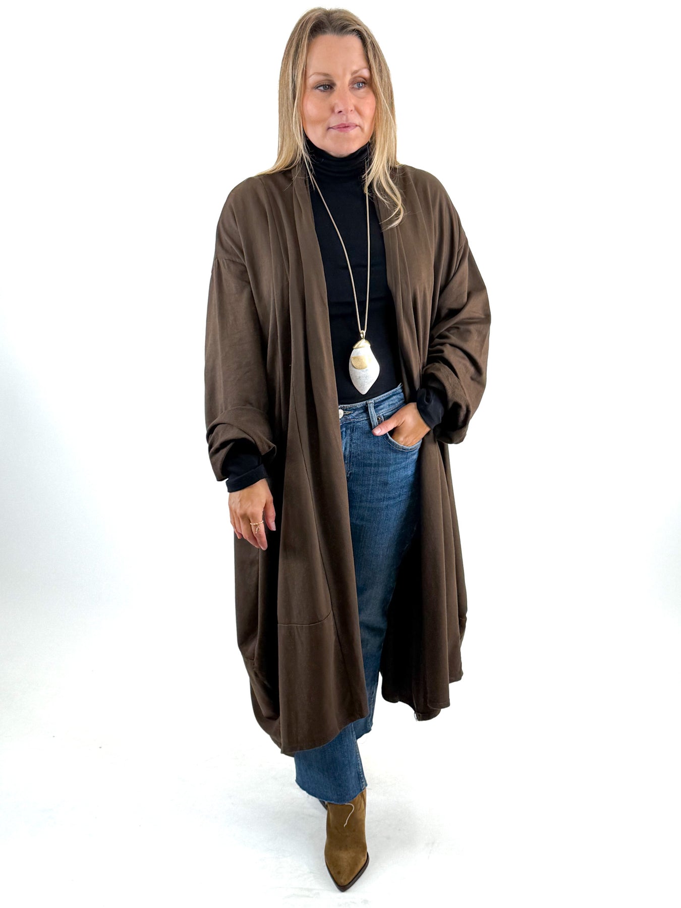 - Made in Italy Lagenlook Alice Cocoon Duster Cardigan in Chocolate. 51720