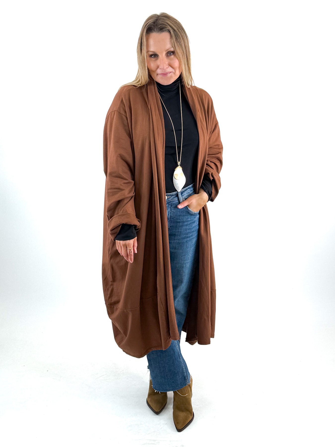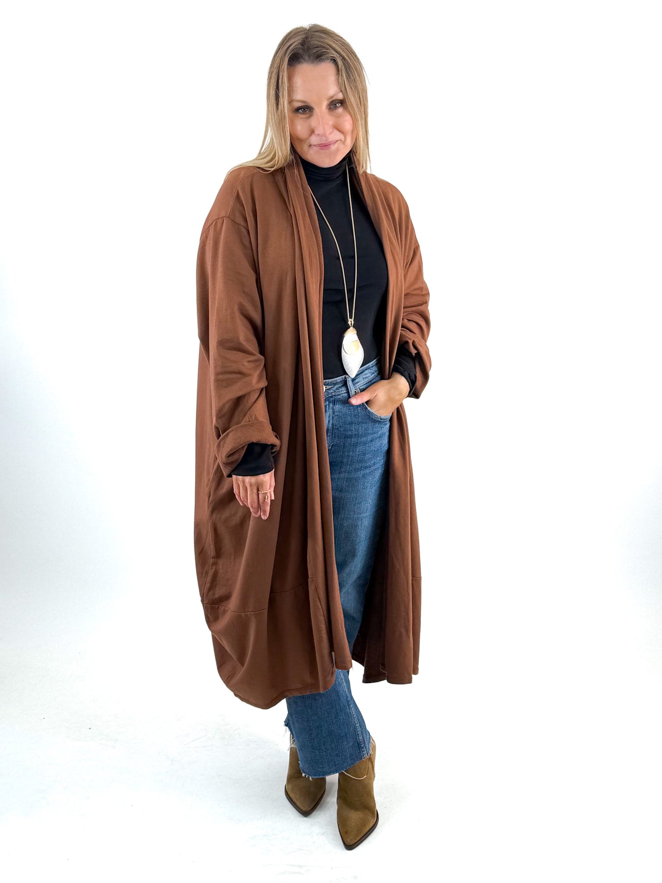 - Made in Italy Lagenlook Alice Cocoon Duster Cardigan in Cinnamon Stick. 51720