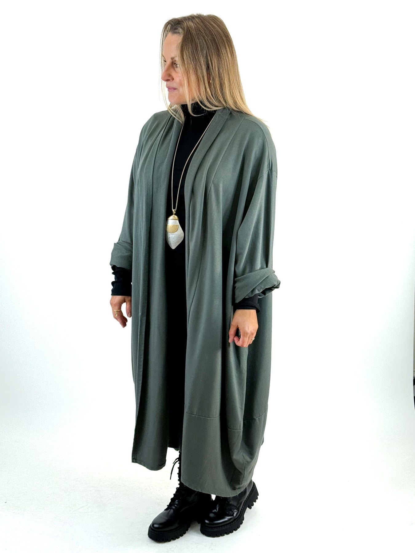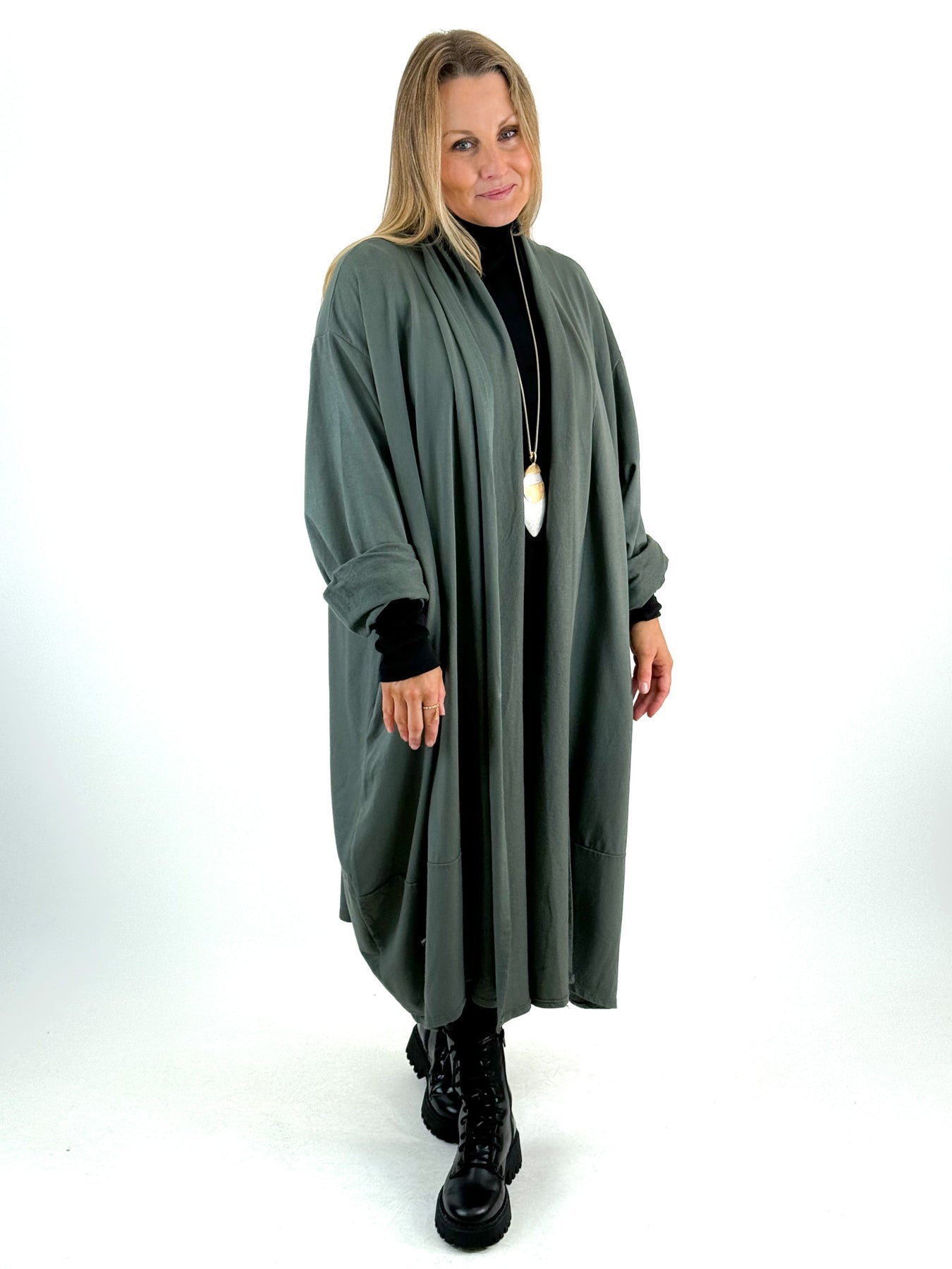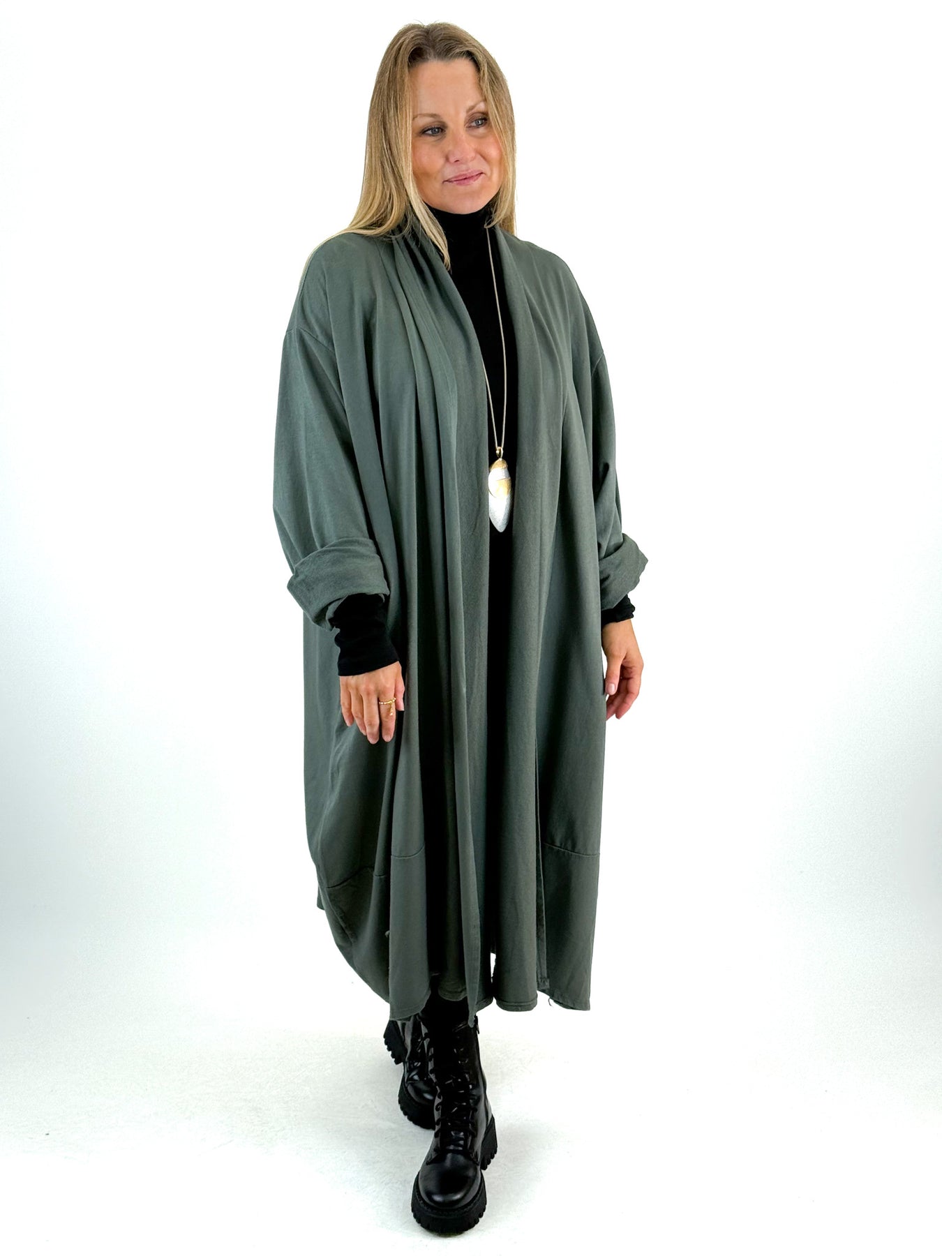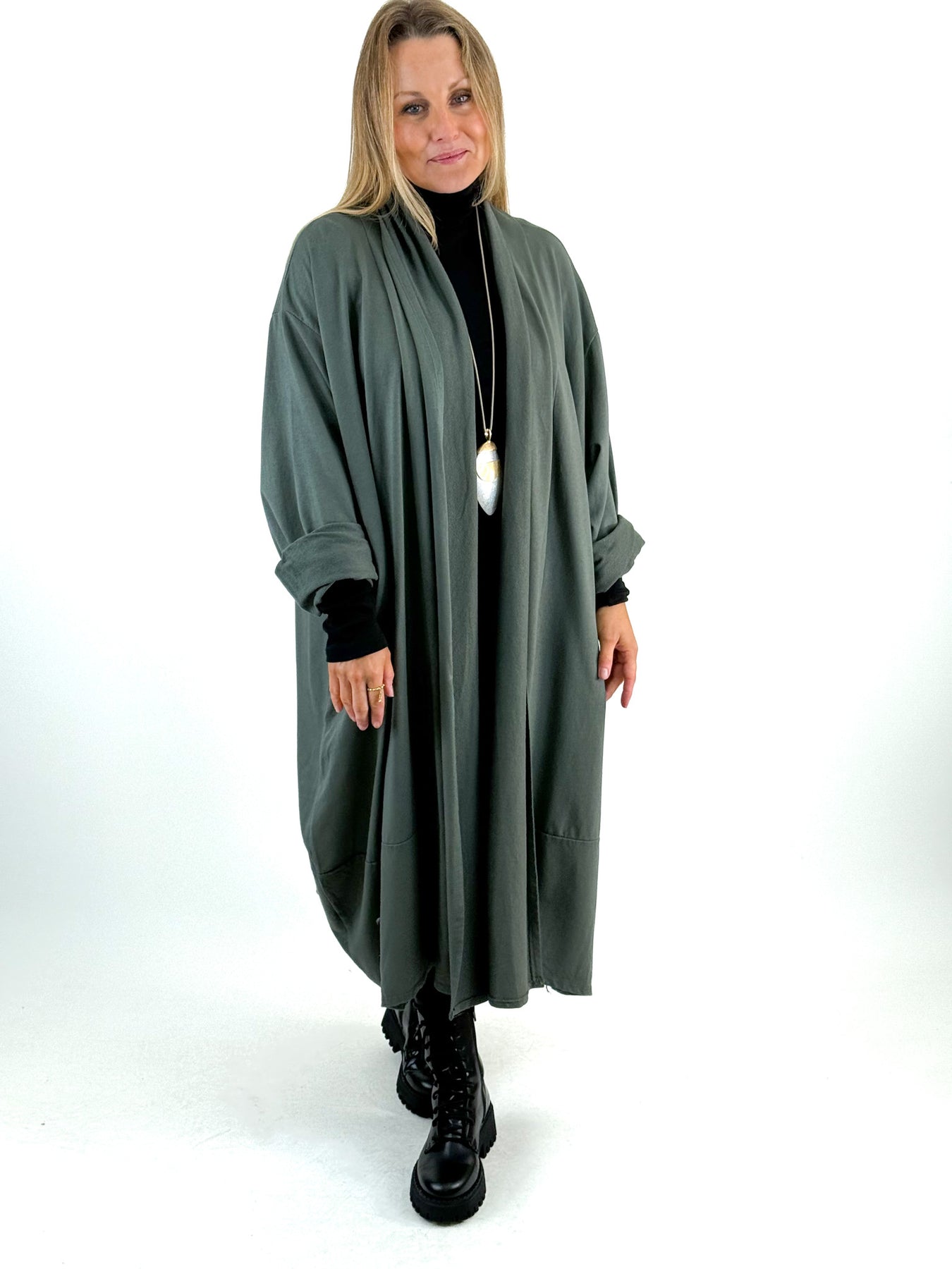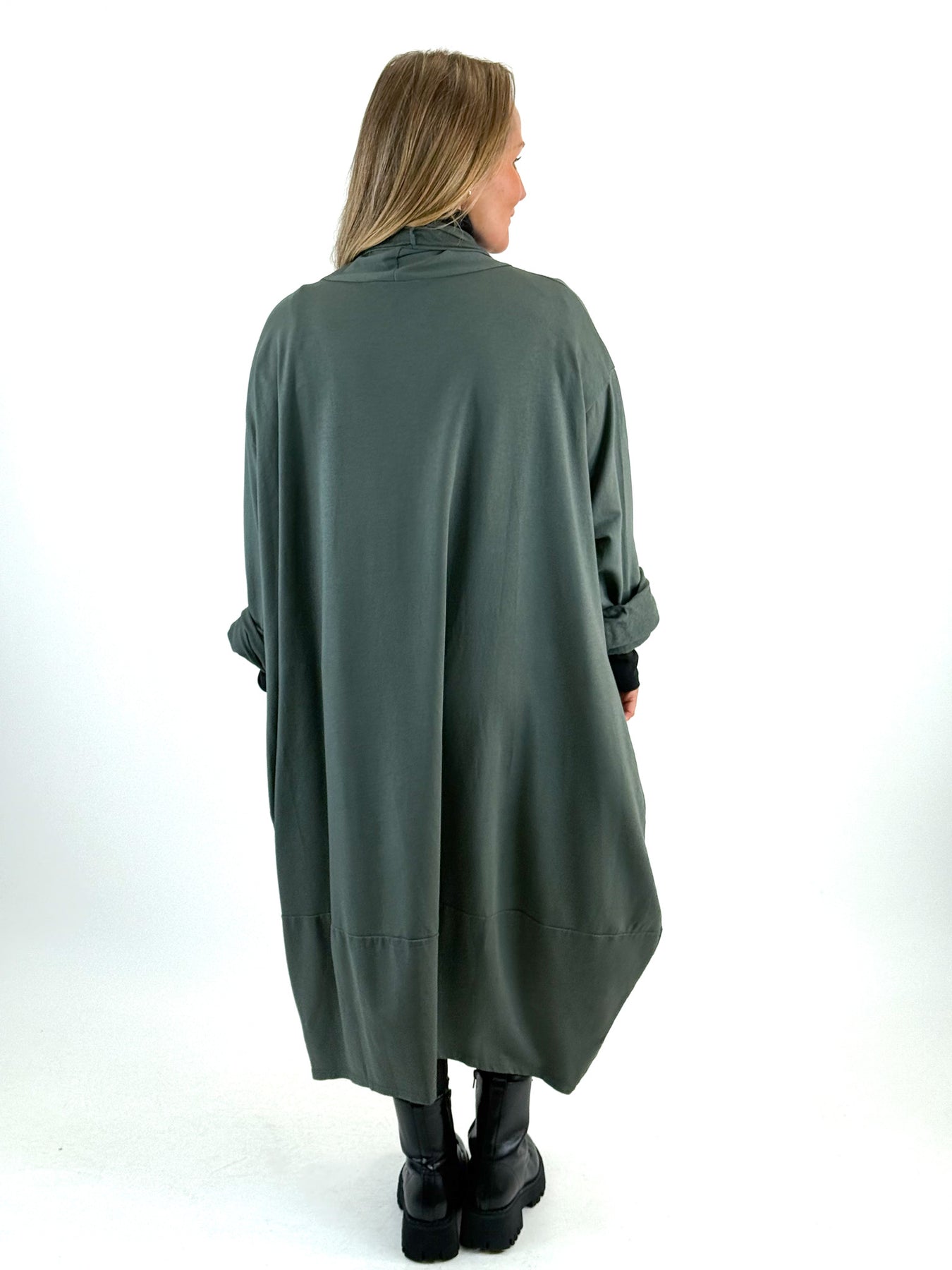 - Made in Italy Lagenlook Alice Cocoon Duster Cardigan in Forest. 51720