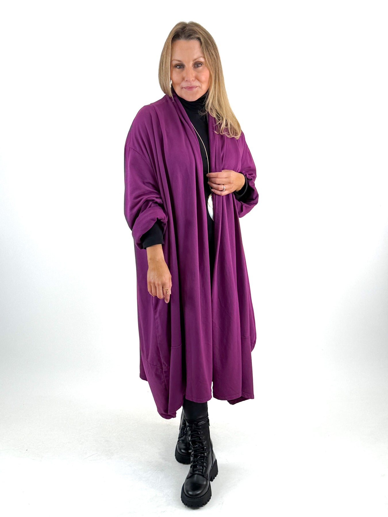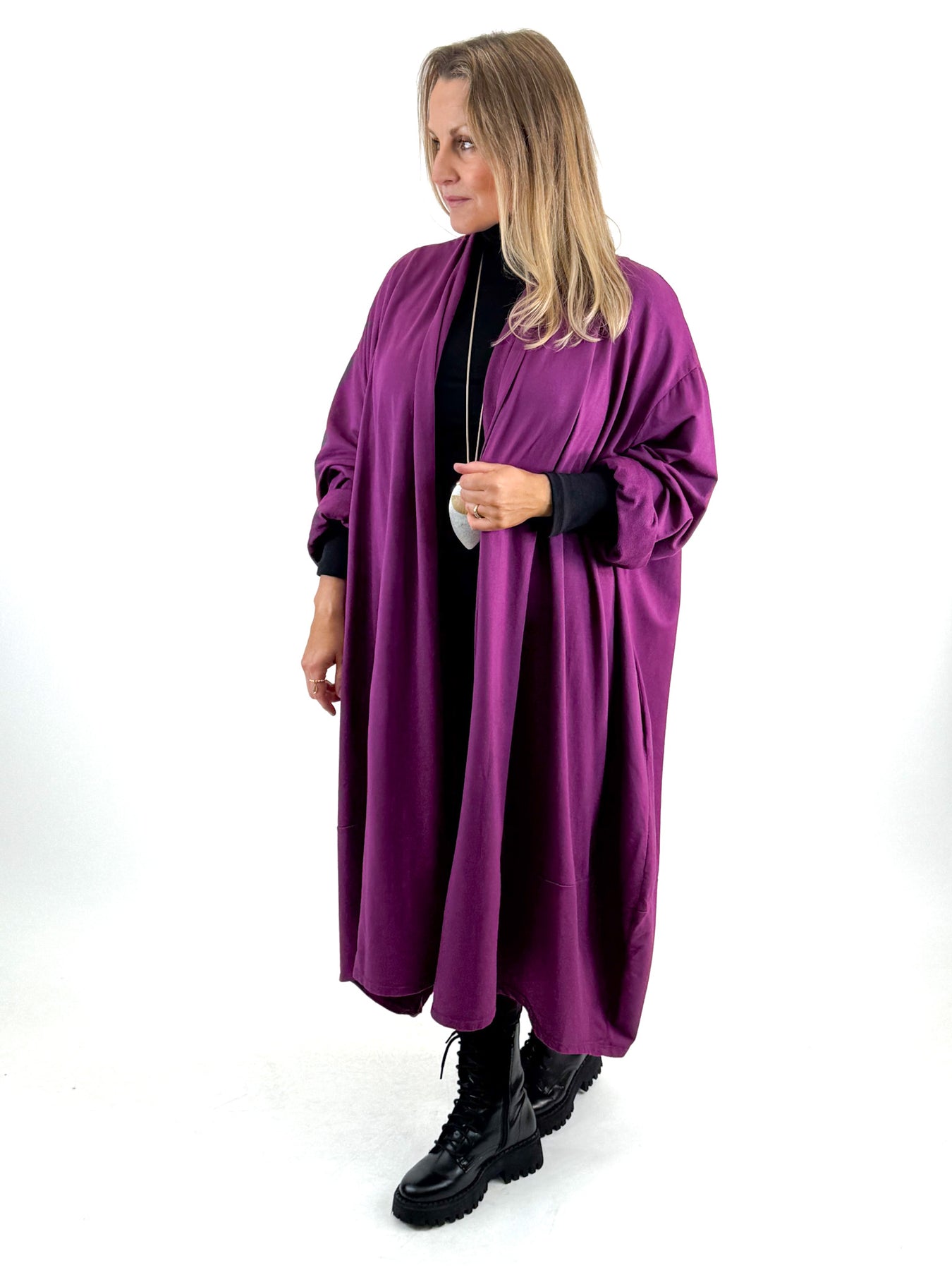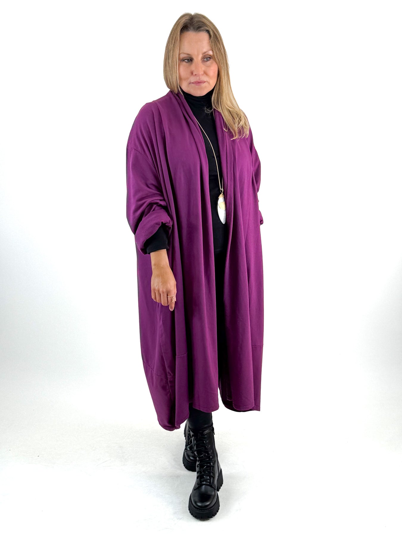 - Made in Italy Lagenlook Alice Cocoon Duster Cardigan in Grape. 51720