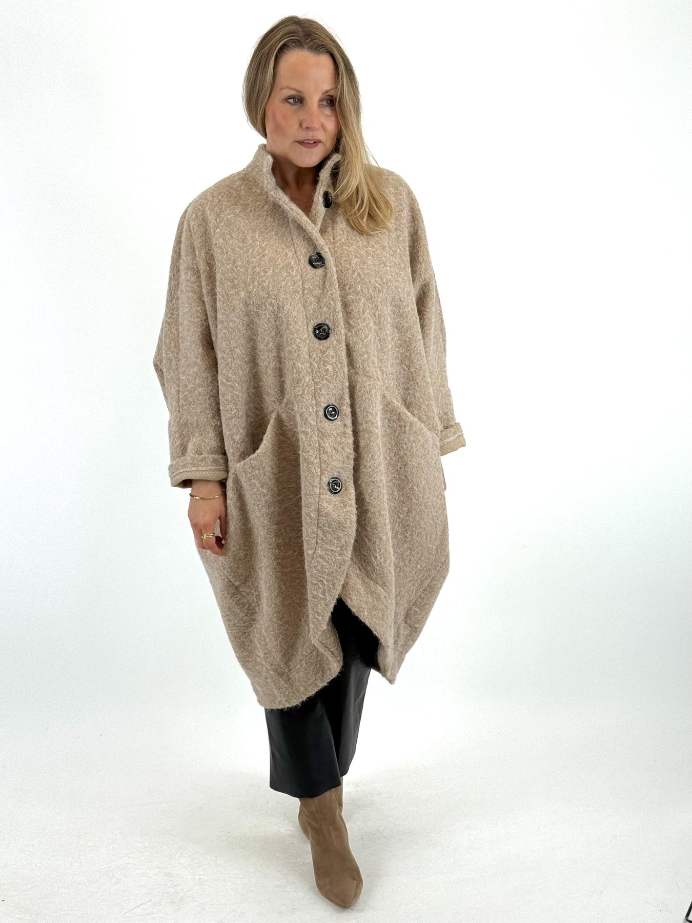 - Made in Italy Lagenlook Cocoon Coat in Camel. code 57631