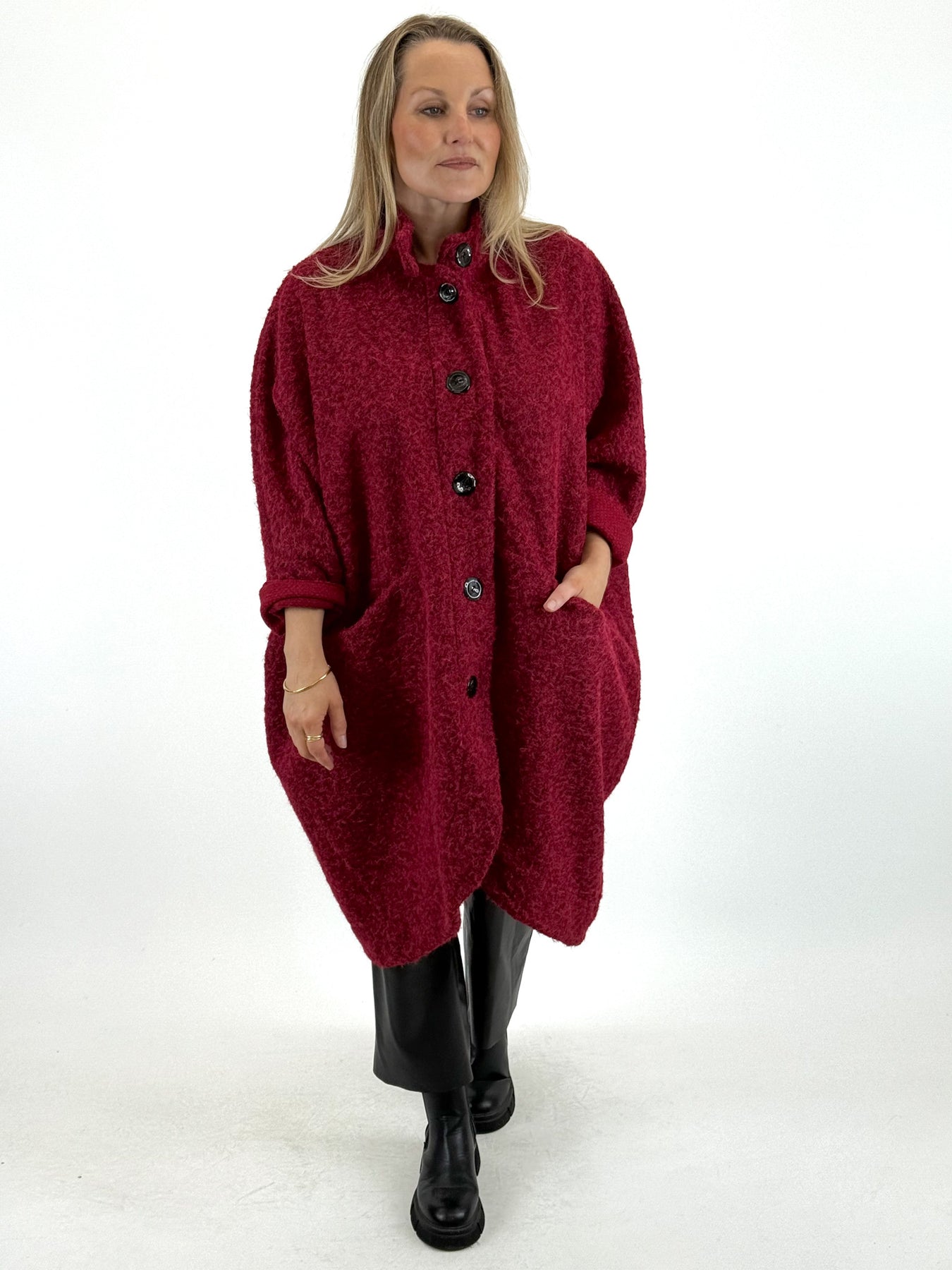 - Made in Italy Lagenlook Cocoon Coat in Cherry. code 57631