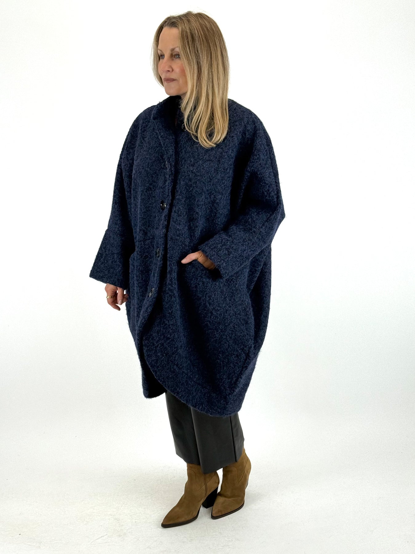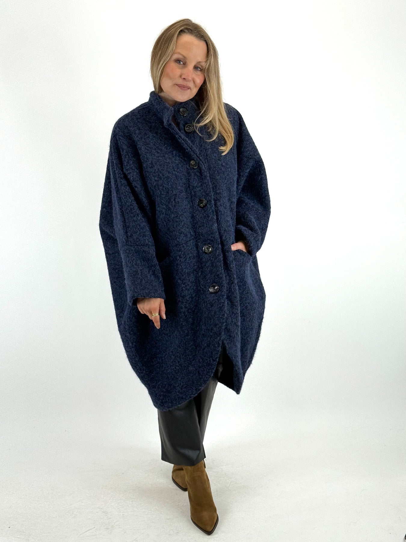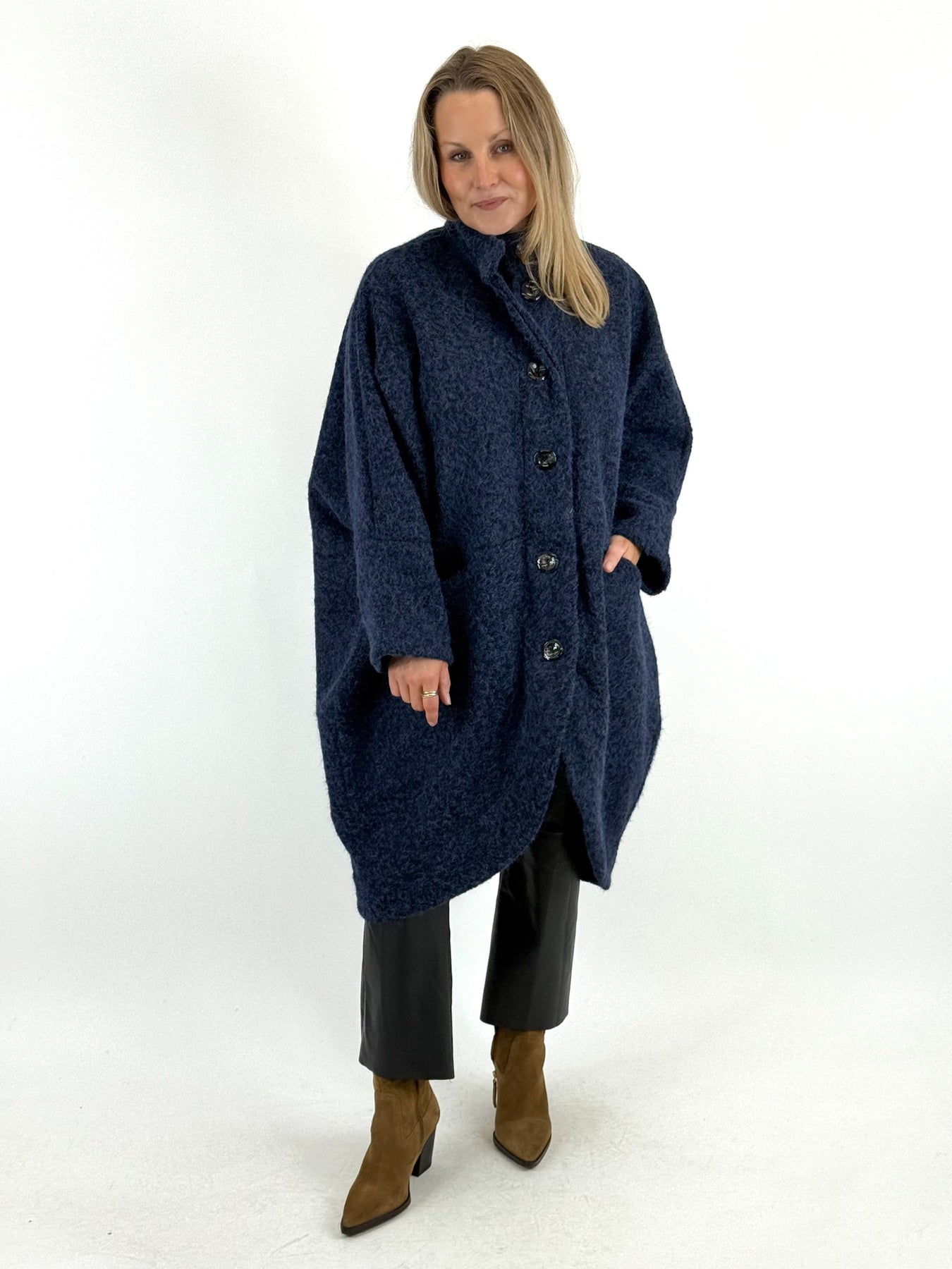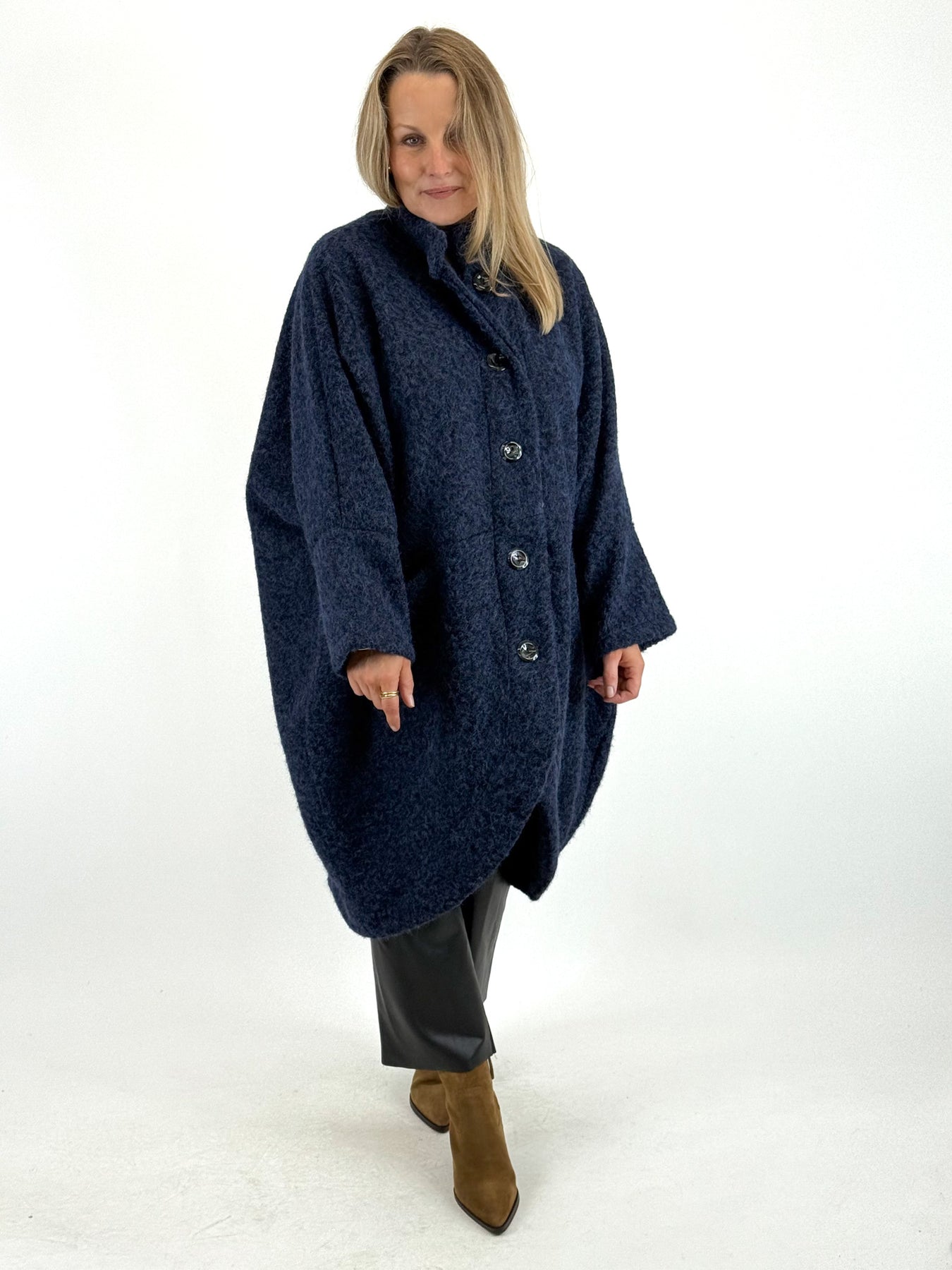 - Made in Italy Lagenlook Cocoon Coat in Navy Blue. code 57631