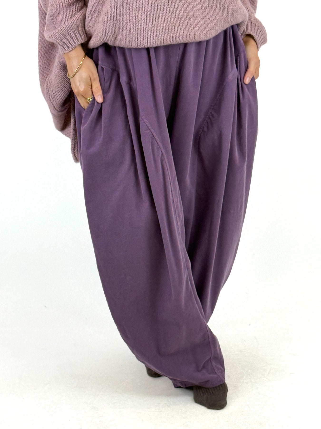 - Made in Italy Lagenlook Corduroy Barrel Cotton Trouser in Heather. code 92029