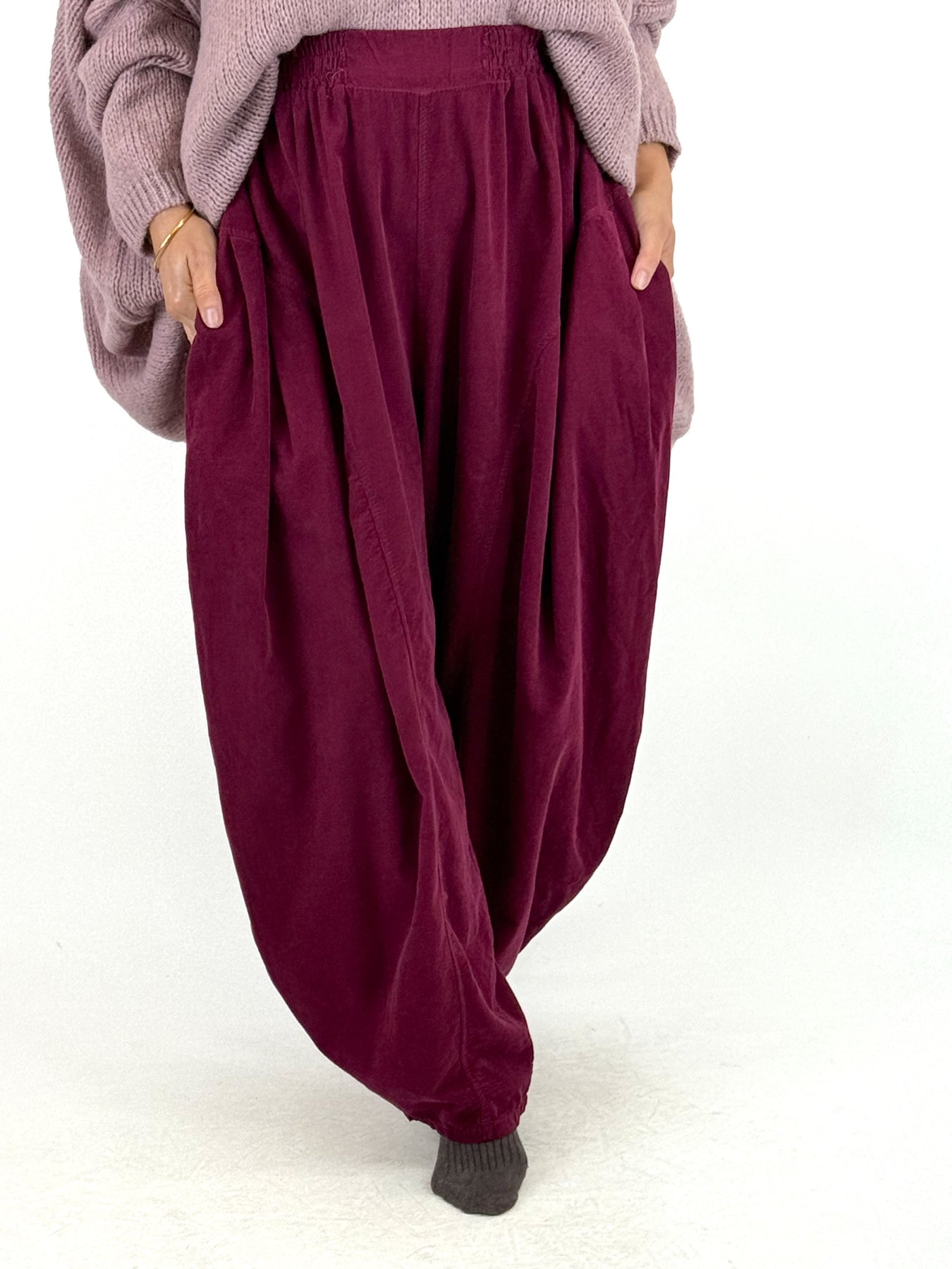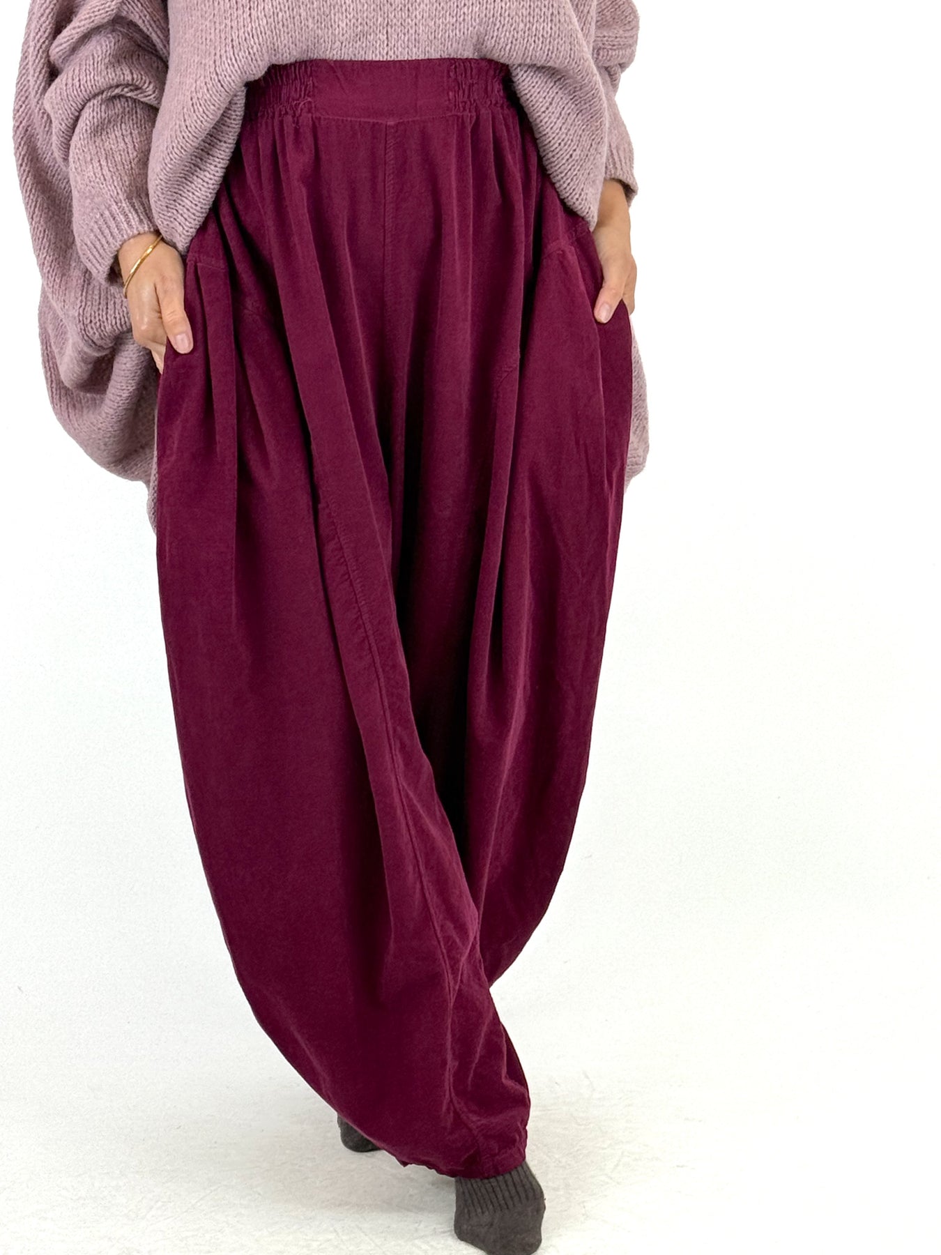 - Made in Italy Lagenlook Corduroy Barrel Cotton Trouser in Wine. code 92029