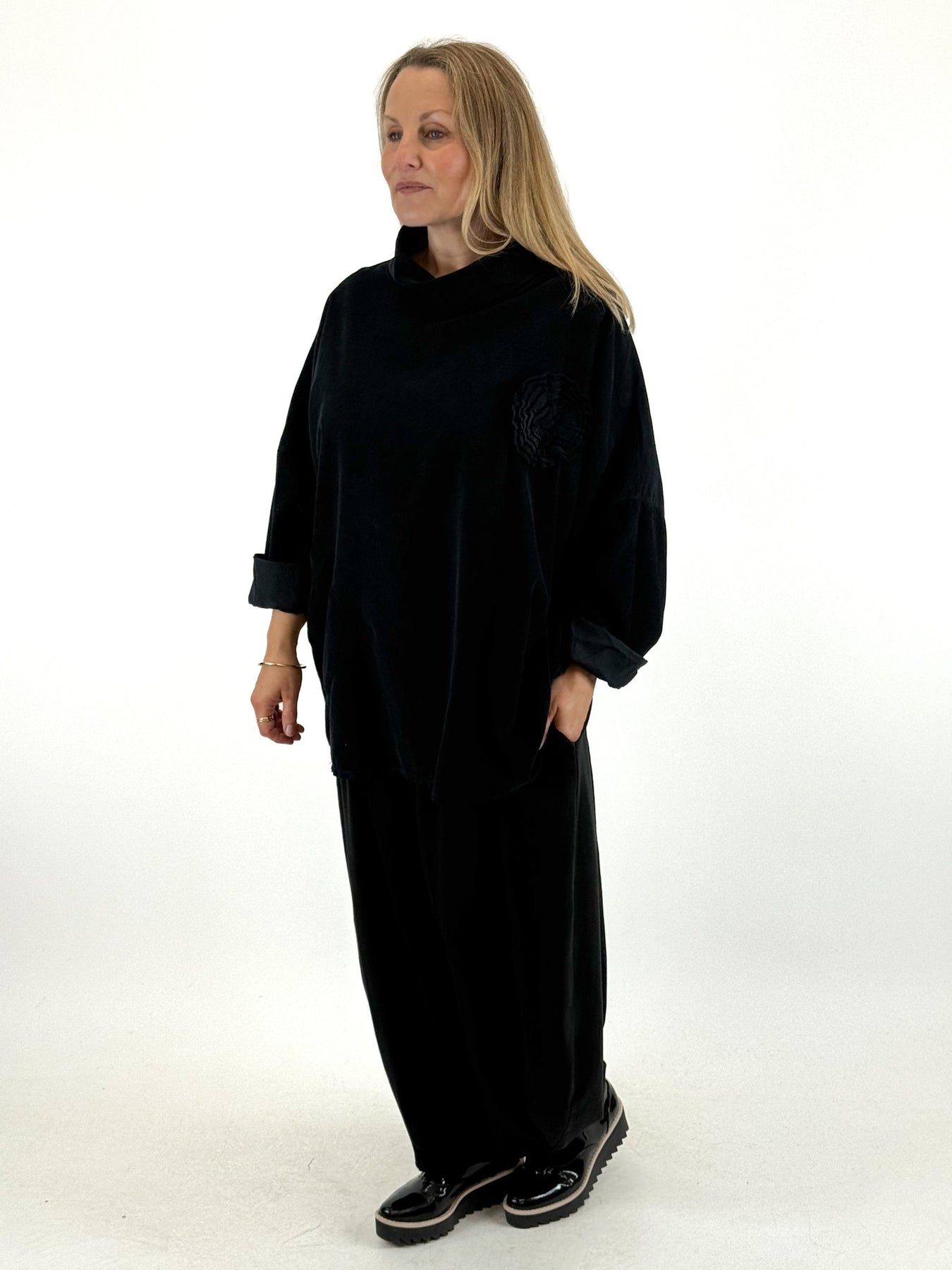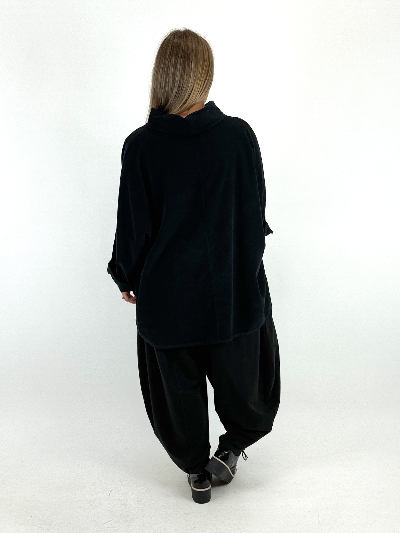 Made in Italy Lagenlook Cowl Neck Corduroy Top Black. 58485