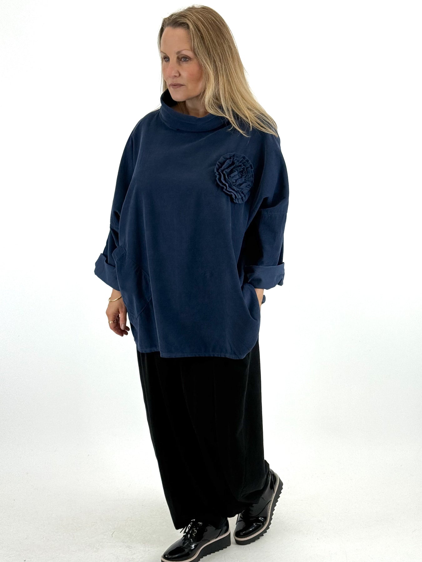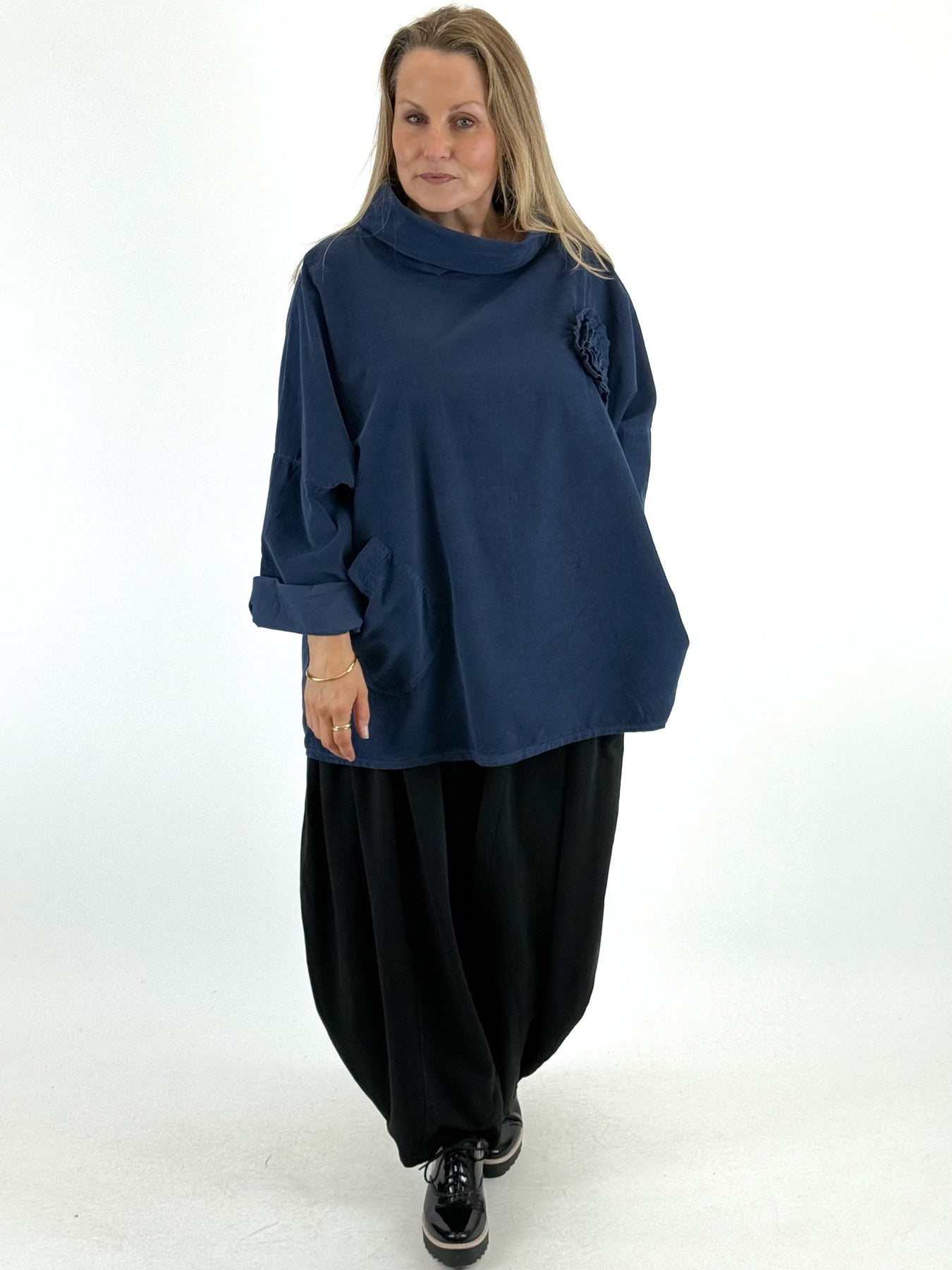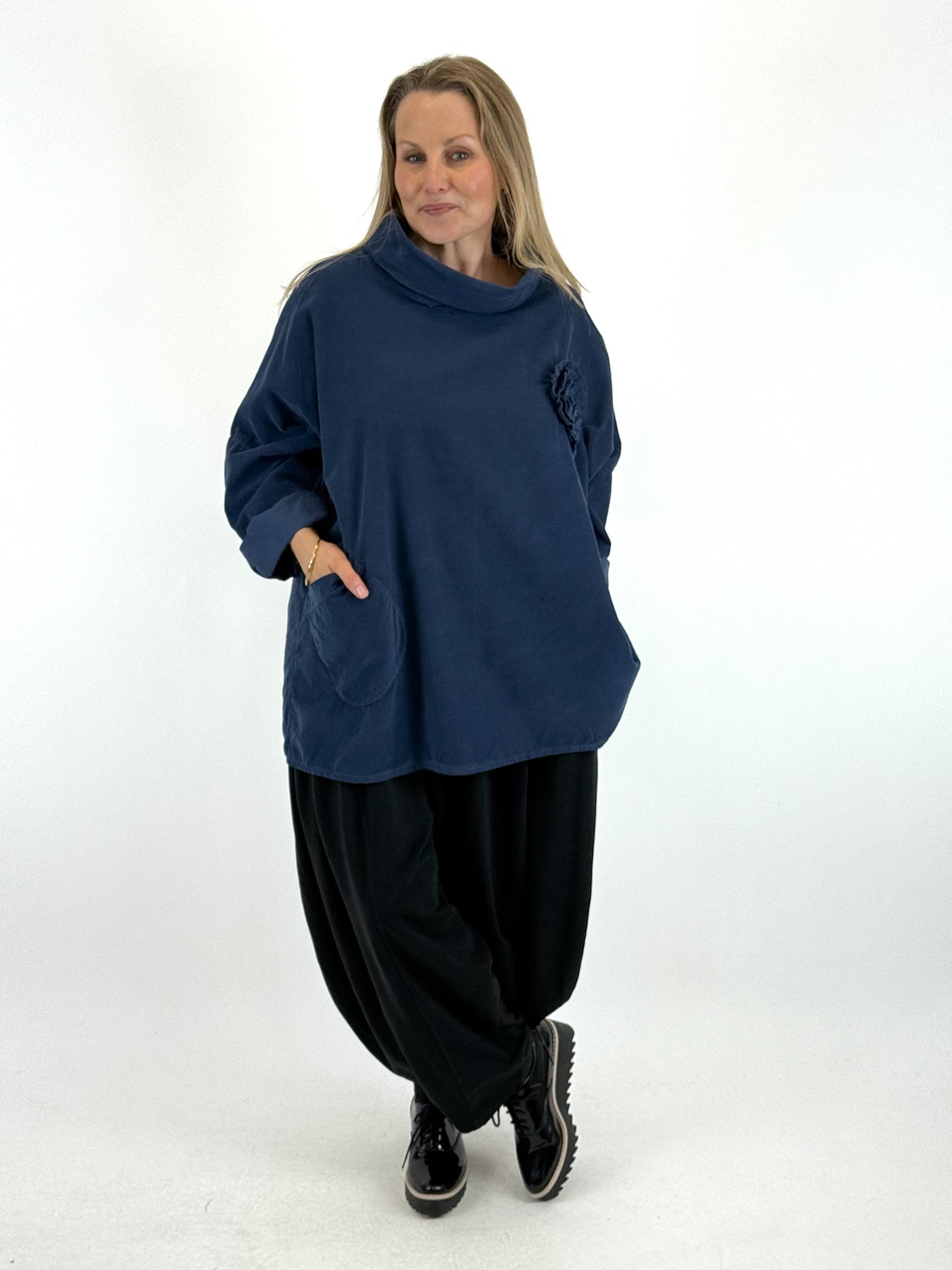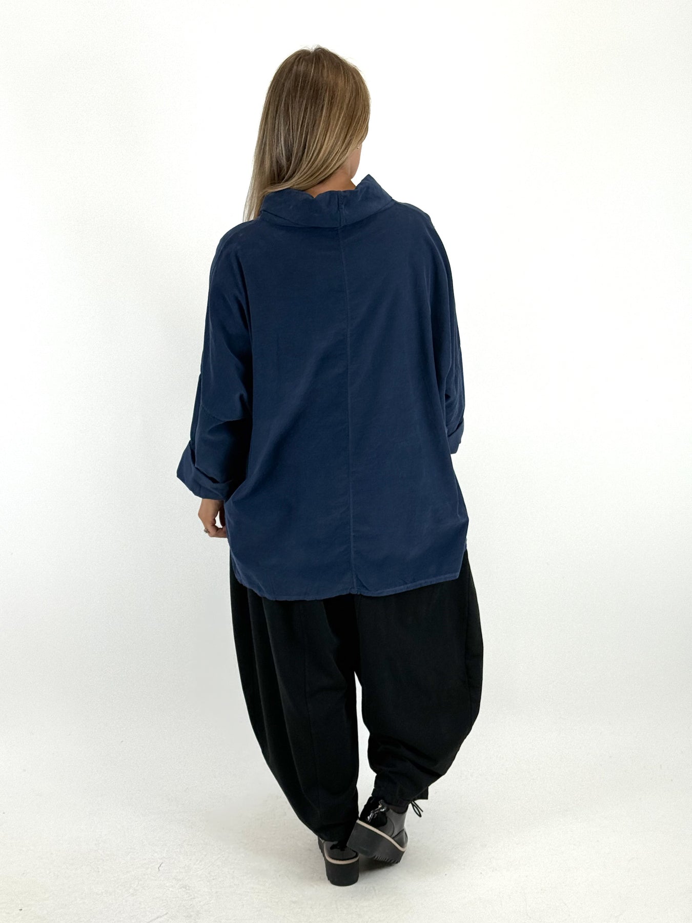 Made in Italy Lagenlook Cowl Neck Corduroy Top Navy Blue. 58485