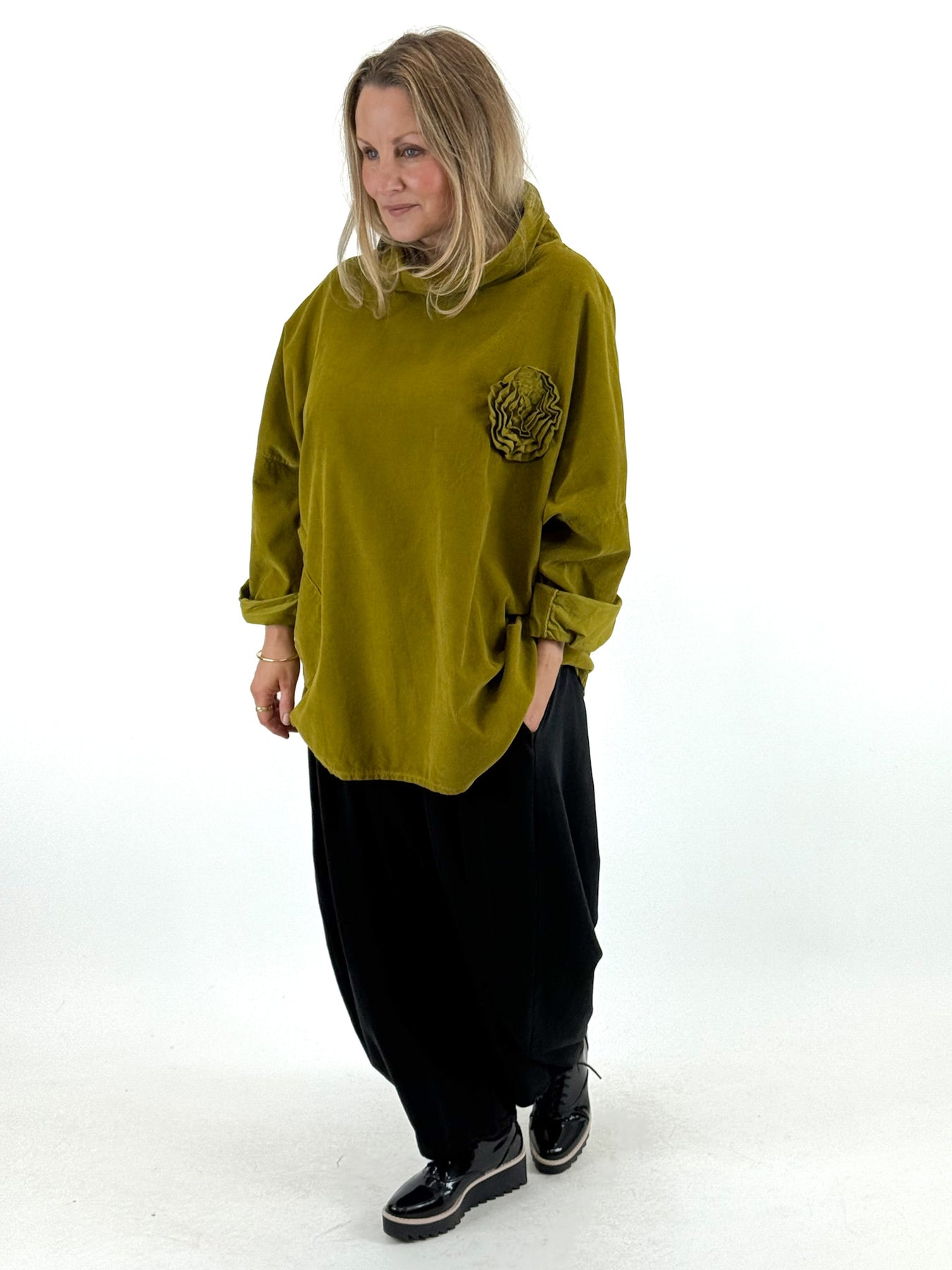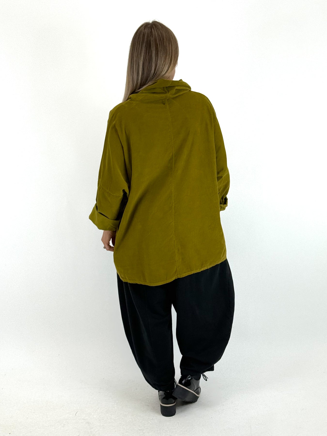 Made in Italy Lagenlook Cowl Neck Corduroy Top Olive. 58485