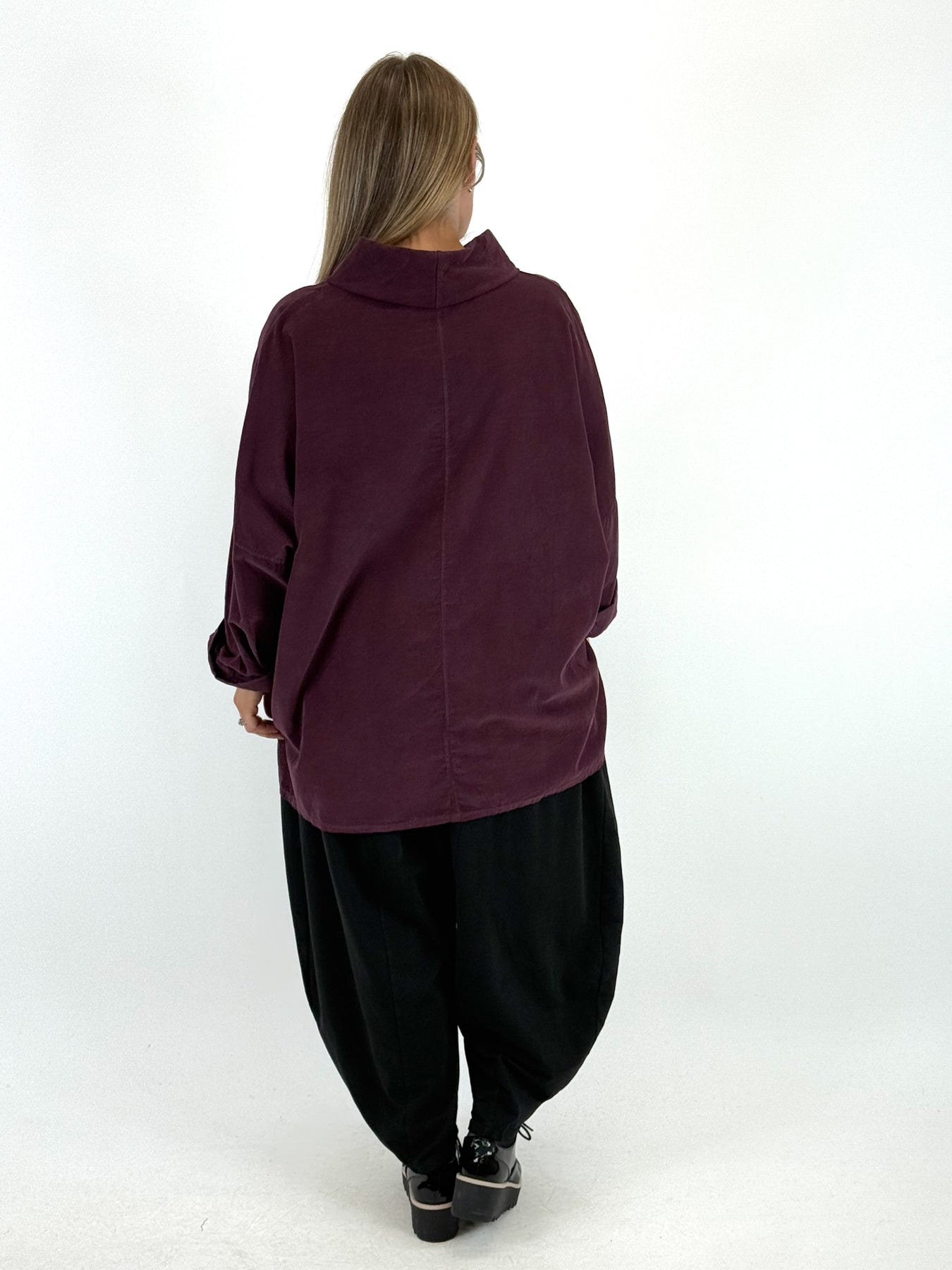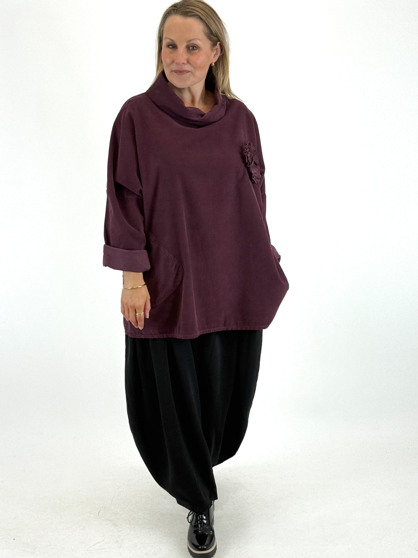 Made in Italy Lagenlook Cowl Neck Corduroy Top Plum. 58485