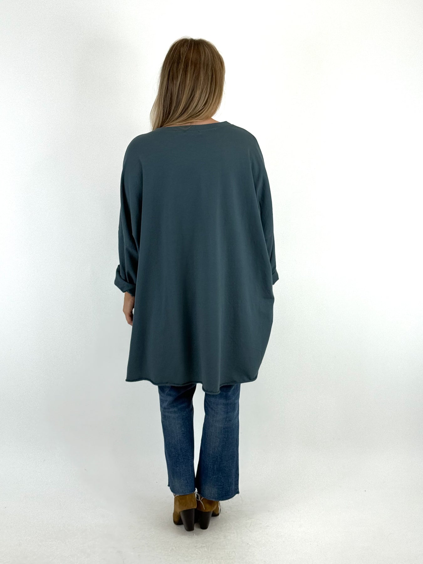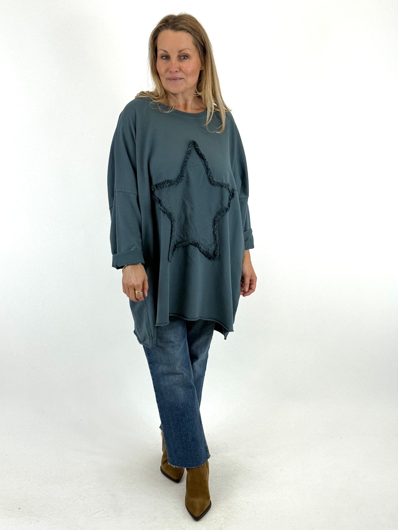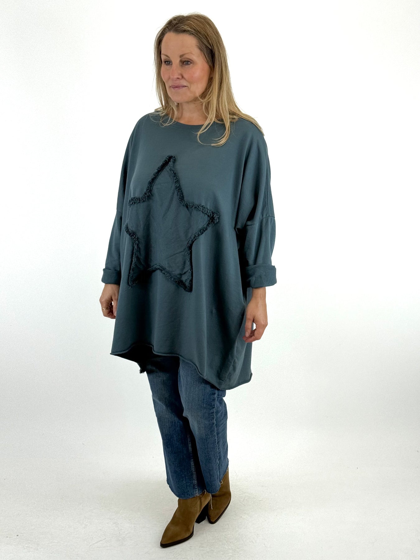 - Made in Italy Lagenlook Ella Star Sweatshirt in Steel Blue. 07292