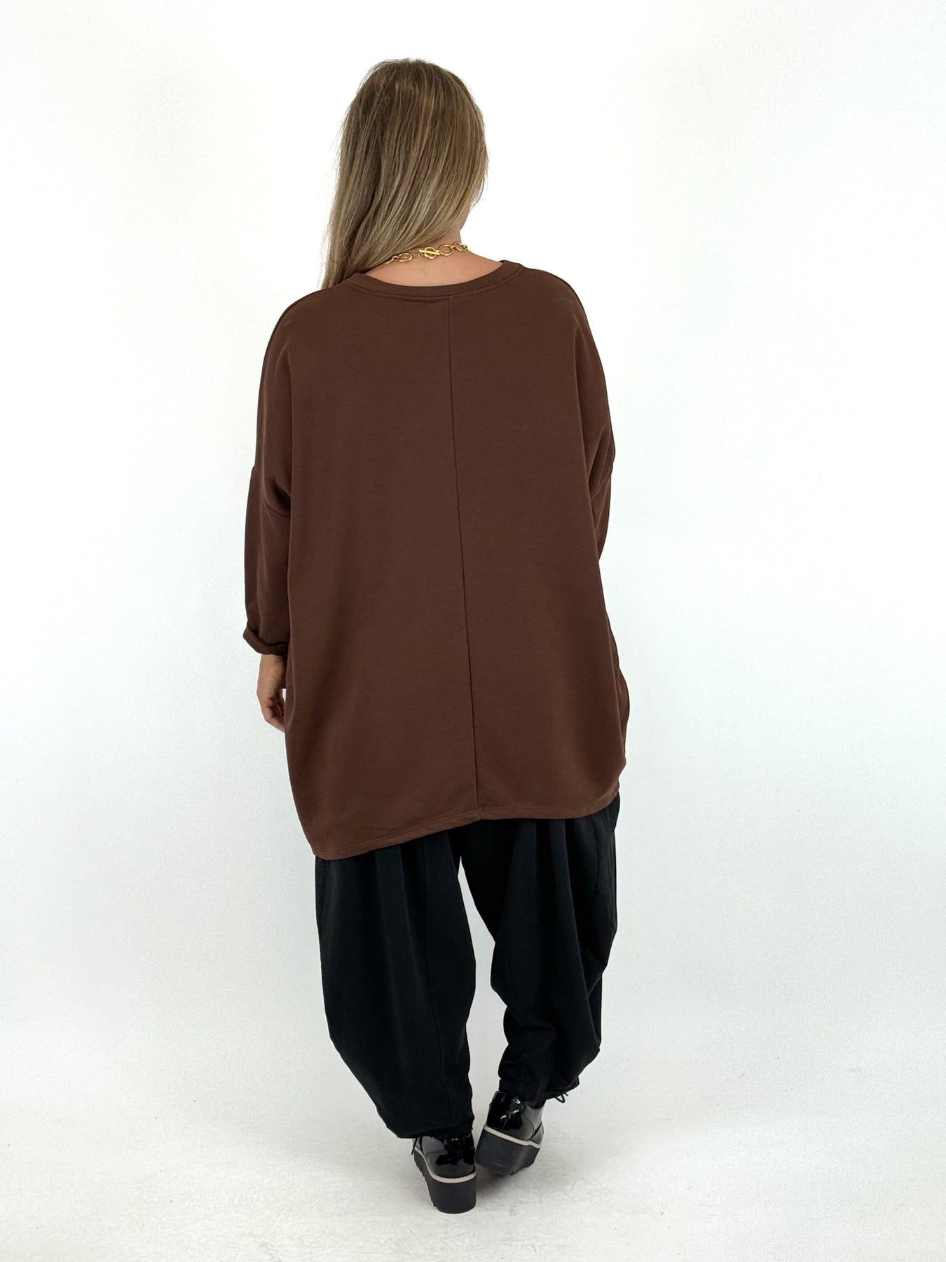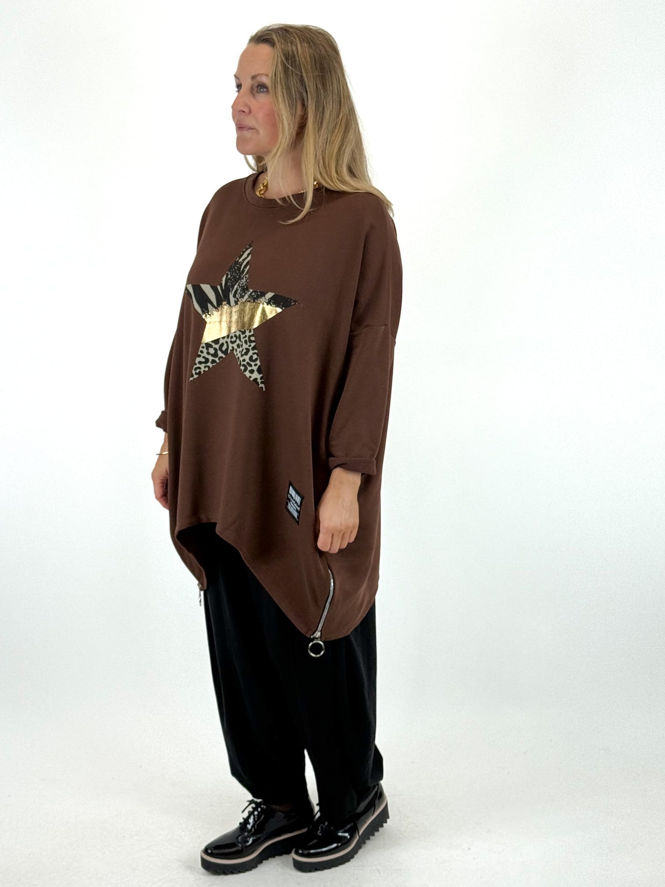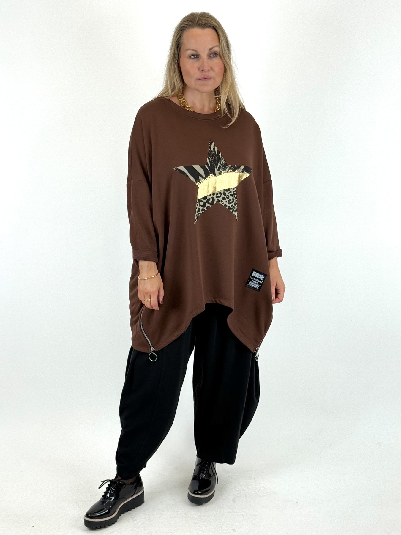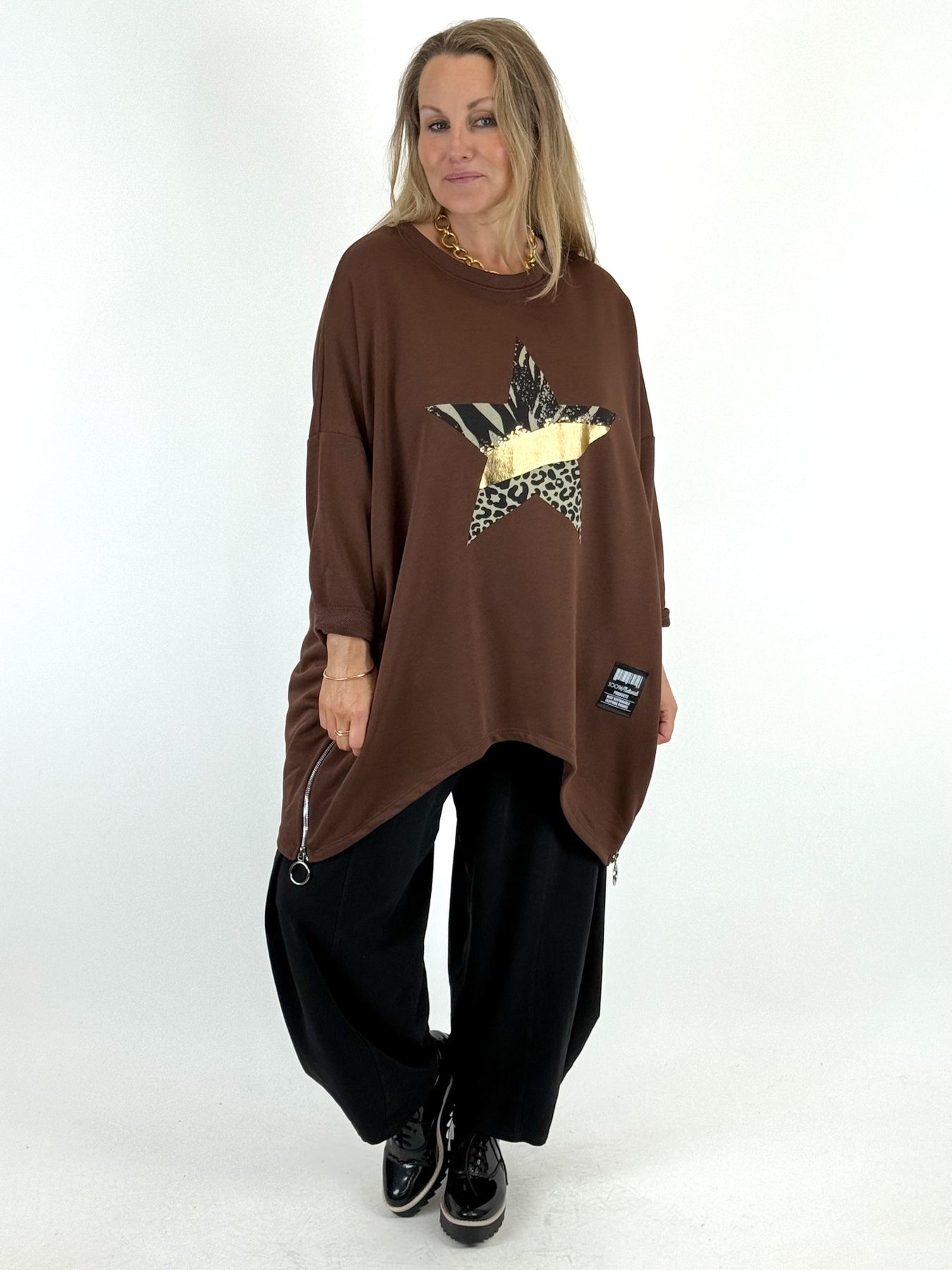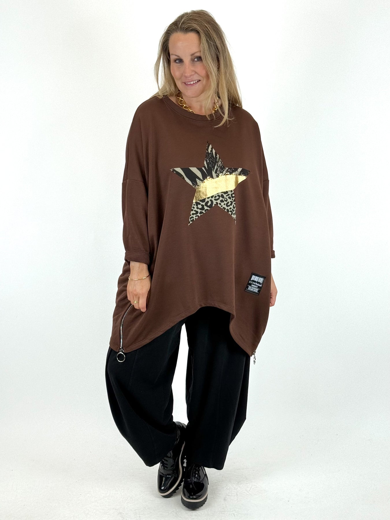 - Made in Italy Lagenlook Foil Star Sweatshirt in Chocolate. 07046