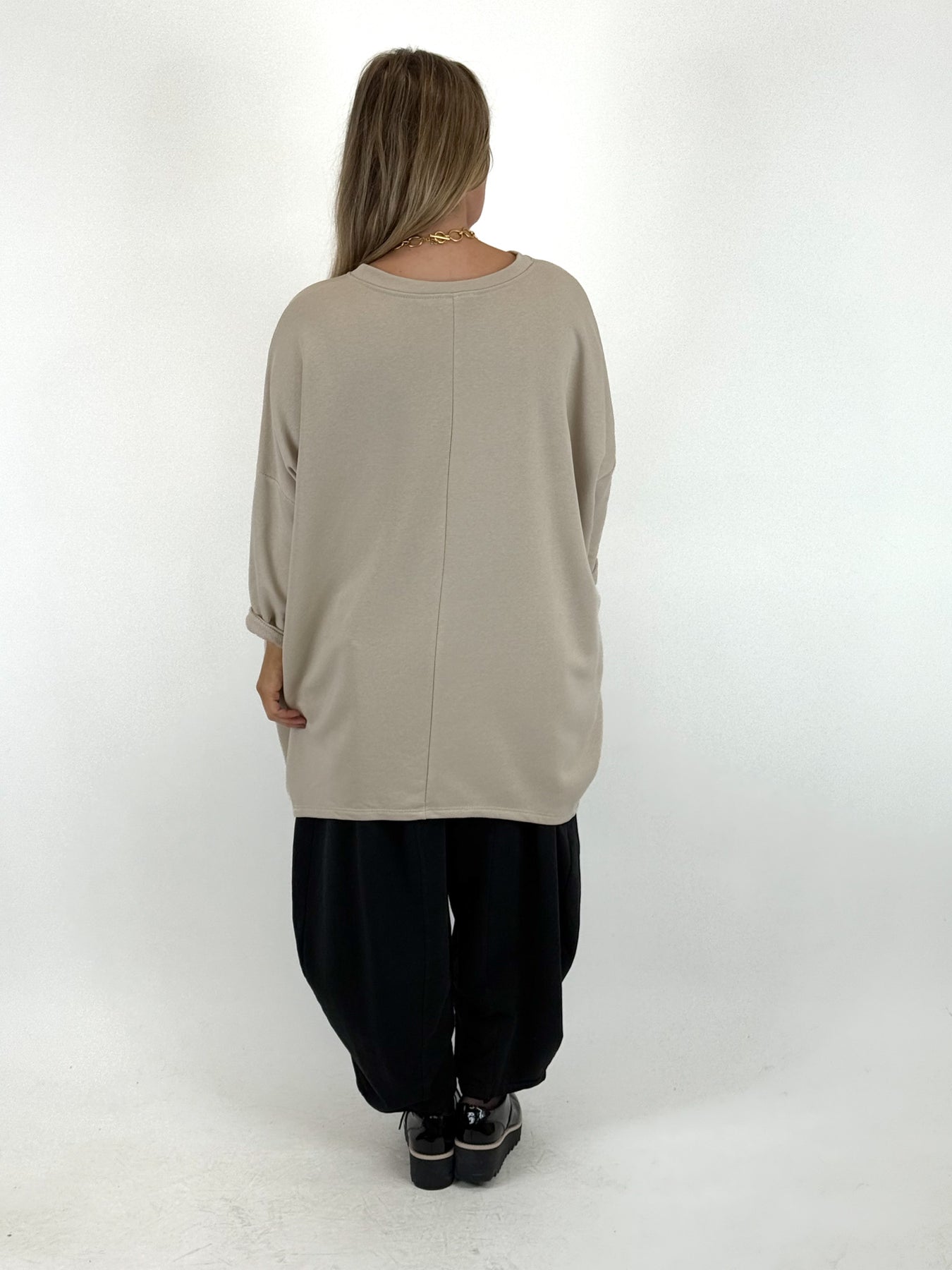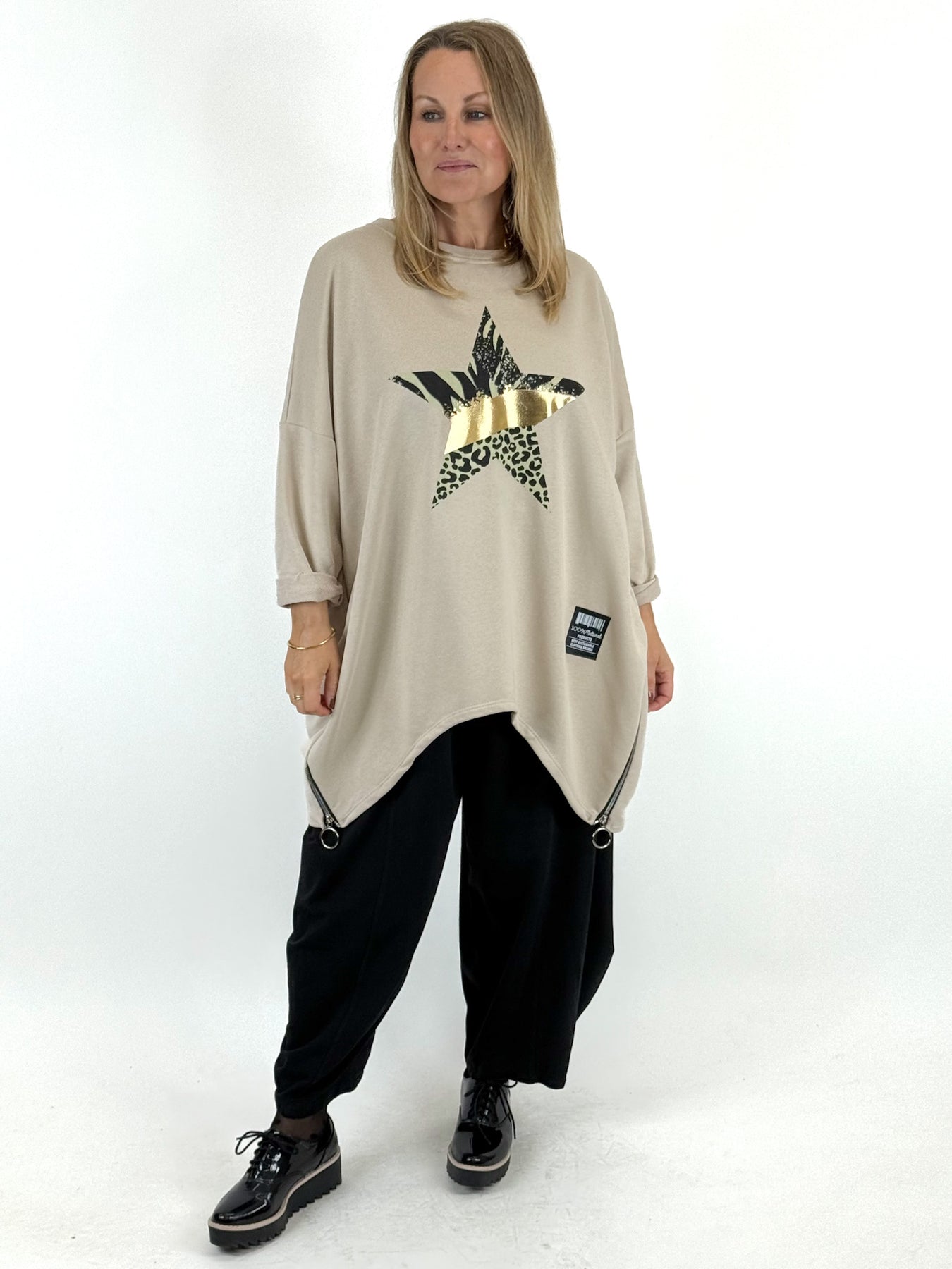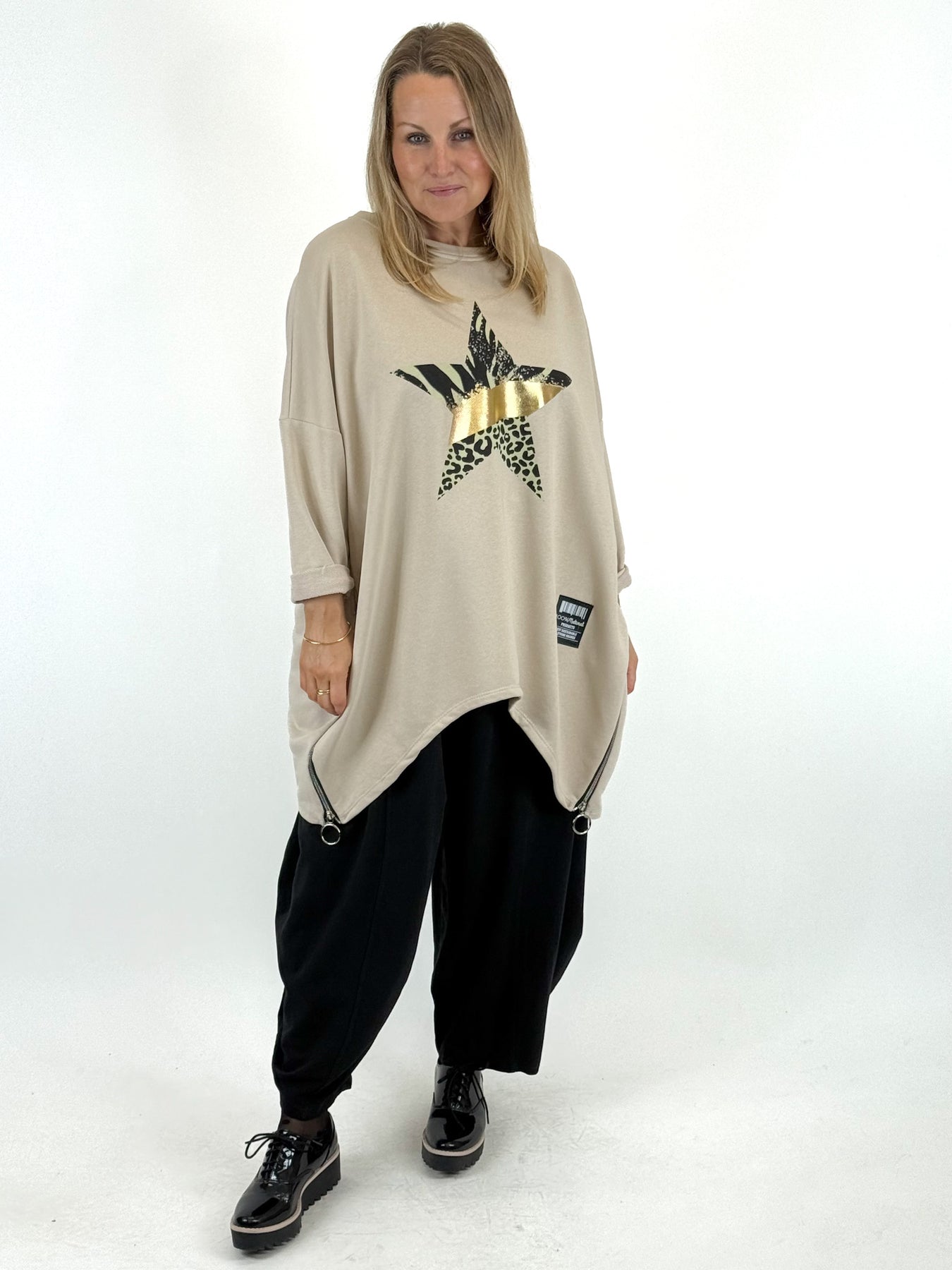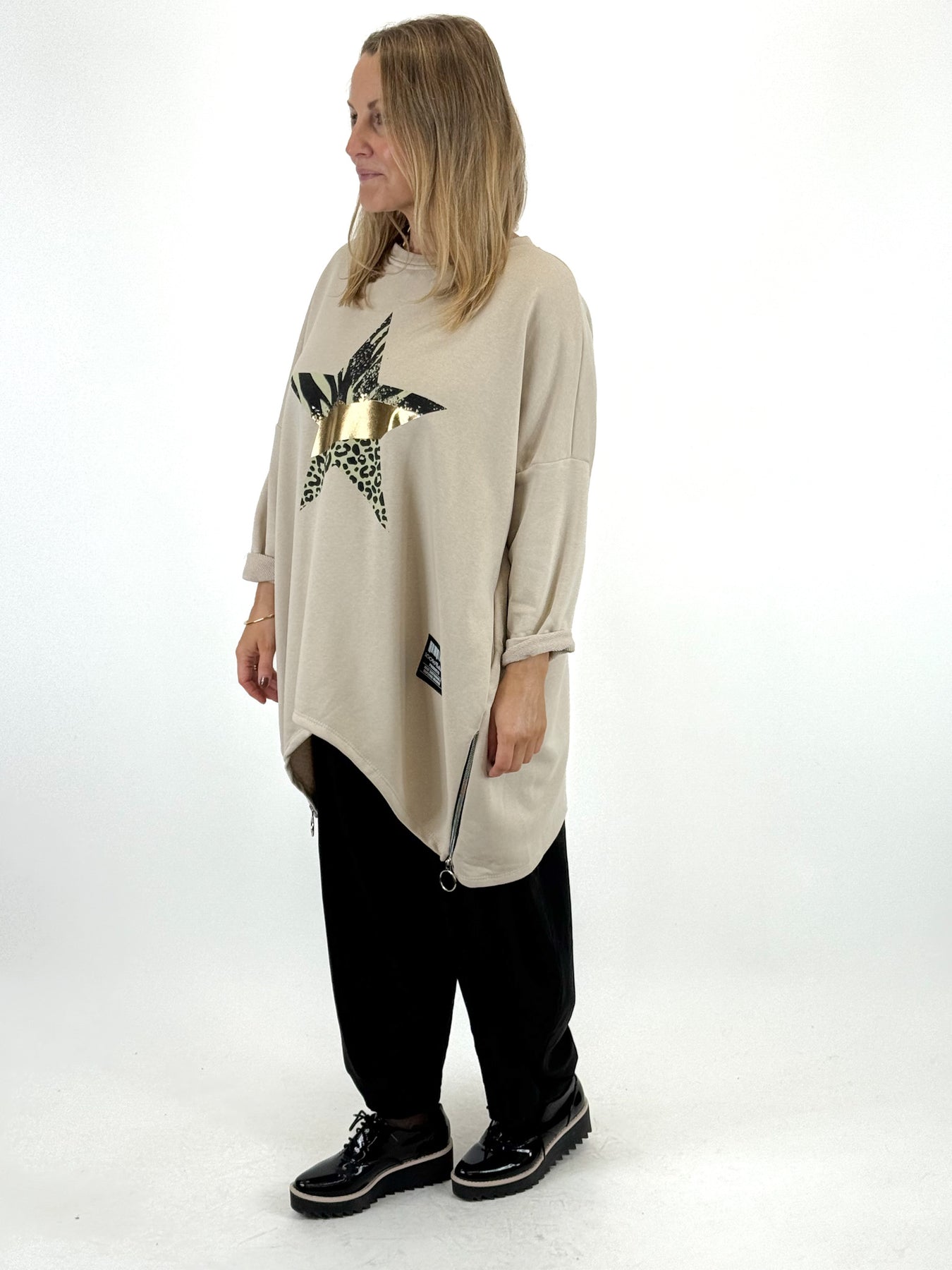 - Made in Italy Lagenlook Foil Star Sweatshirt in Winter Cream. 07046