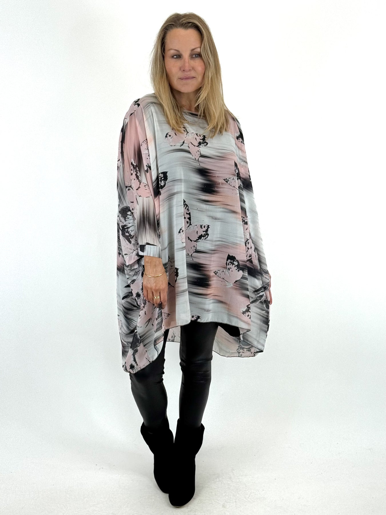 - Made in Italy Lagenlook Free Spirit Butterfly Top in Grey. code 1071